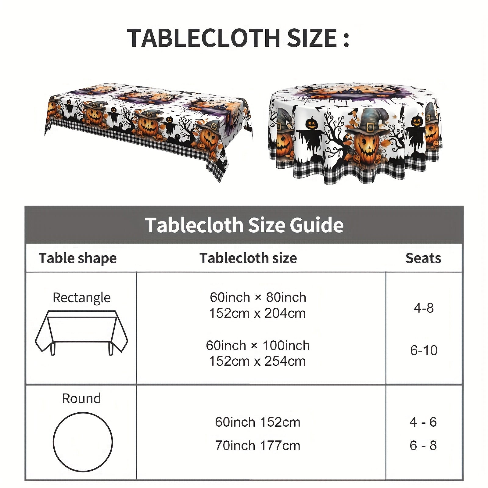 1pc Vibrant Halloween Tablecloth - Polyester Table Cover for Home Kitchen Dining Picnic Decoration with Black White Buffalo Check Ghost Pumpkin Skeleton Castle Holiday Pattern - Perfect for Spooky Season Home Supplies