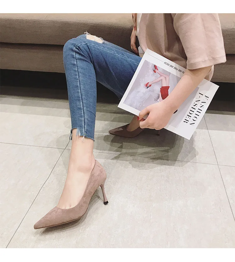 Amozae 2022 Ladies Shoe Women High Heel Fashion All-Match Comfortable Suede Pointed Toe Wear-Resistant Shoe Tacones Mujer Calzado Mujer