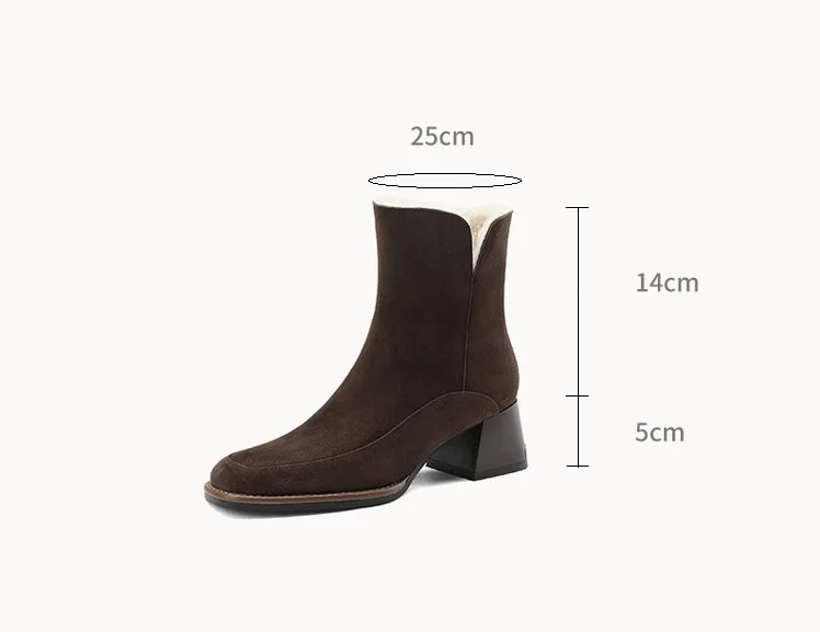 Amozae 2022 New Winter Boots For Women Cow Suede Short Boots Round Toe Thick Heel Women's Warm Shoes High-Heeled Shoes Large Size
