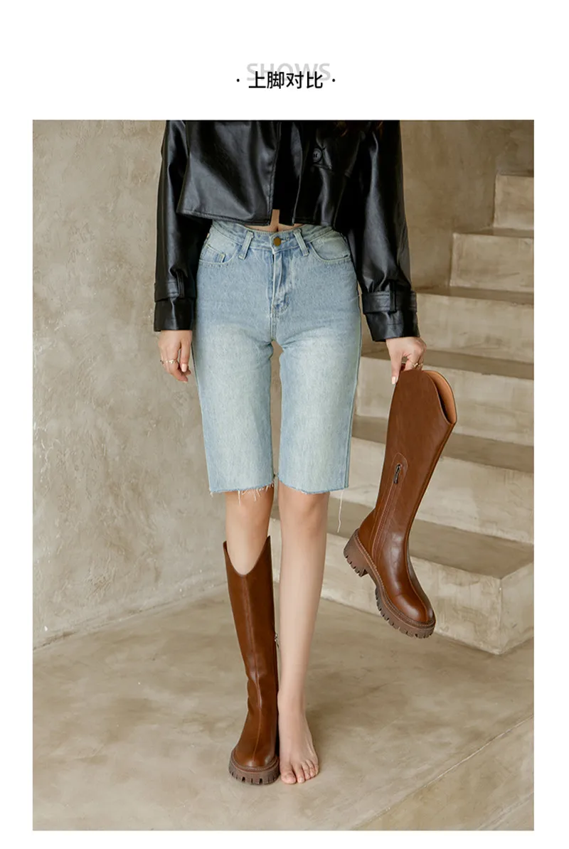 Amozae 2023 Autumn Winter New Women High Boots Split Leather Round Toe Women Boots Thick Heel Knee-High Women Shoes Zipper Knight Boots
