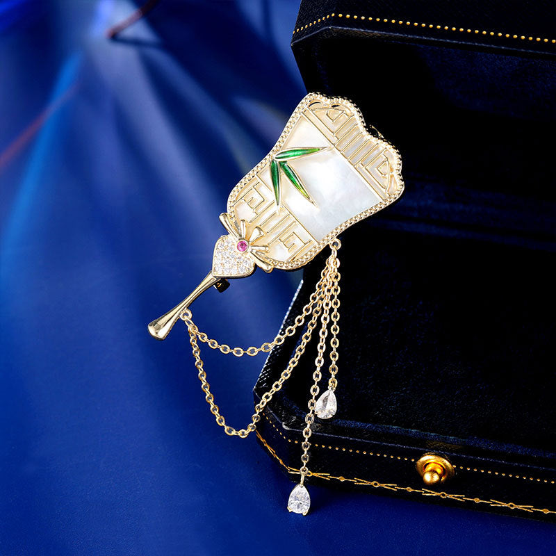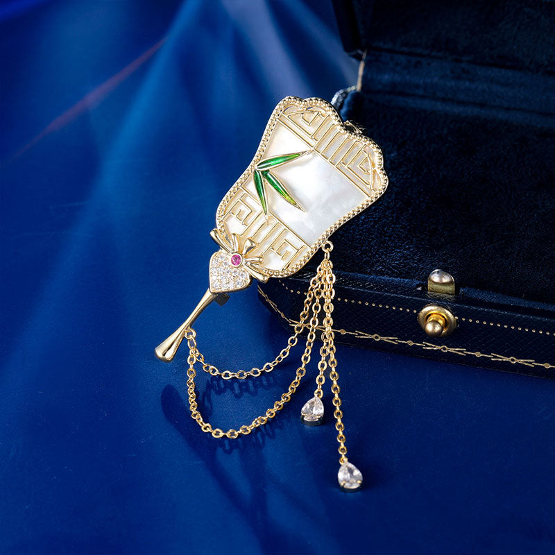 2025 New Chinese style natural fritillary fan bamboo fringed temperament brooch women's high-end luxury bamboo jacket accessories