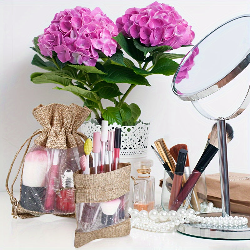 20pcs Transparent Window Gift Bag, Burlap Organza Splicing Drawstring Bag, Party Favor Supplies, Christmas & New Year Gift Wrapping And Storage Supplies