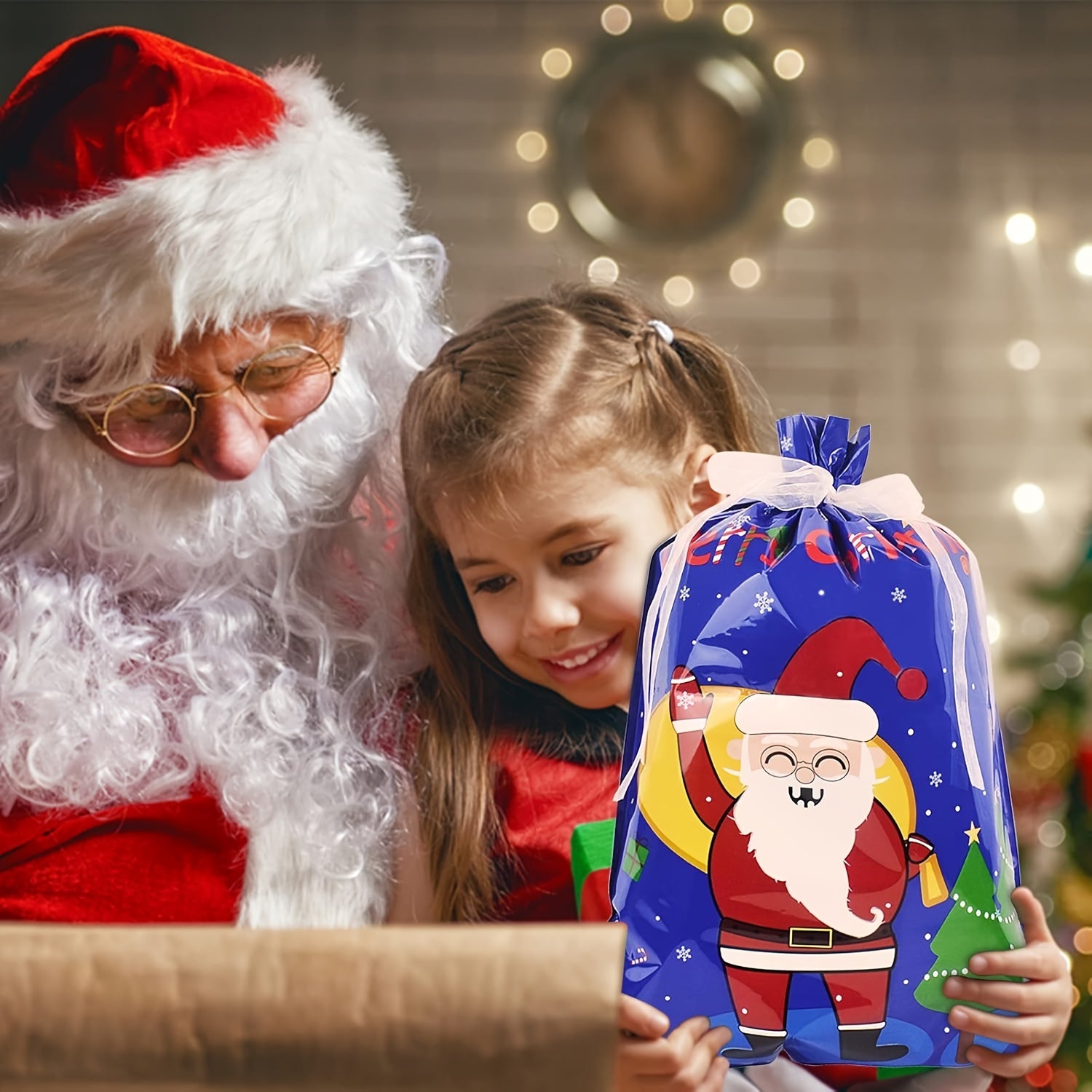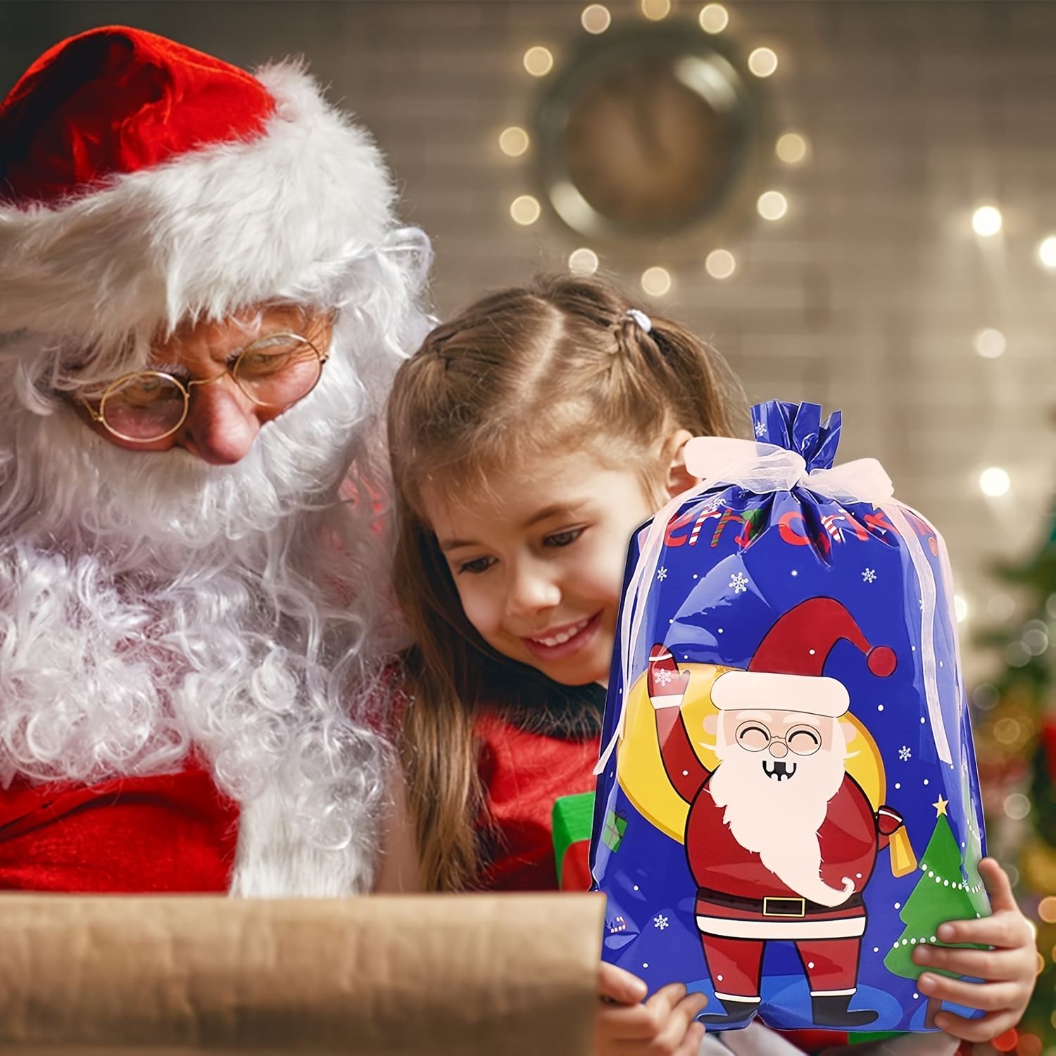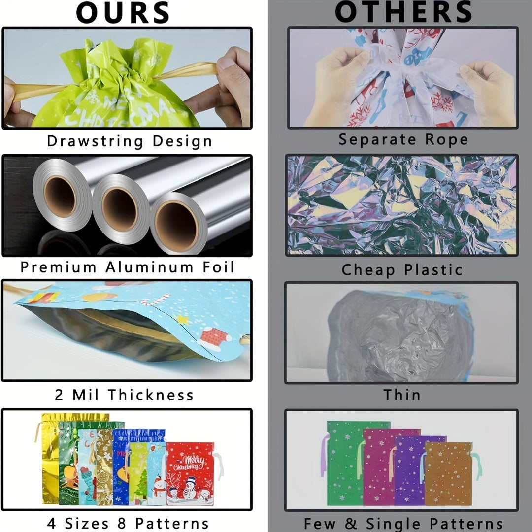 28PCS Assorted Sizes Christmas Drawstring Gift Bags With Ribbon Tie, 4 Sizes, 8 Designs For Xmas Holiday Presents Party Favor Goody Bags Jumbo/Extra Large/Medium/Small Santa Wrapping Bag
