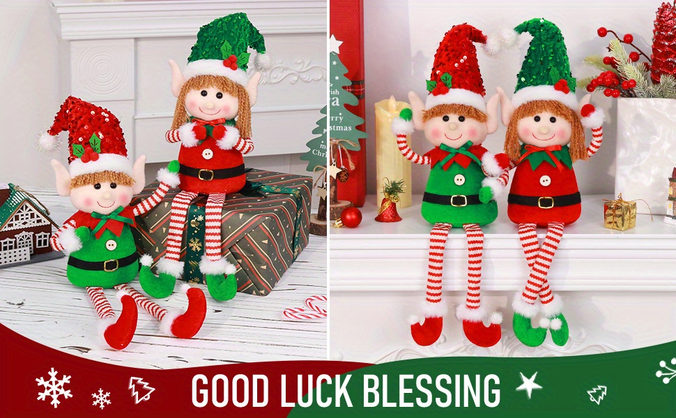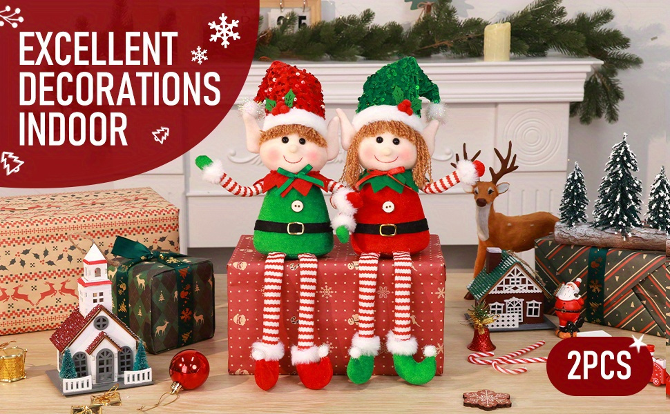 2pcs Festive Christmas Elf Plush Dolls, Long Legged Elf Figurines, Polyester Tabletop Decor, Non-Electric Holiday Accents for Seasonal Display
