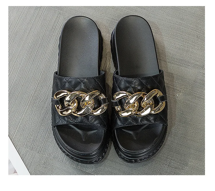 flowersverse 7Cm Genuine Leather Women Summer Shoes Outside Slippers Beach Shoes Platform Wedges Slides Sandals Beach Shoes