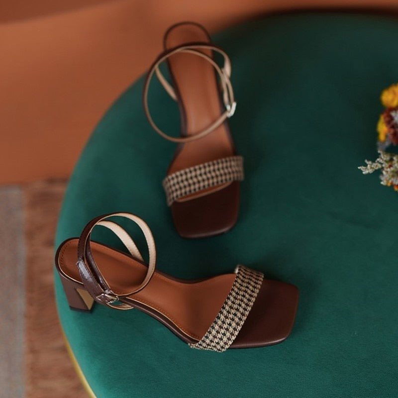 Amozae New Summer Womon Sandal Peep Toe Slingback Retro Plaid Buckle Female Slipper Fashion High Quality Simple Breathable Lady Shoe