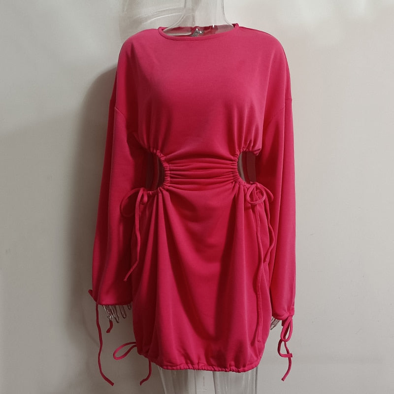 Back to college Fashion Summer Puff Sleeve Backless Mini Dress Polka Dot Hollow Out Lace Up Vintage Party Dresses