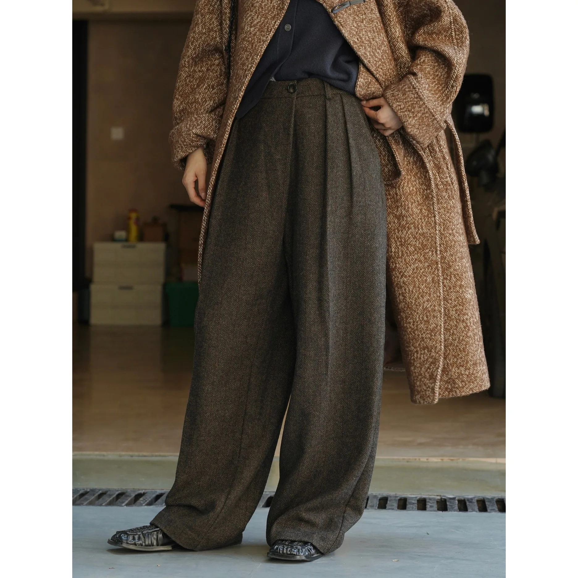 Autumn and Winter Women's Casual Solid Color High Waist Loose Wide Leg Pants