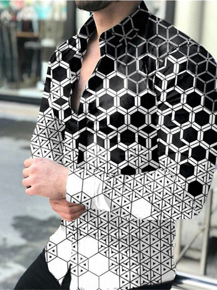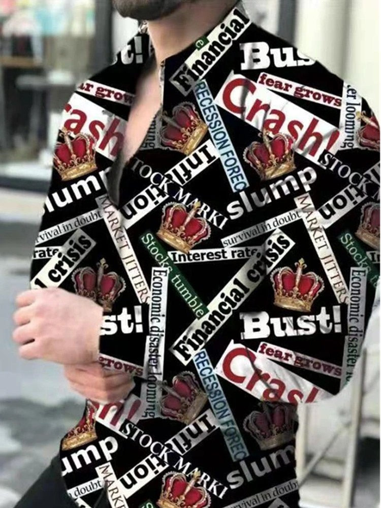 flowersverse Spring Autumn Men printed Shirts Turn-down Collar Buttoned Shirt Men's Casual Long Sleeve social shirt Tops Men's clothing