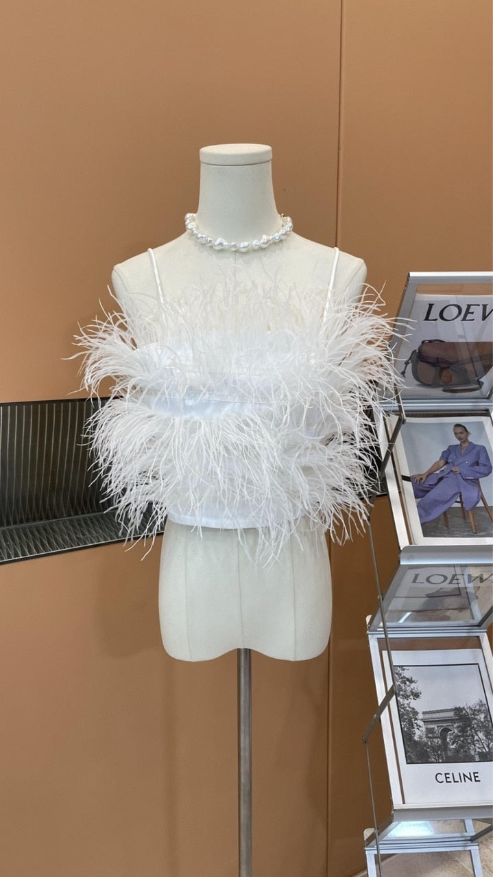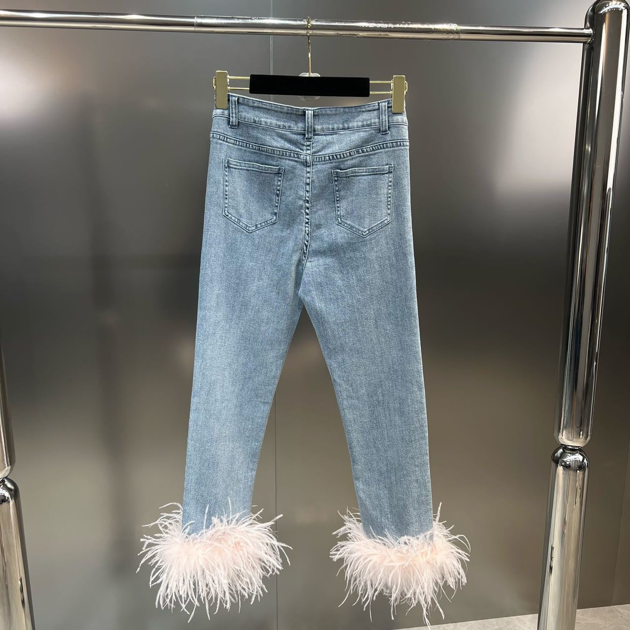 Autumn Sleeveless Feathers Camisole Crop Top Blue Denim Pants Long Jeans Two Piece Set Women GF920