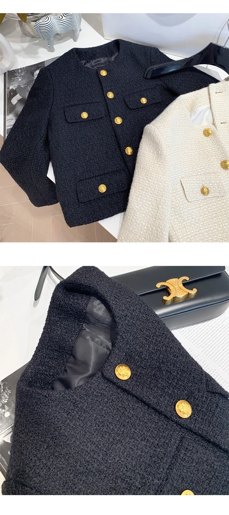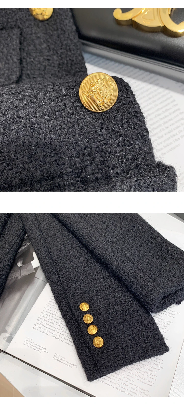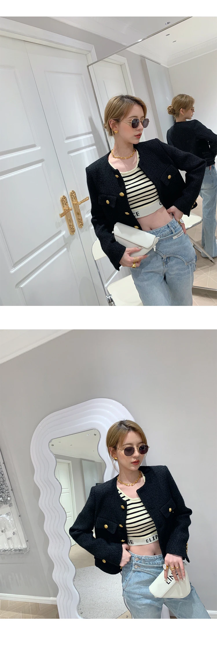 Autumn Winter Small Fragrant Tweed Jacket Coat Women Vintage Woolen Short Coats Streetwear Elegant Casual Slim Outwear Crop Top