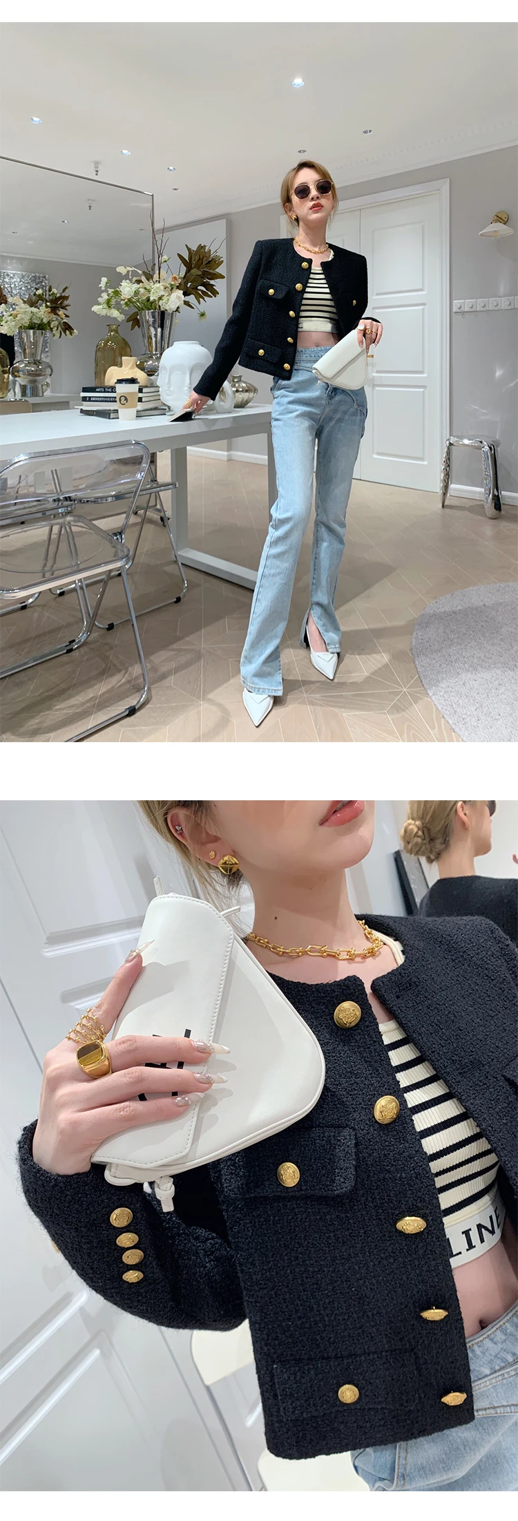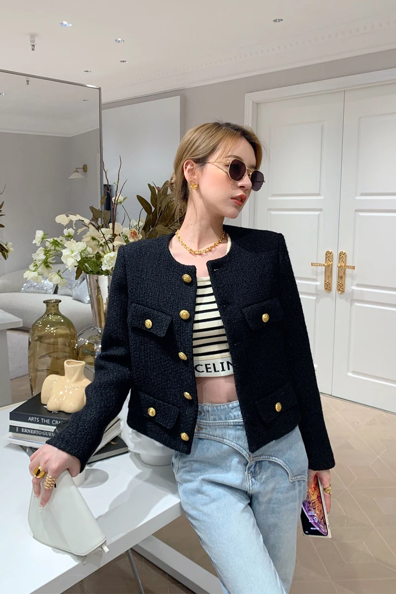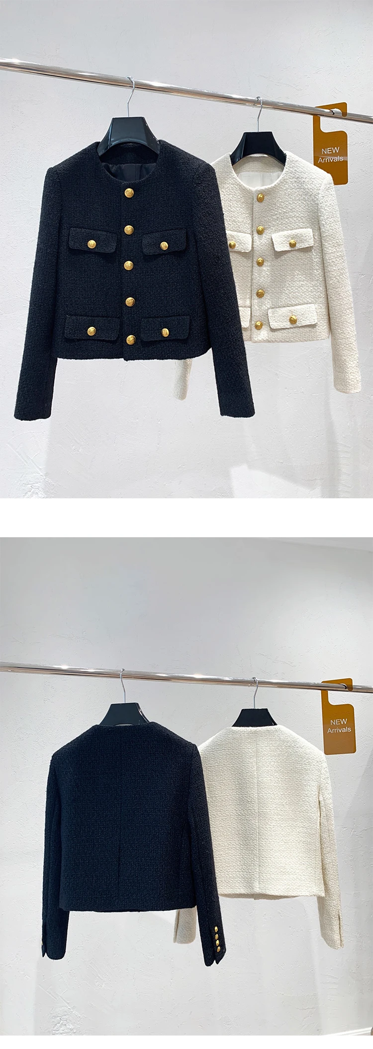 Autumn Winter Small Fragrant Tweed Jacket Coat Women Vintage Woolen Short Coats Streetwear Elegant Casual Slim Outwear Crop Top