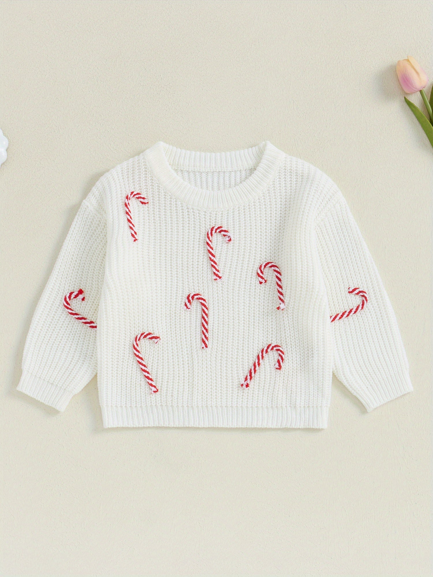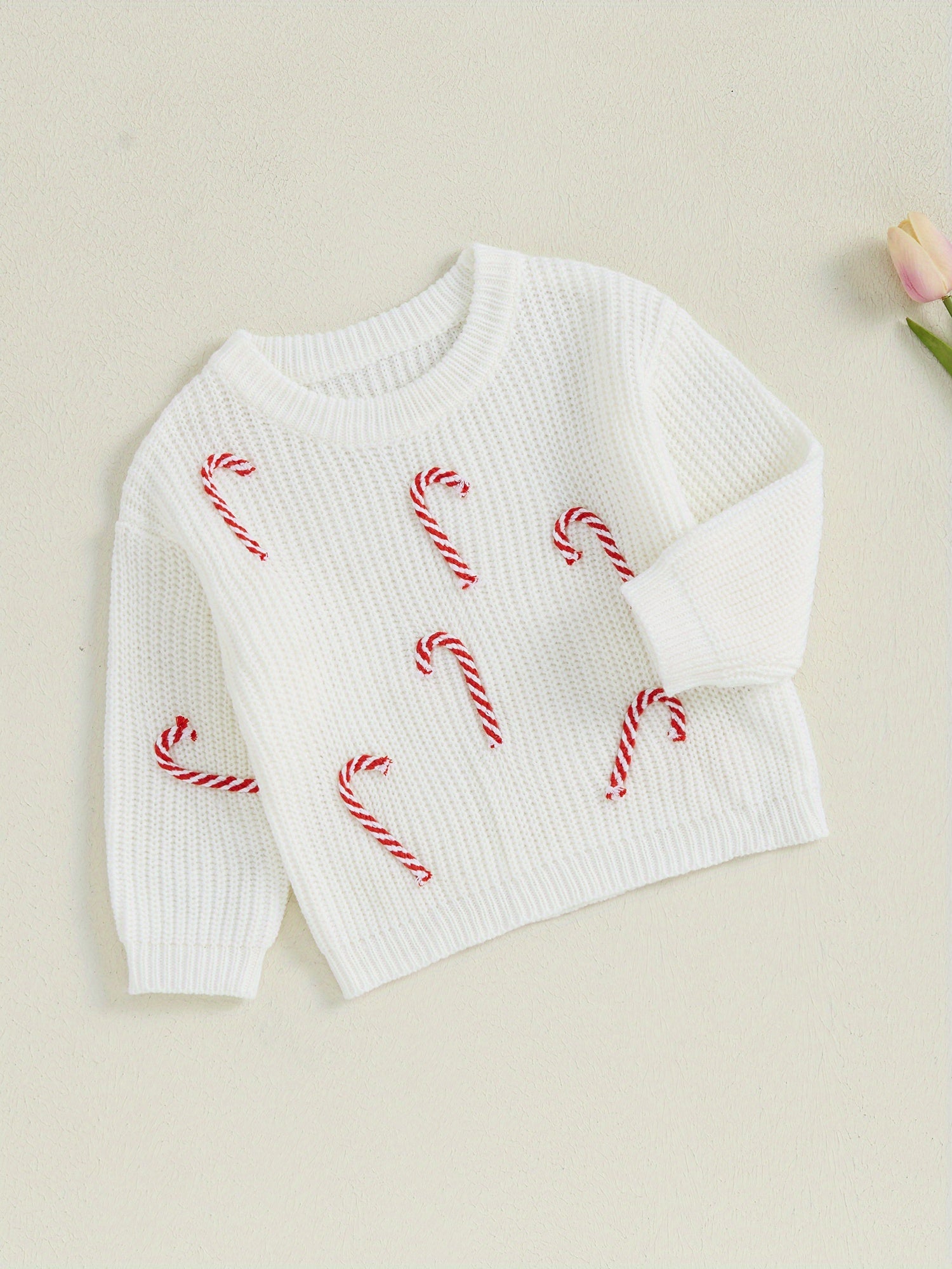 Baby Boy Girl Christmas Sweater Candy Cane Knit Sweaters Oversized Sweatshirt Crewneck Pullover Tops My 1st Christmas Outfit Xmas Warm Fall Winter Clothes 0-3T