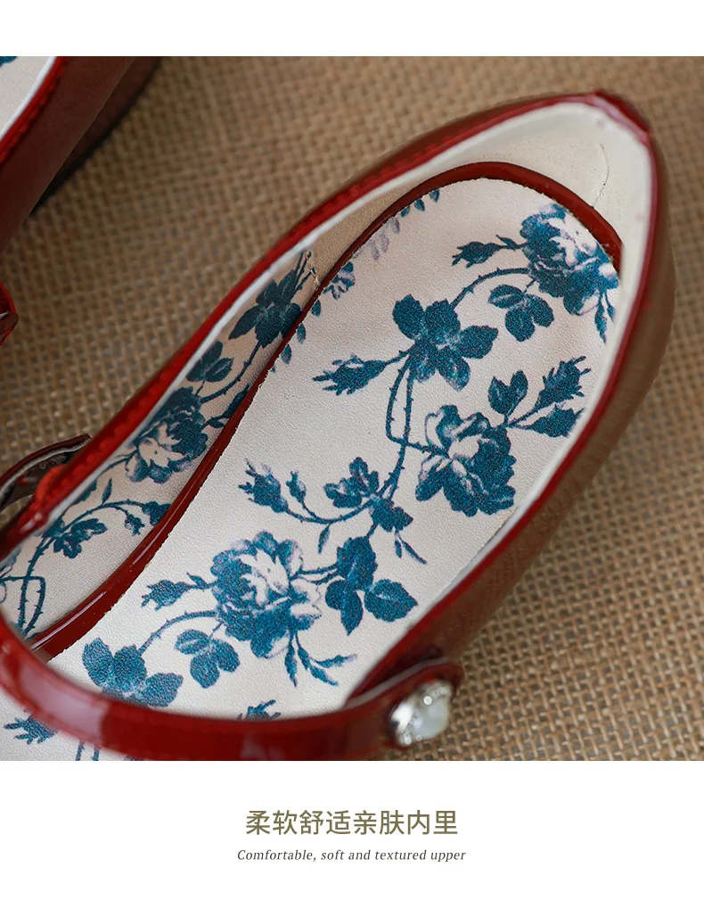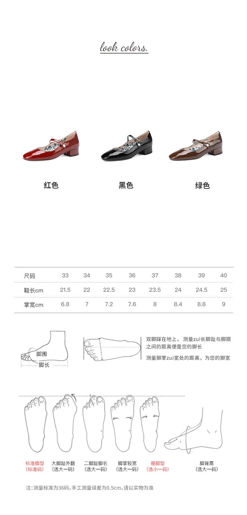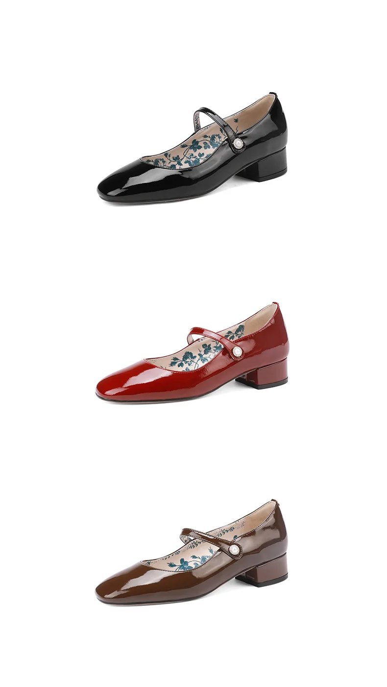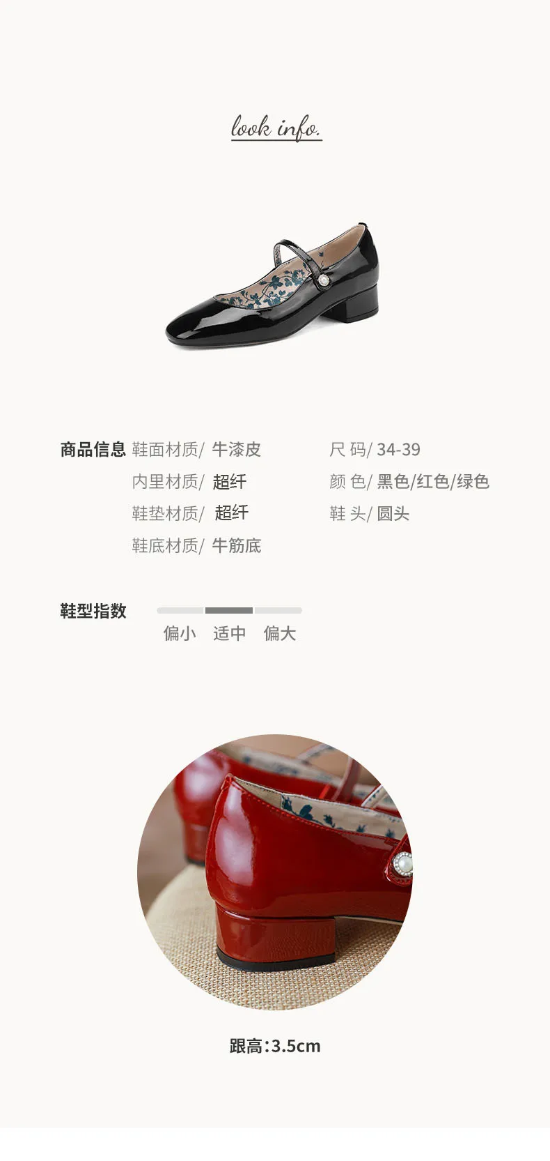 Back to school new spring women pumps natural leather 22-25cm length cowhide Patent leather round toe Mary Jane Middle heel women shoes