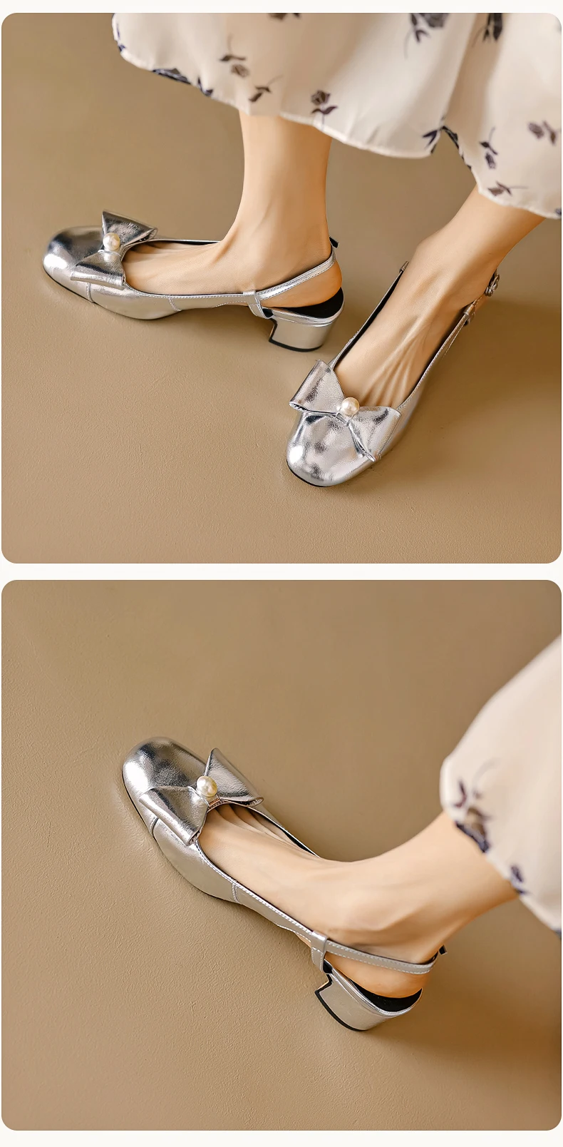 Back to school new Women sandals natural leather 22-25cm cowhide+sheepskin full leather Pearl butterfly knot buckle women summer shoes