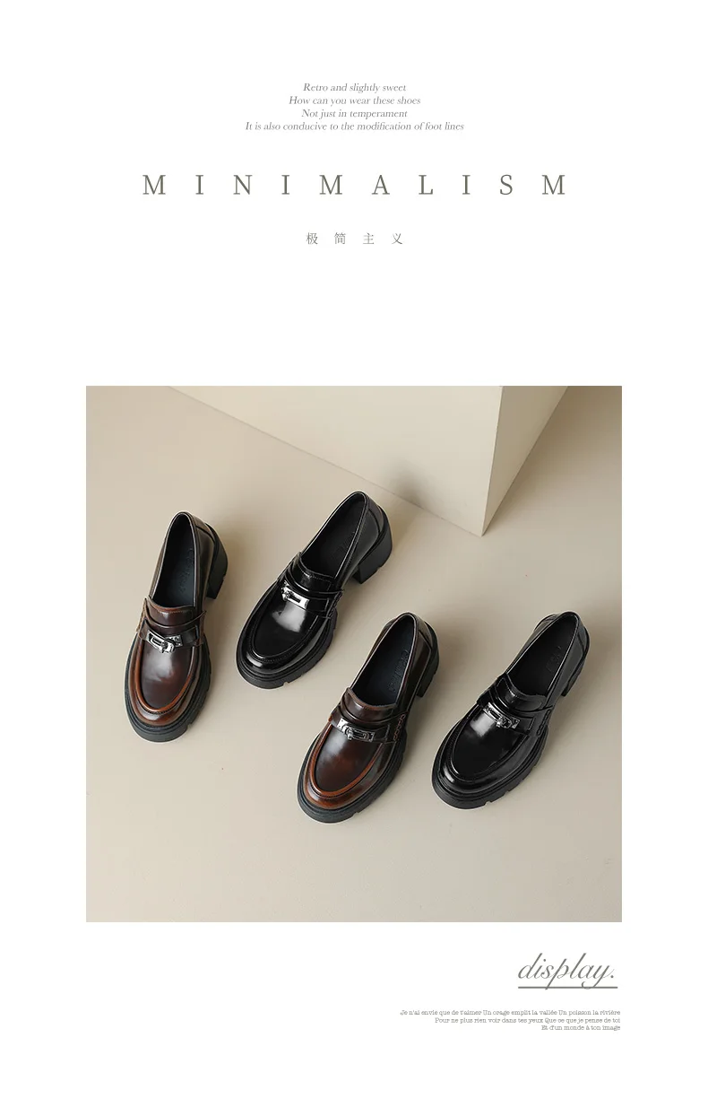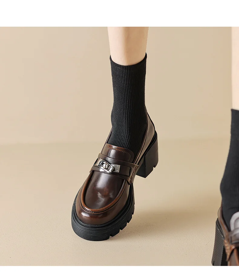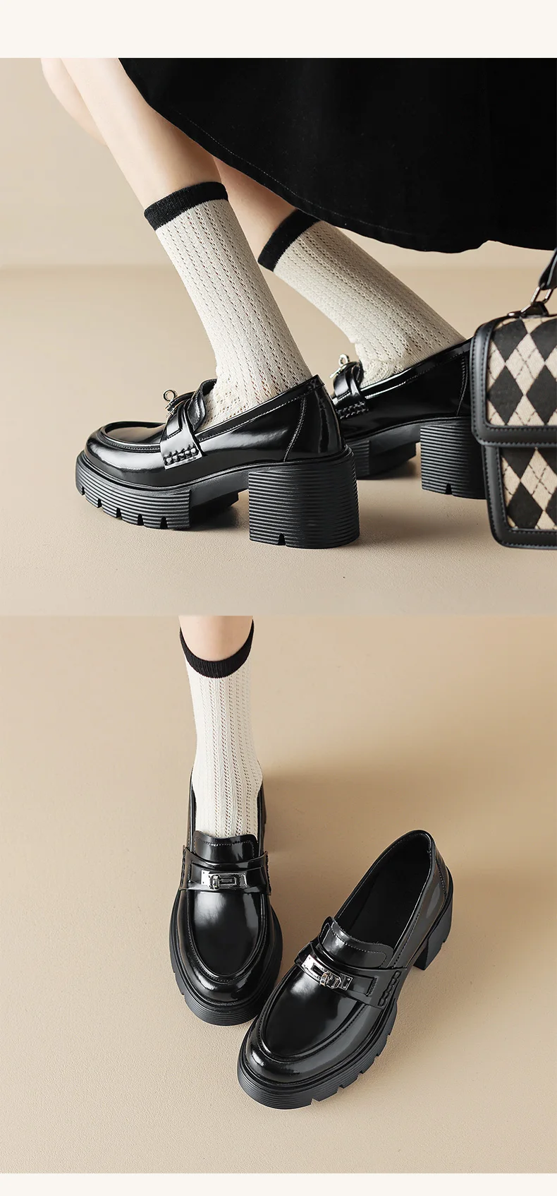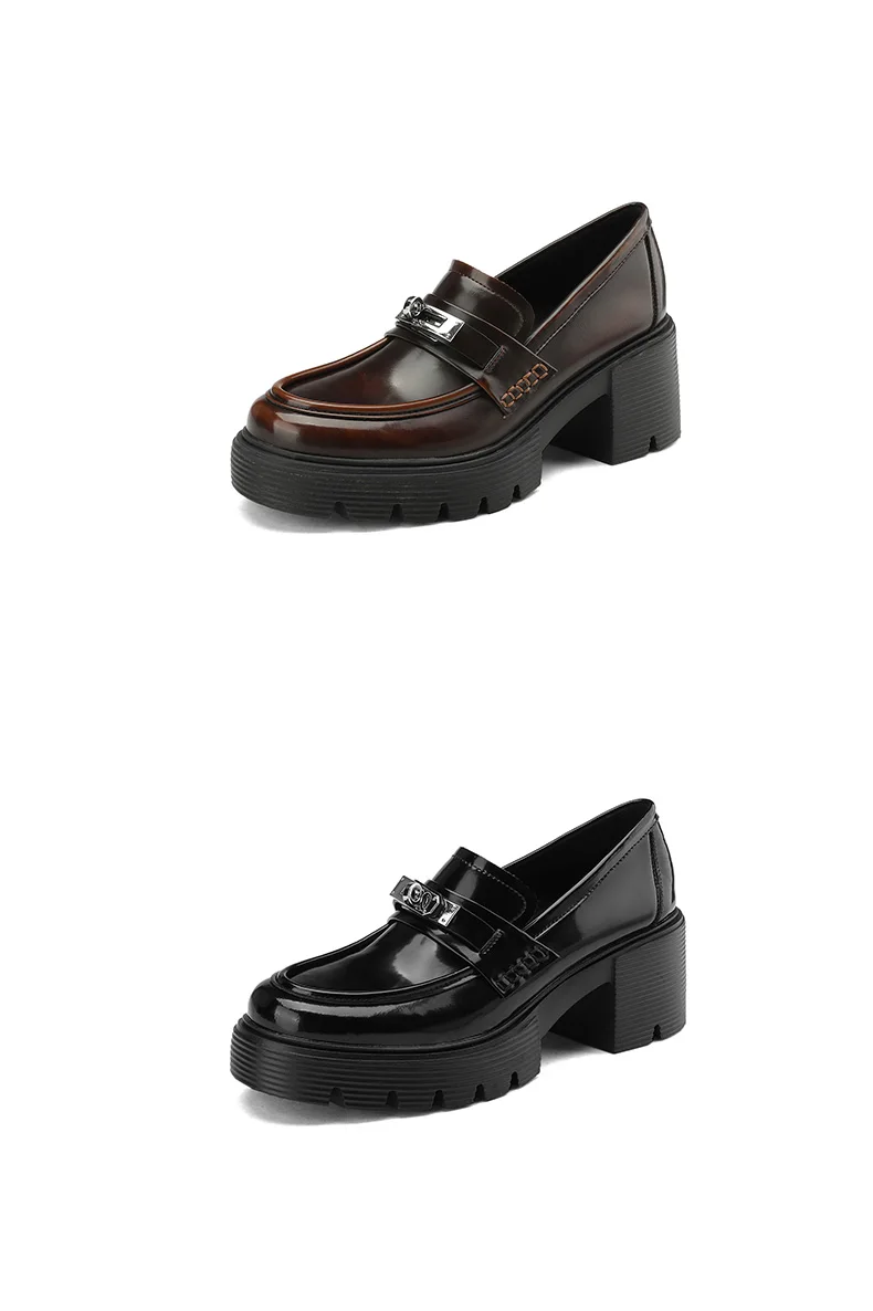 Back to school Spring women pumps natural leather 22-24.5cm Vintage waxed cowhide + pigskin full leather loafers women shoes thick heels