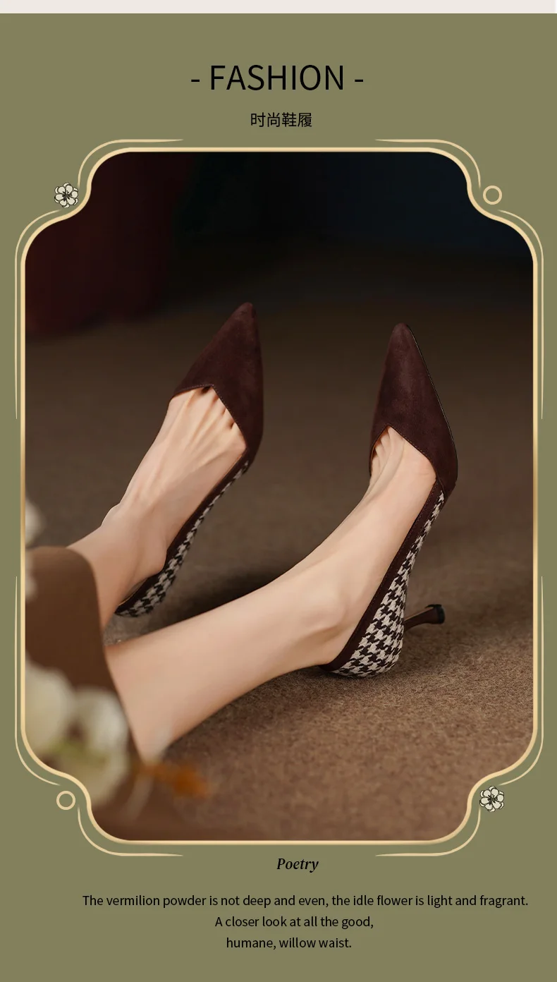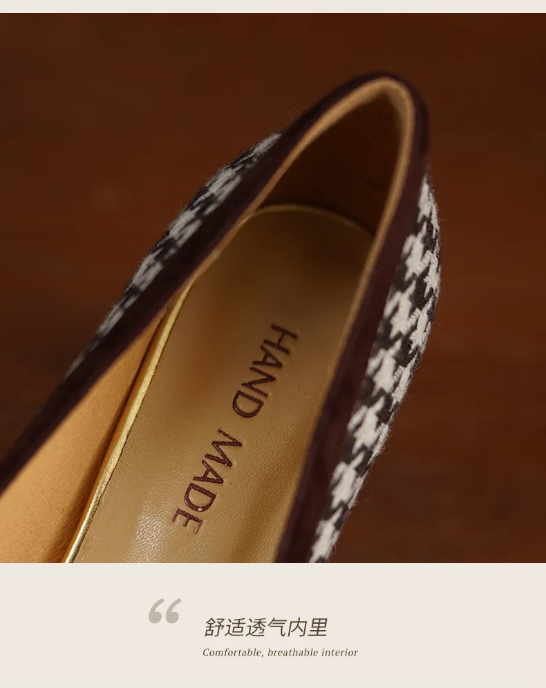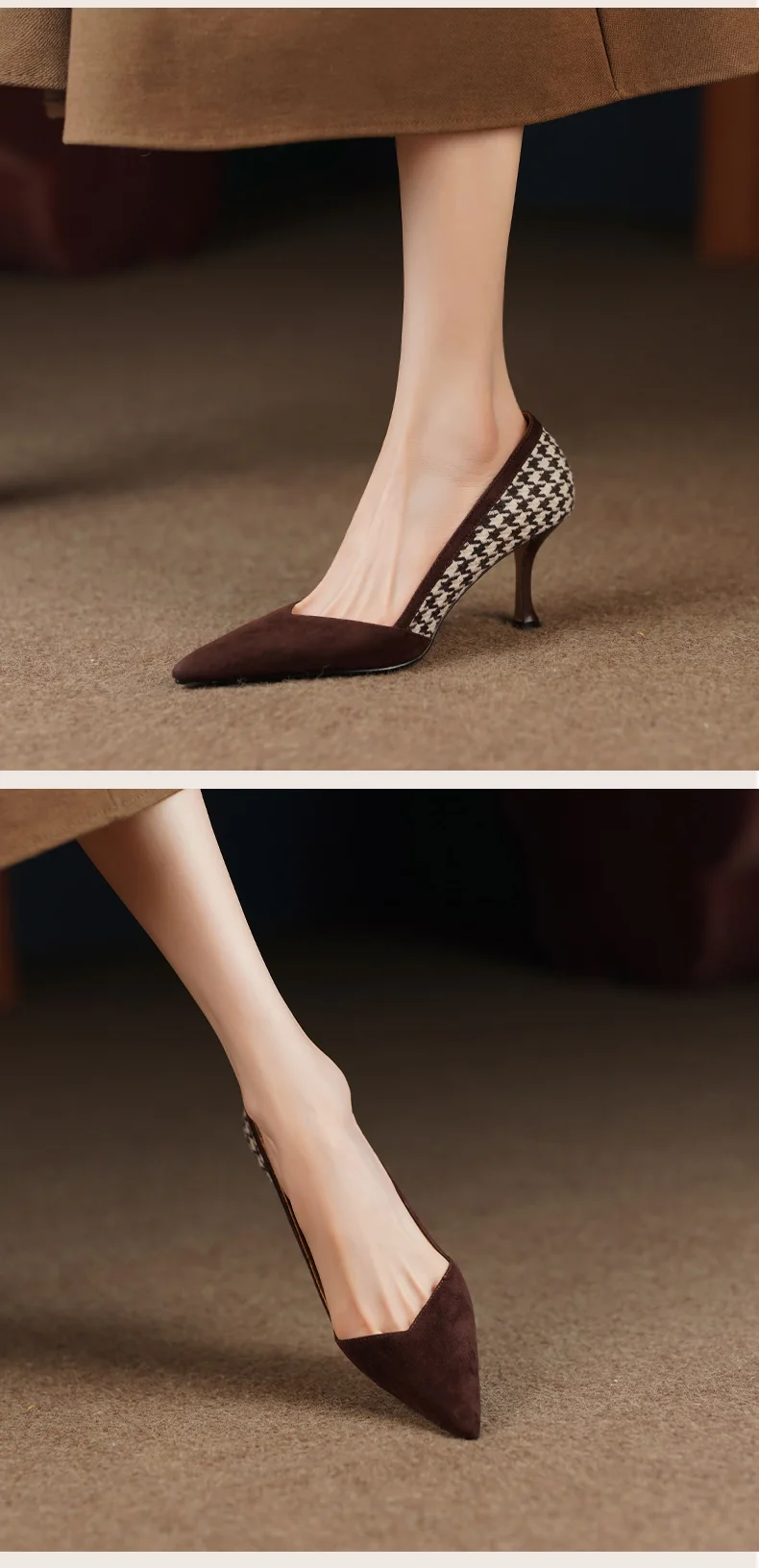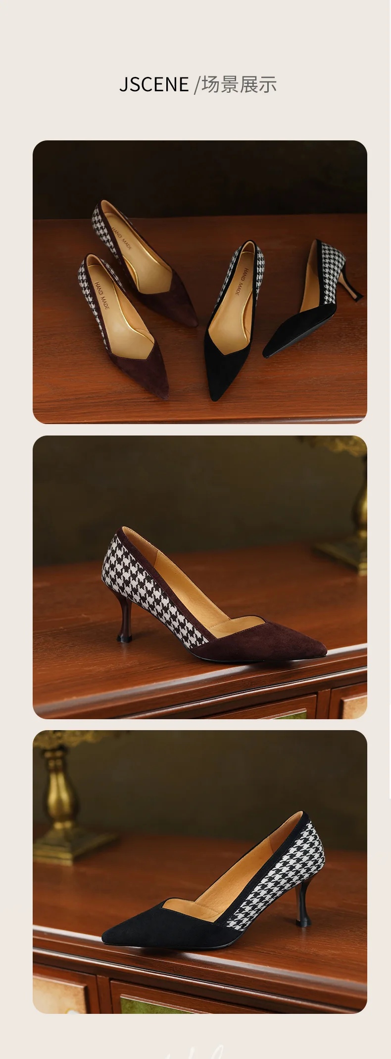 Back to school Spring women pumps natural leather plus size 22-26cm kid suede+Plaid+pigskin full leather pointed toe mixed colors high heels