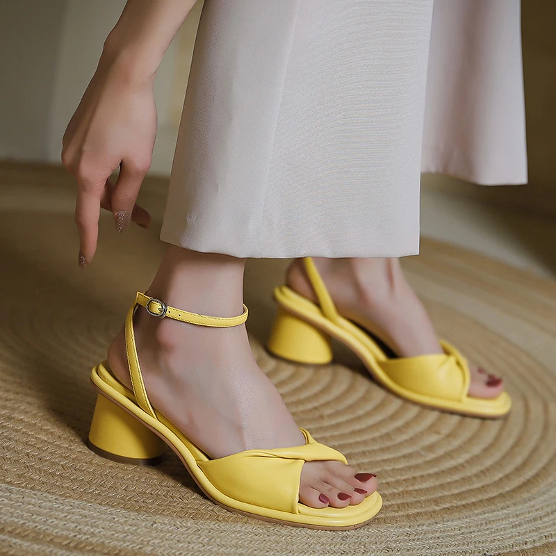 Back to school Summer Urban Casual Fashion High Shoes for Women Buckle-strap Real Leather Thick Heels Woman Sandals Outdoor Ladies Party Shoes