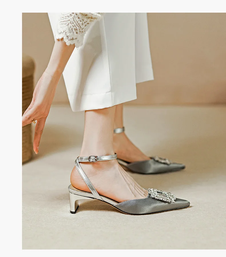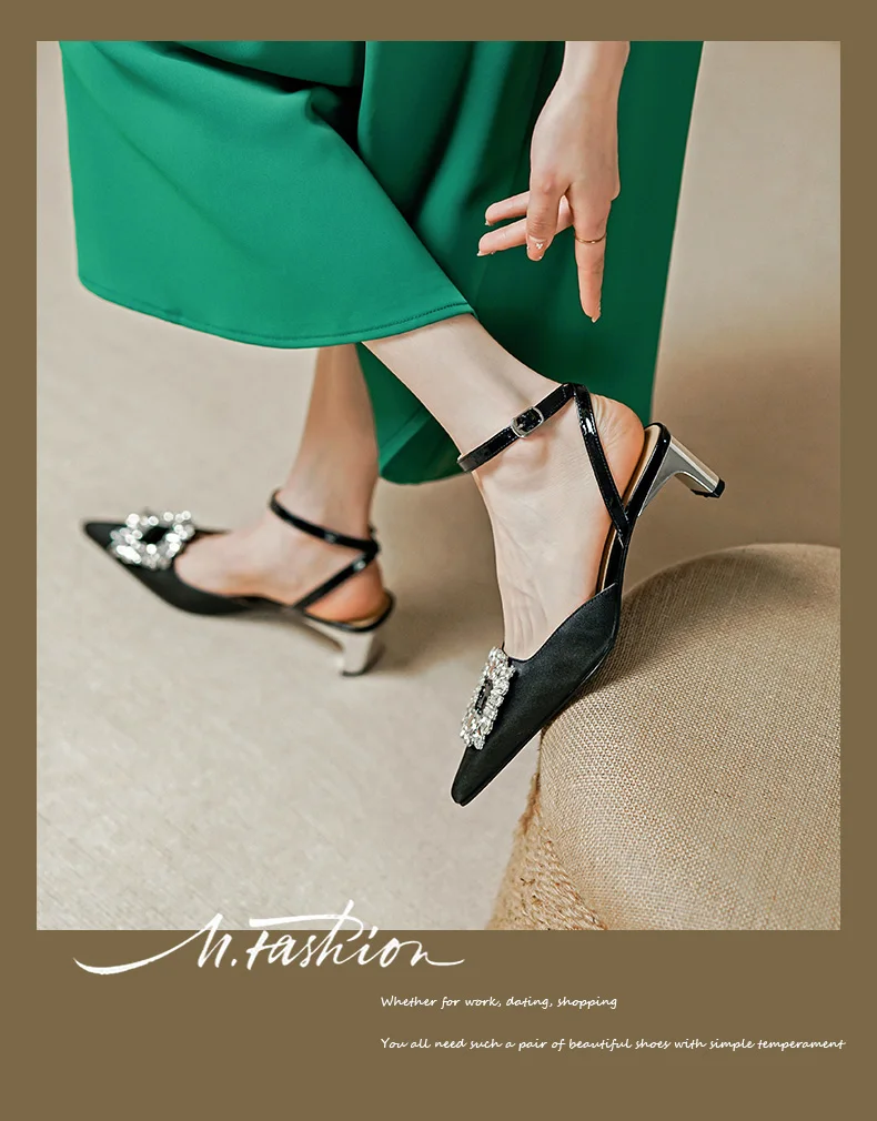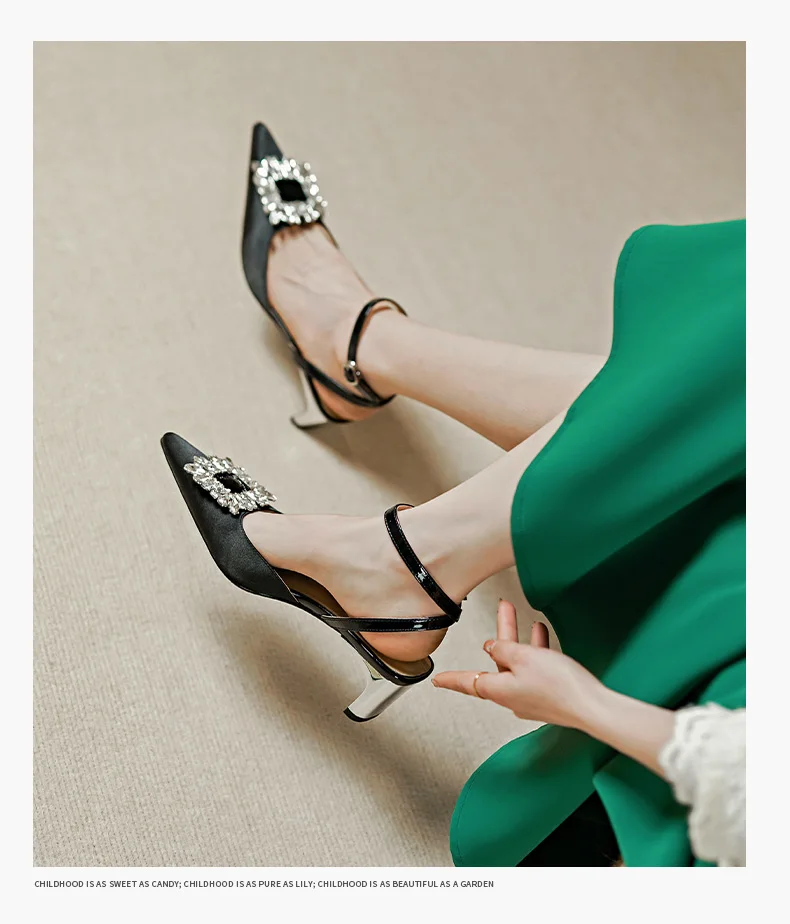 Back to school summer women sandals natural leather22-24.5cm silk upper Feminine Sandals Crystal Diamond shoes for women sandals