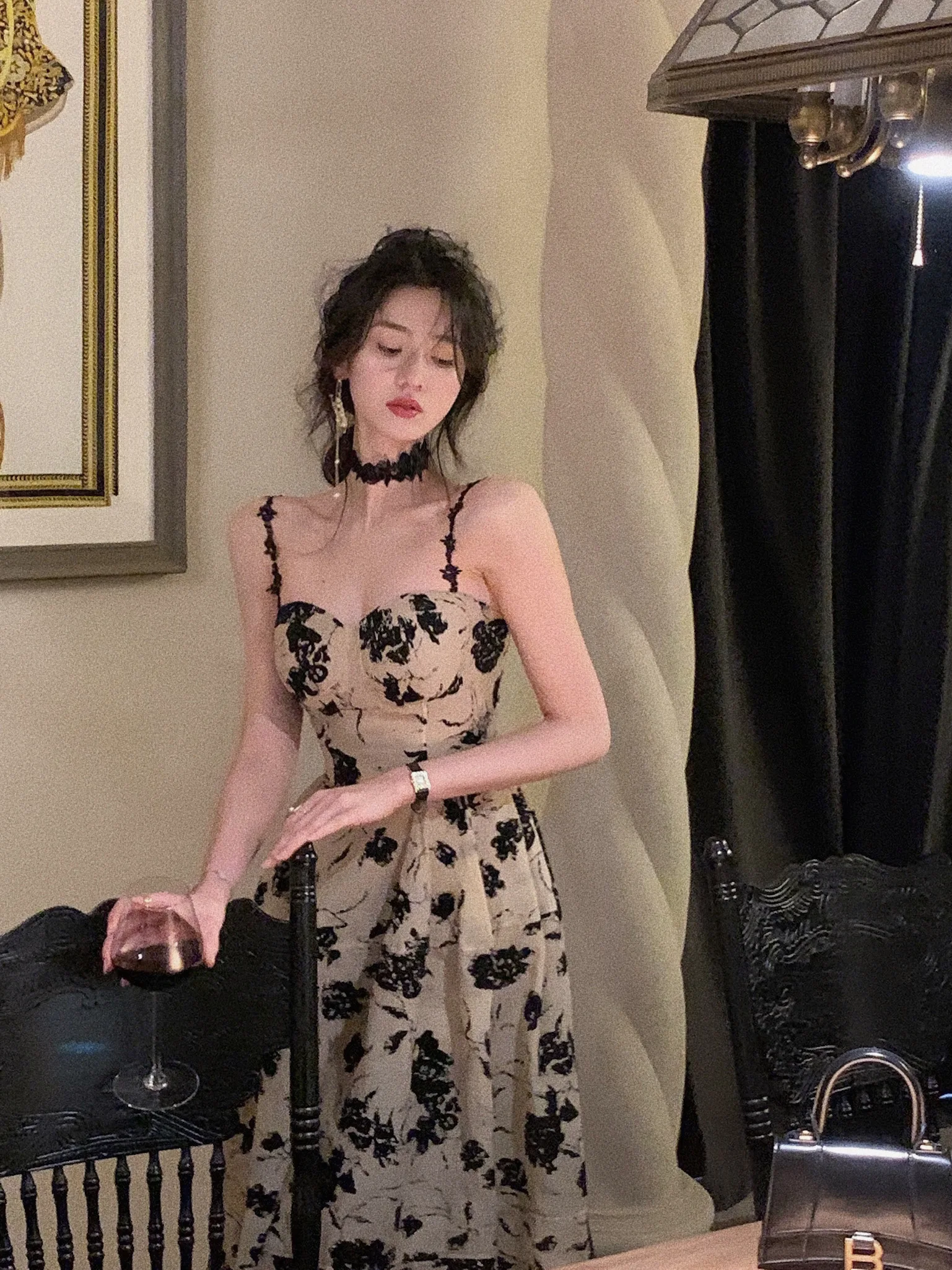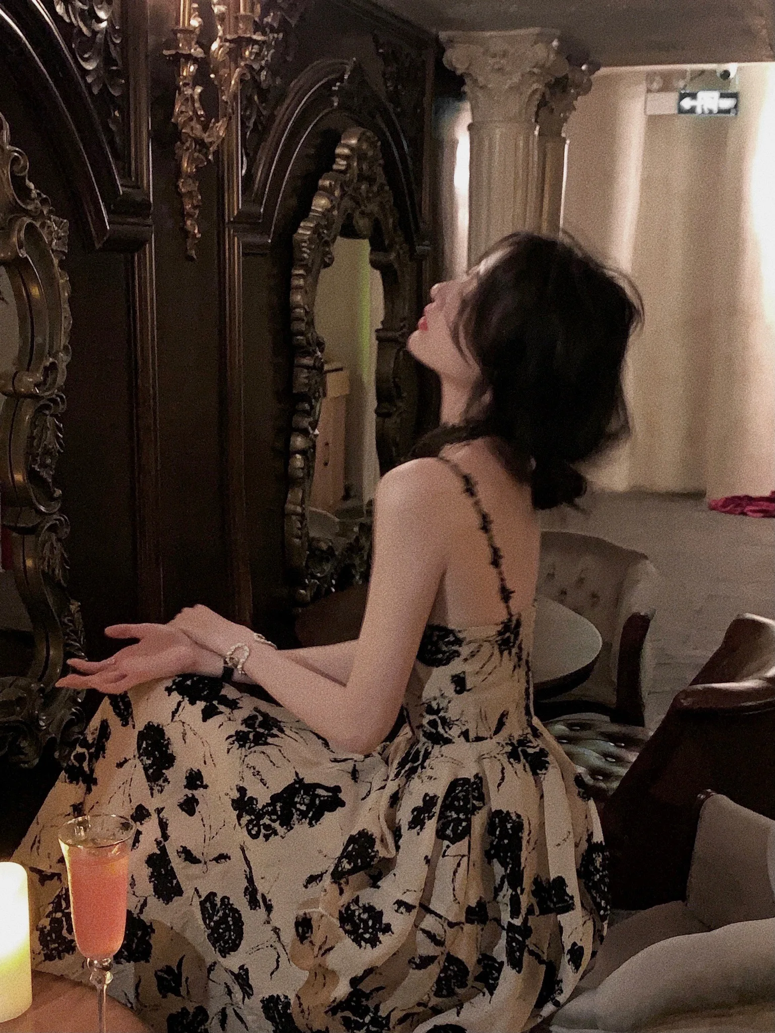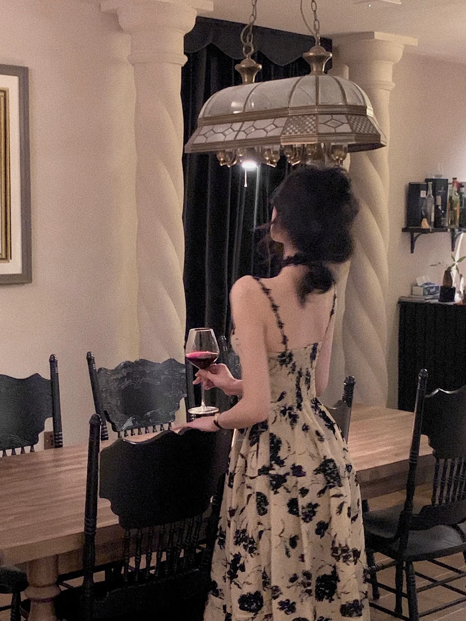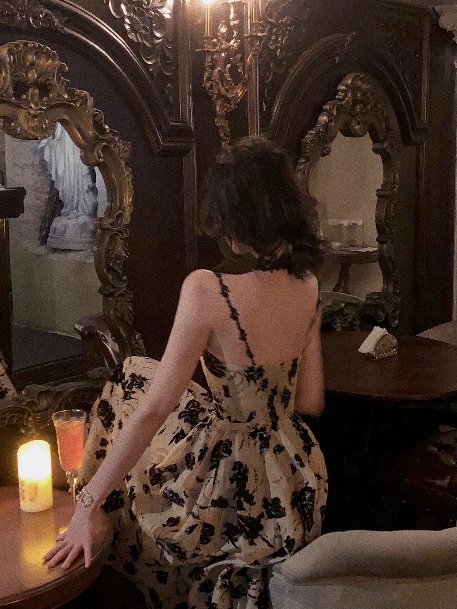 flowersverse Backless Sling Dress Women Summer New Vintage Sleeveless Ladies Vestido Summer Retro Chic Evening Party Design Midi Dresses