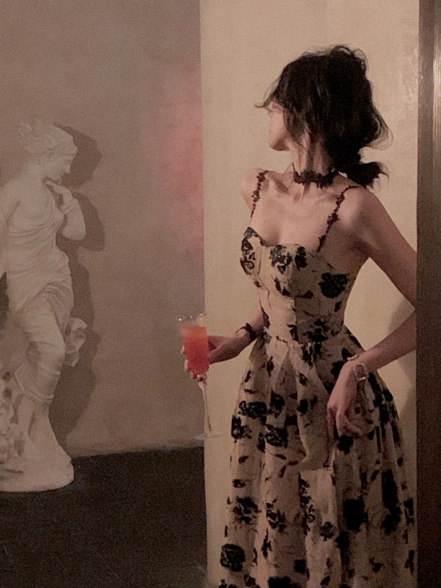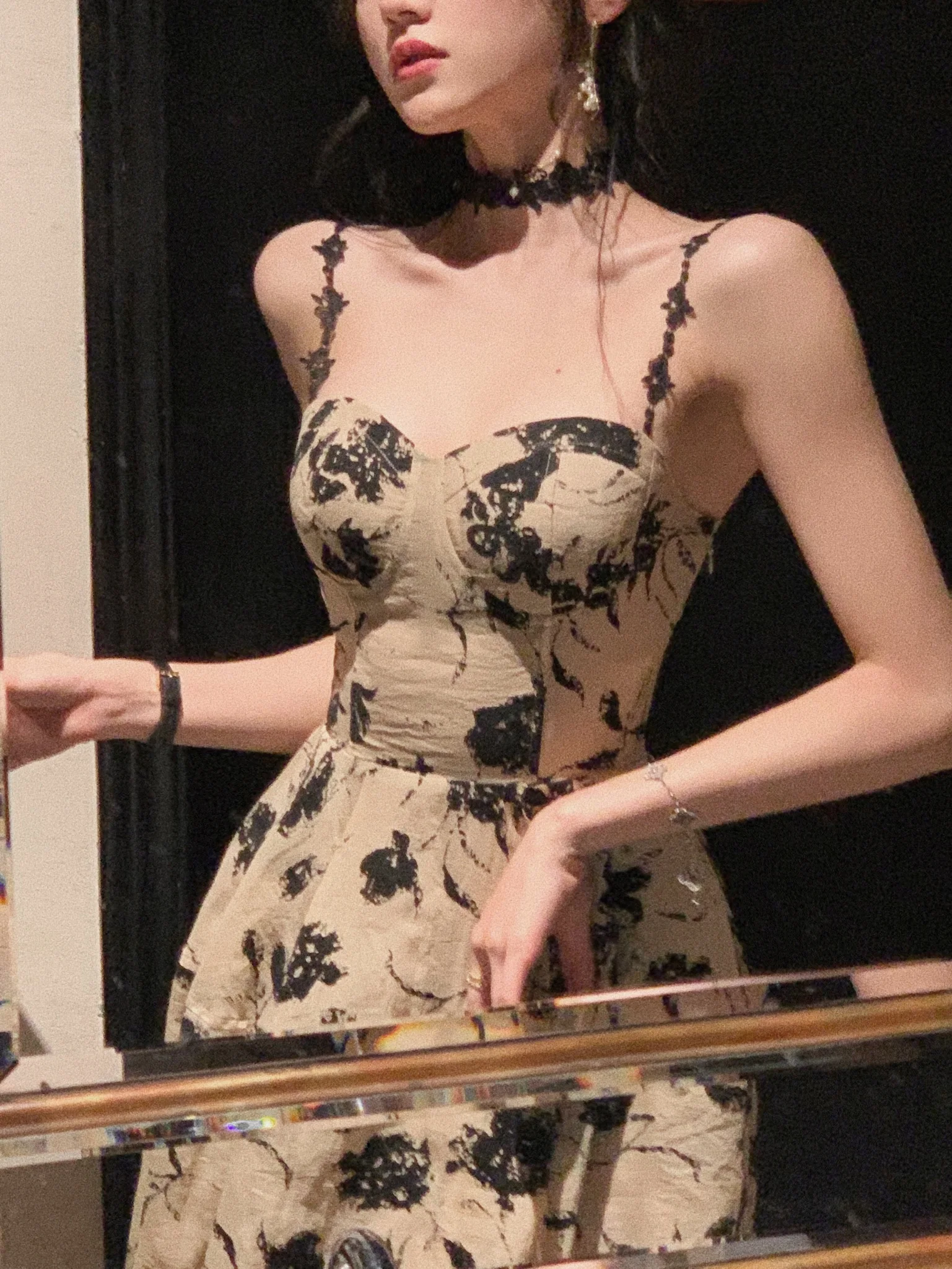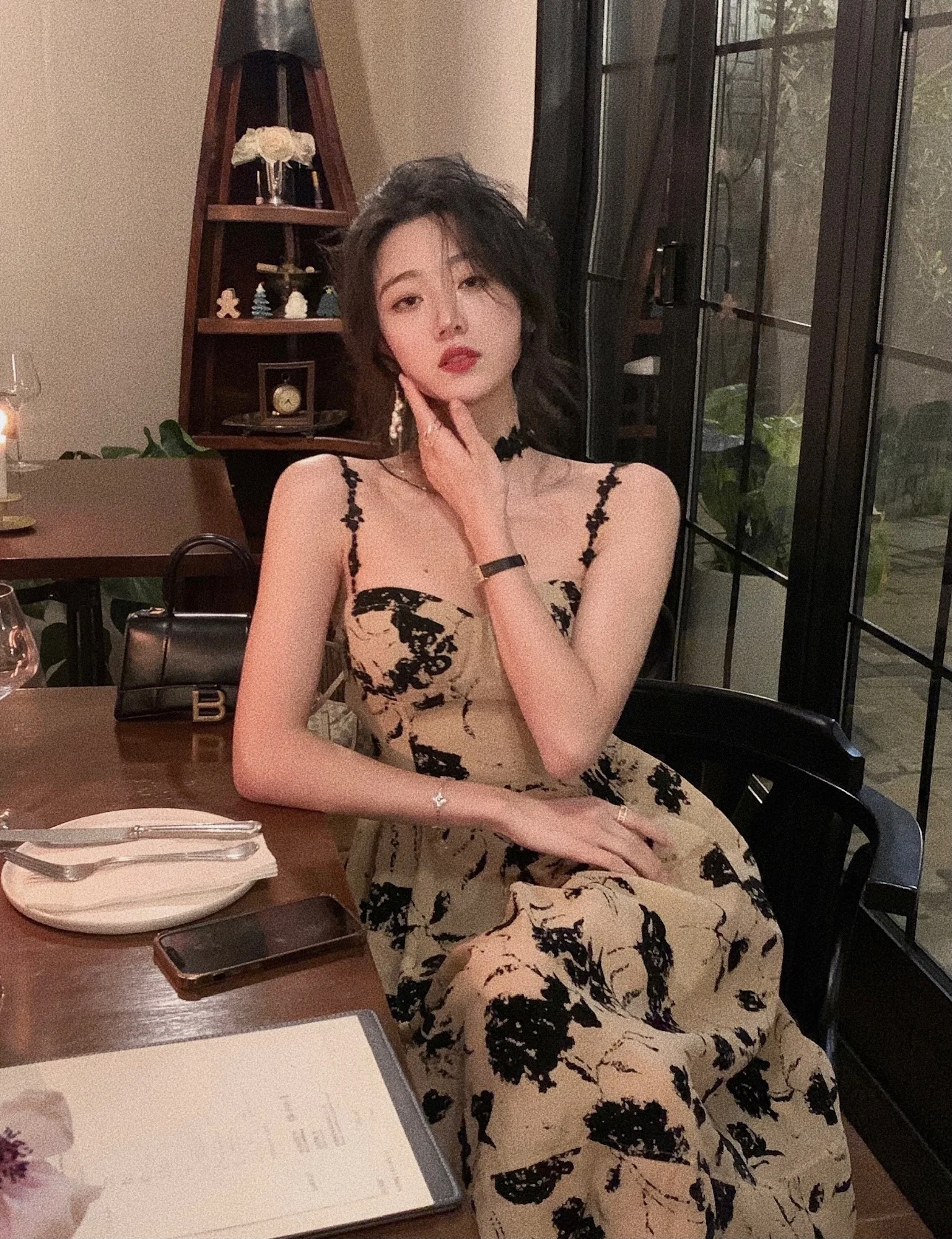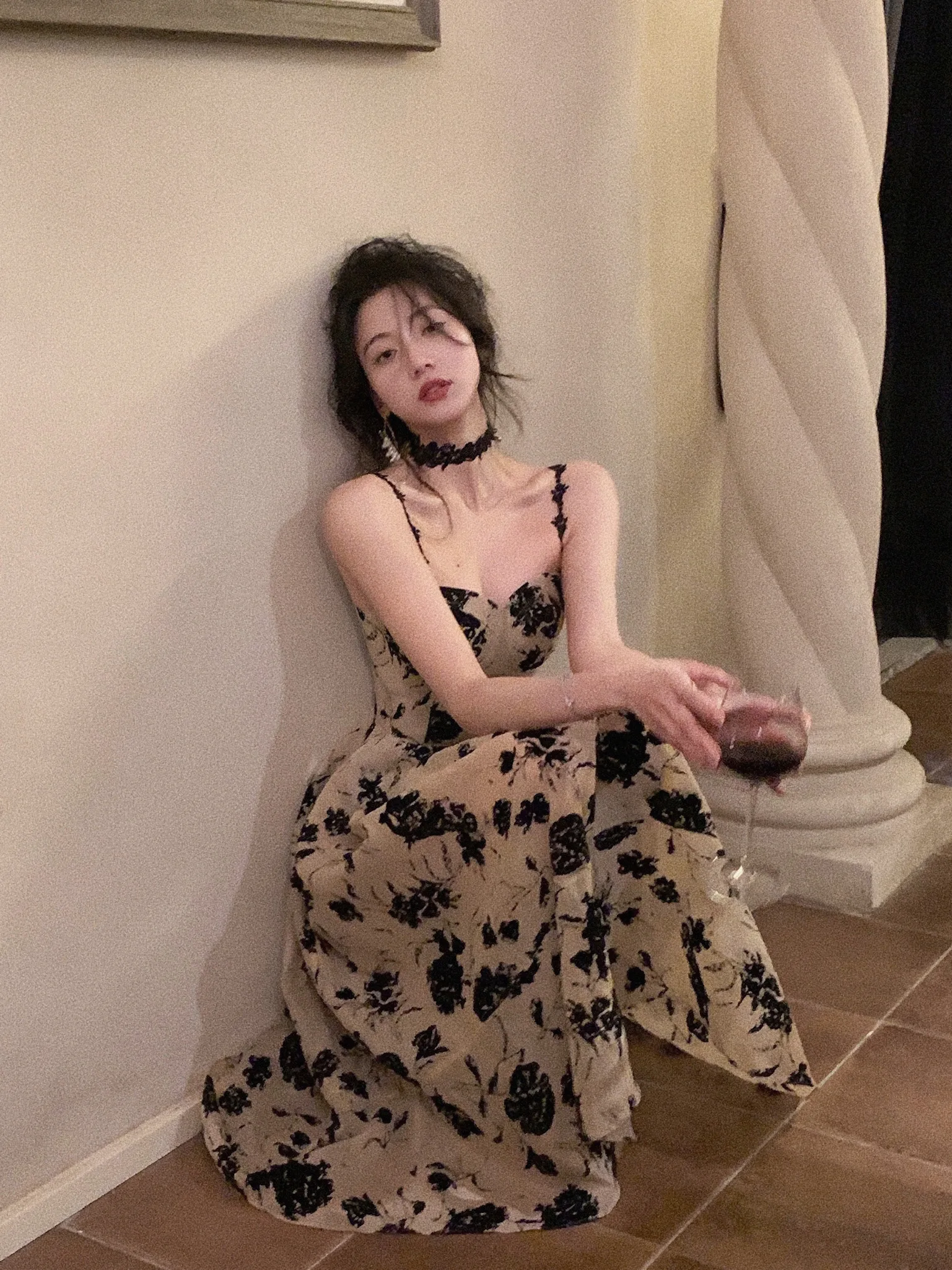 flowersverse Backless Sling Dress Women Summer New Vintage Sleeveless Ladies Vestido Summer Retro Chic Evening Party Design Midi Dresses