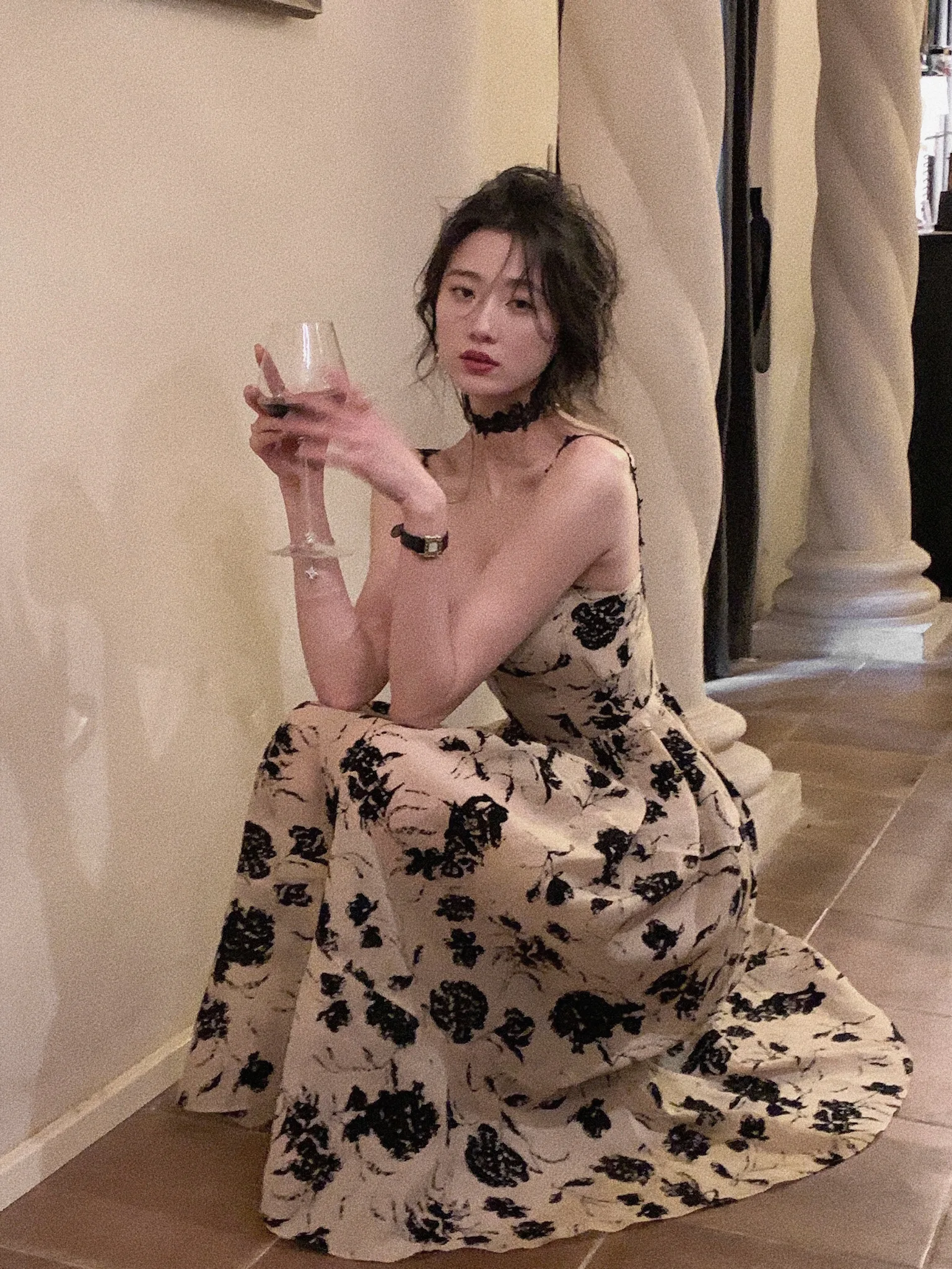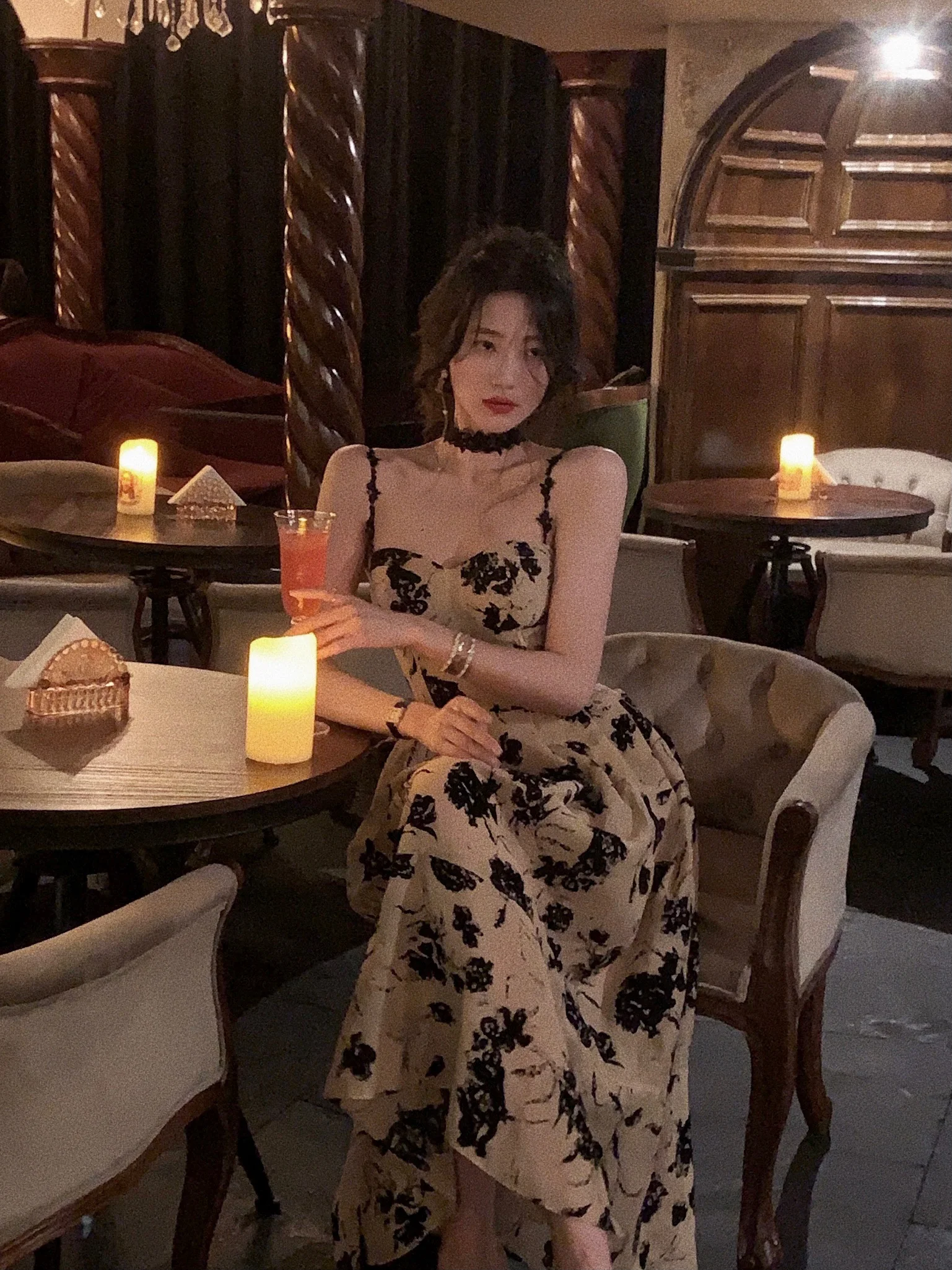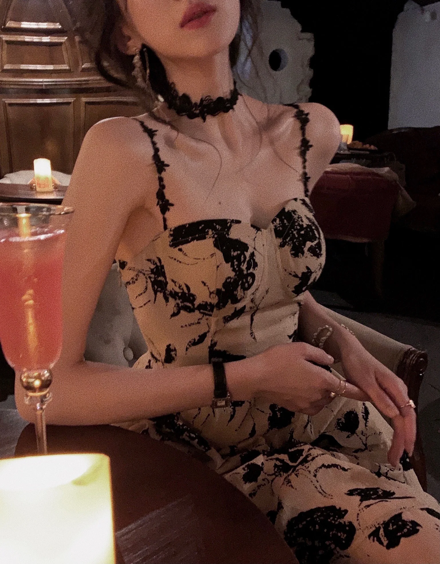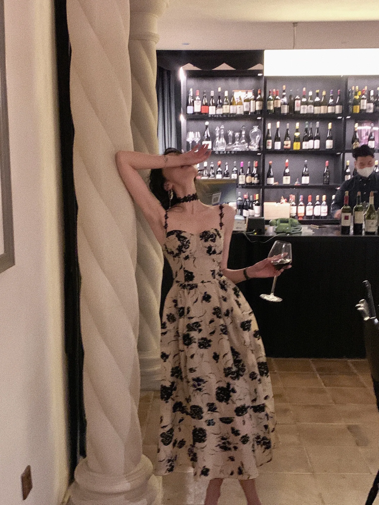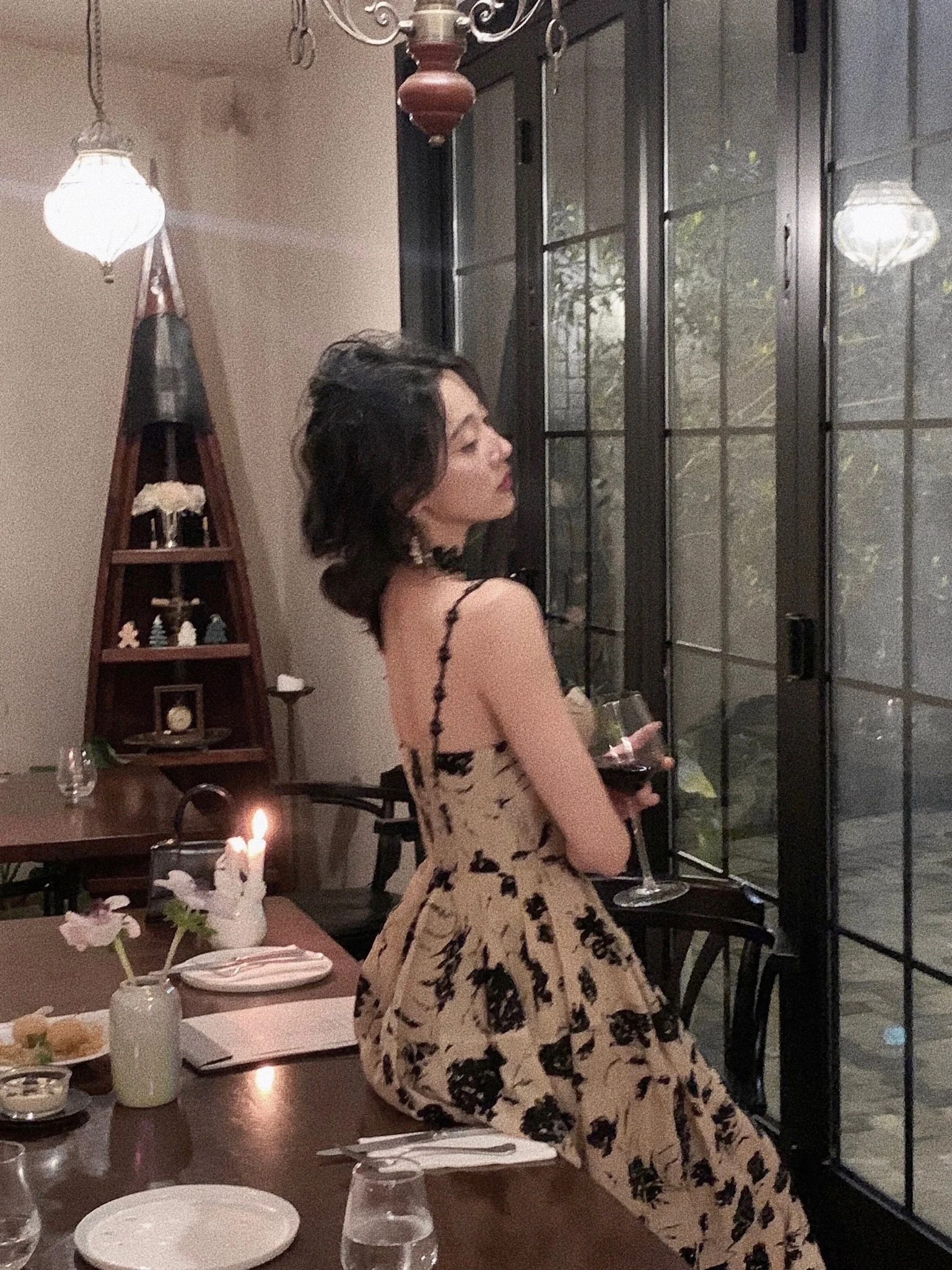 flowersverse Backless Sling Dress Women Summer New Vintage Sleeveless Ladies Vestido Summer Retro Chic Evening Party Design Midi Dresses