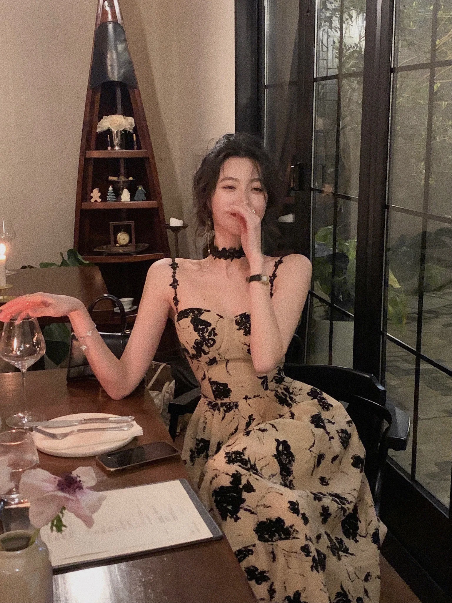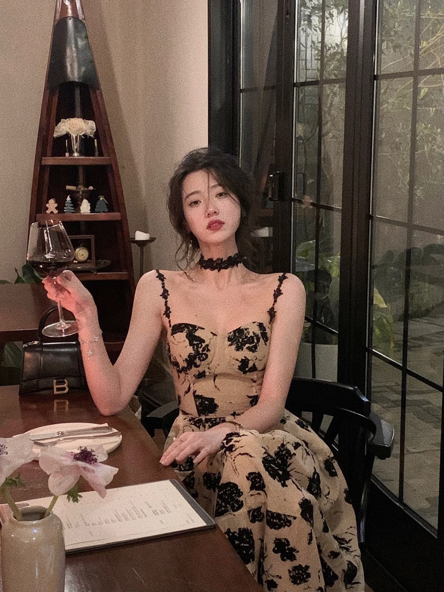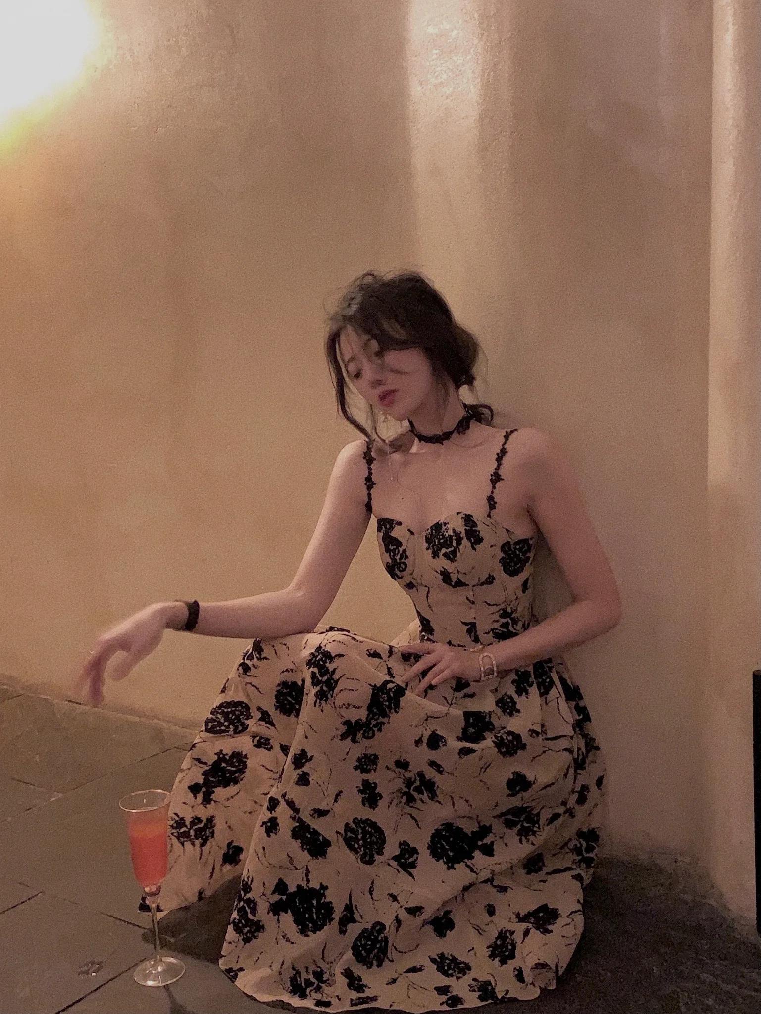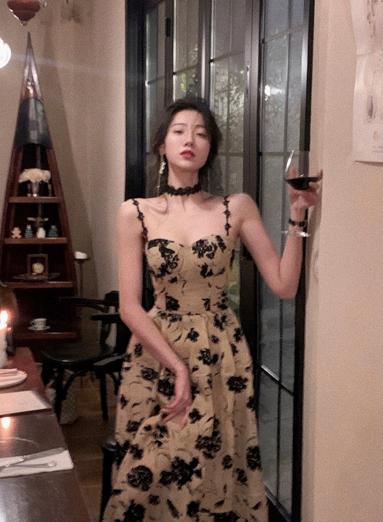 flowersverse Backless Sling Dress Women Summer New Vintage Sleeveless Ladies Vestido Summer Retro Chic Evening Party Design Midi Dresses