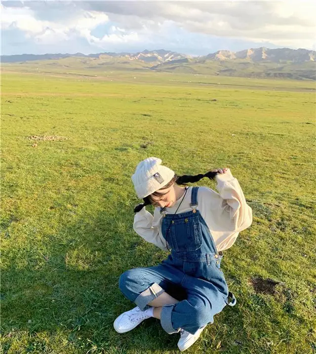 flowersverse Baggy Denim Jumpsuit Women Autumn New Loose Jean Overalls Female Korean High Waist Straight Leg Trousers