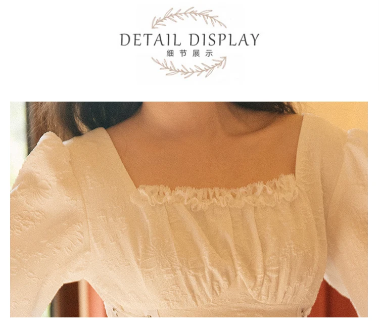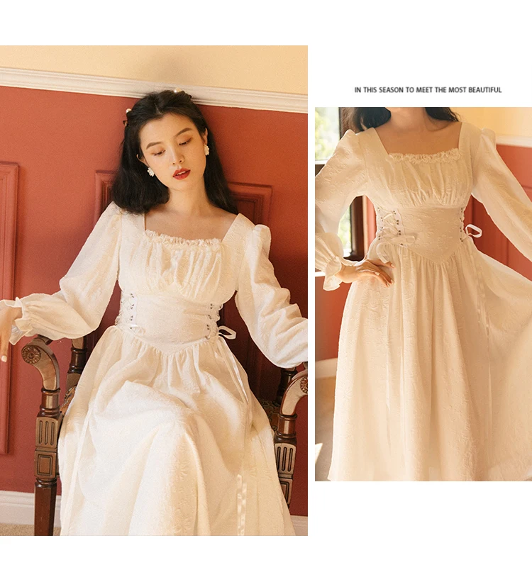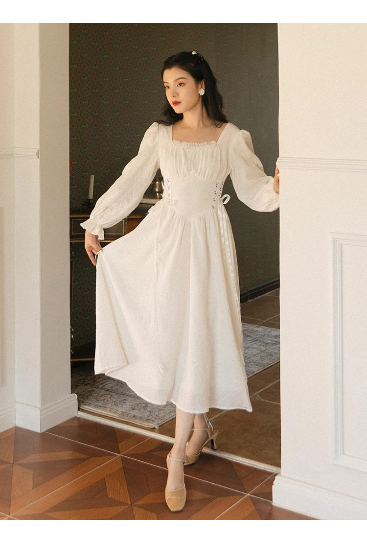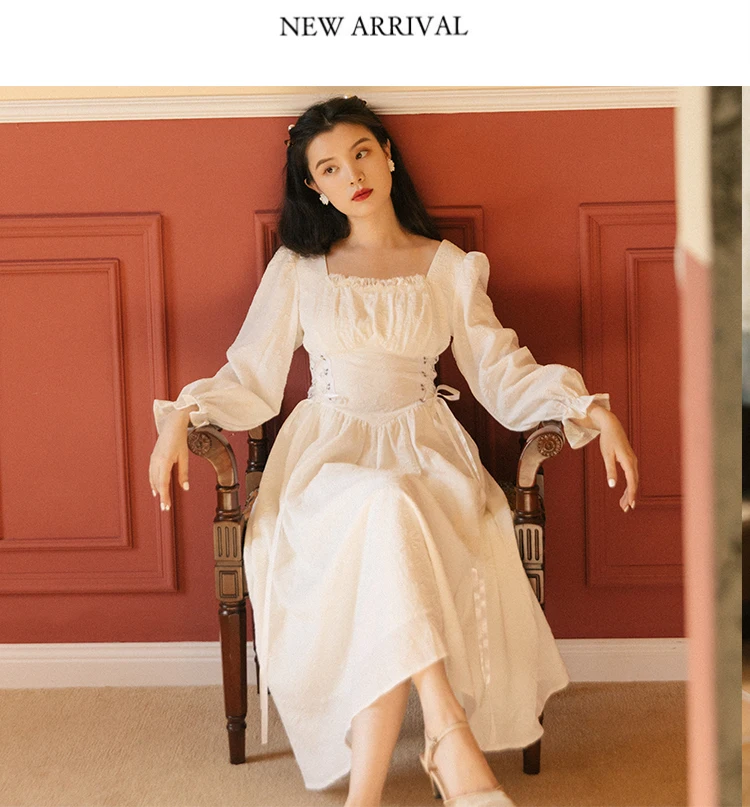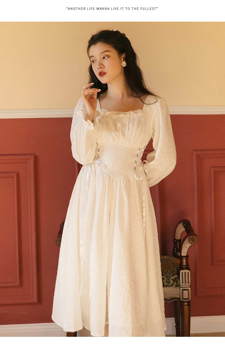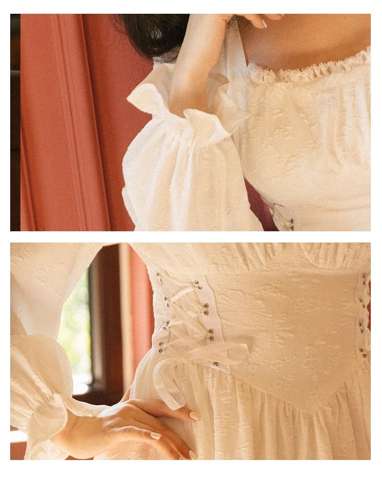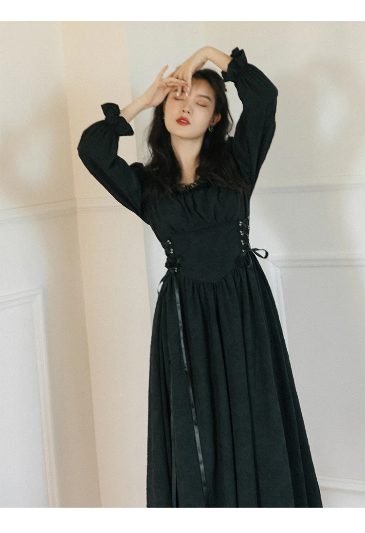 flowersverse Back to school outfit Black & White Jacquard Vintage Lady Dress Retro Royal Style Square Collar Petal Sleeve Bandage Princess Dresses For Party Night