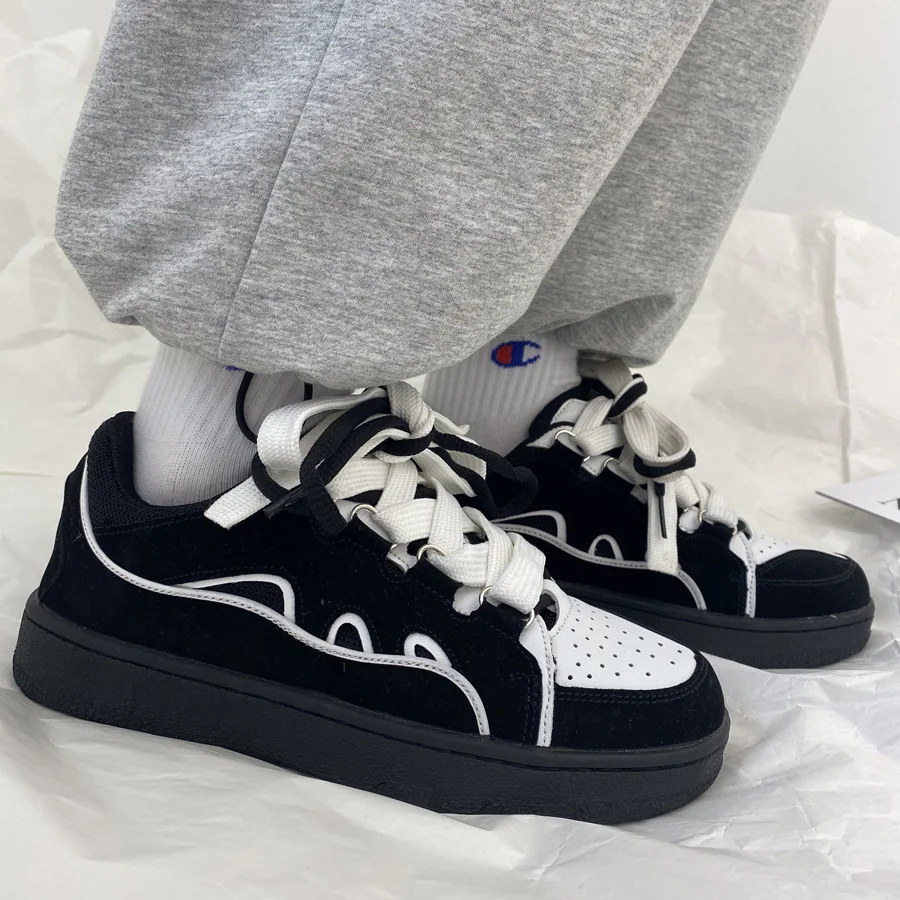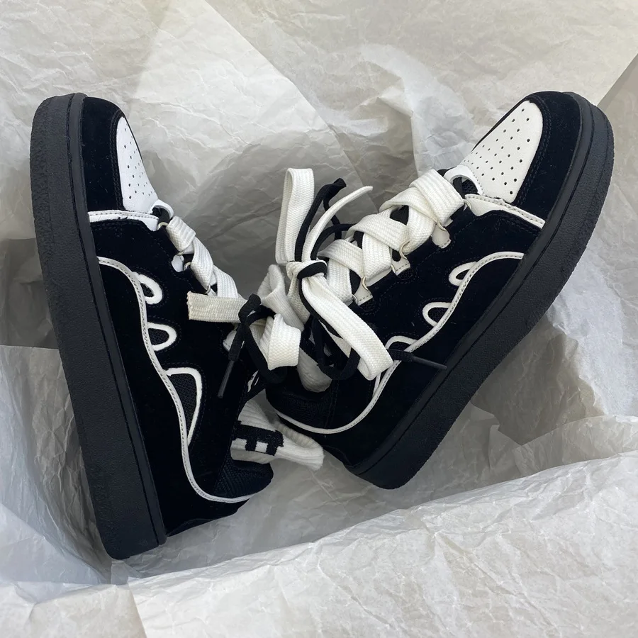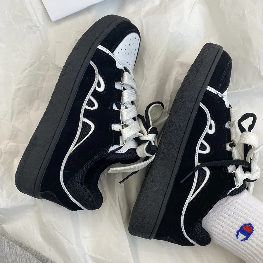 Black Friday Amozae Black Women's Vulcanize Shoes Couple Sneakers Women's Flat Shoes Designer Lace Up Women Sport Shoes Casual Footwear Plus Szie 44