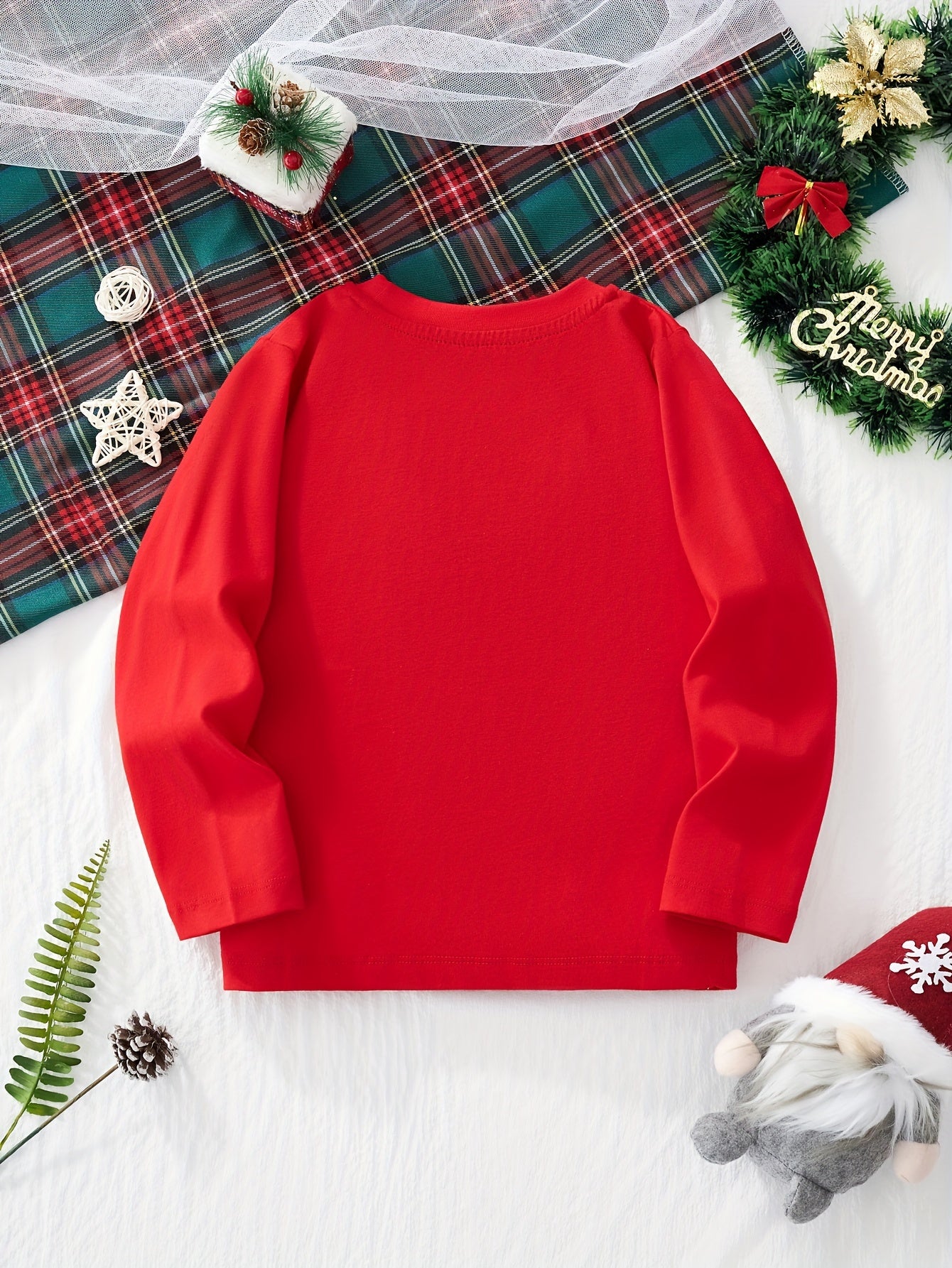 Boy's Cartoon Print Long Sleeve Crew Neck T-shirt - Fun Christmas Tree Design, Kids Casual Holiday Autumn Winter Clothes, Comfortable and Cozy for Boys