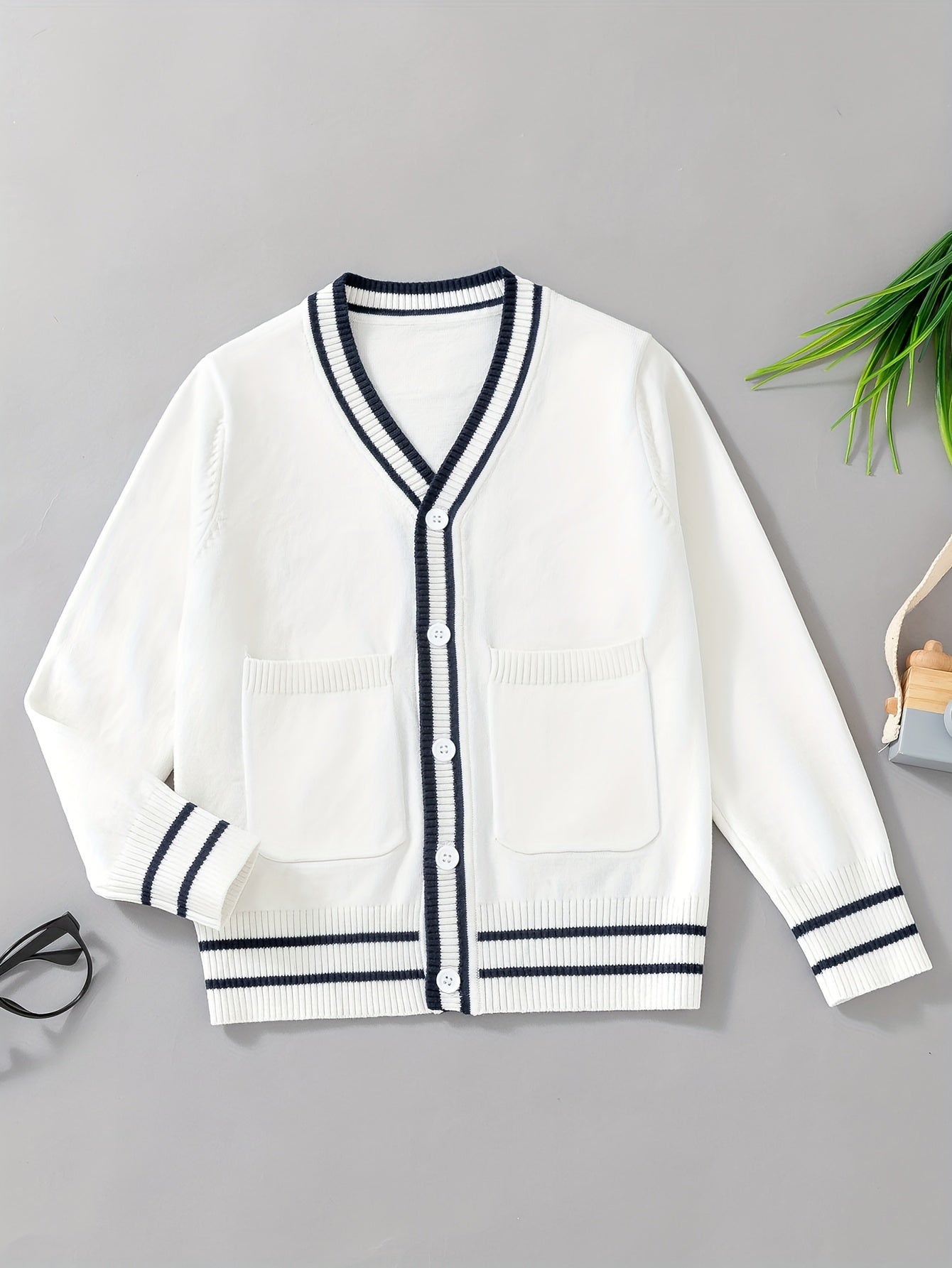 Boys Casual Preppy Style Uniform Knit Cardigan Sweater, Long Sleeve Tops, Boys Clothing Outdoor