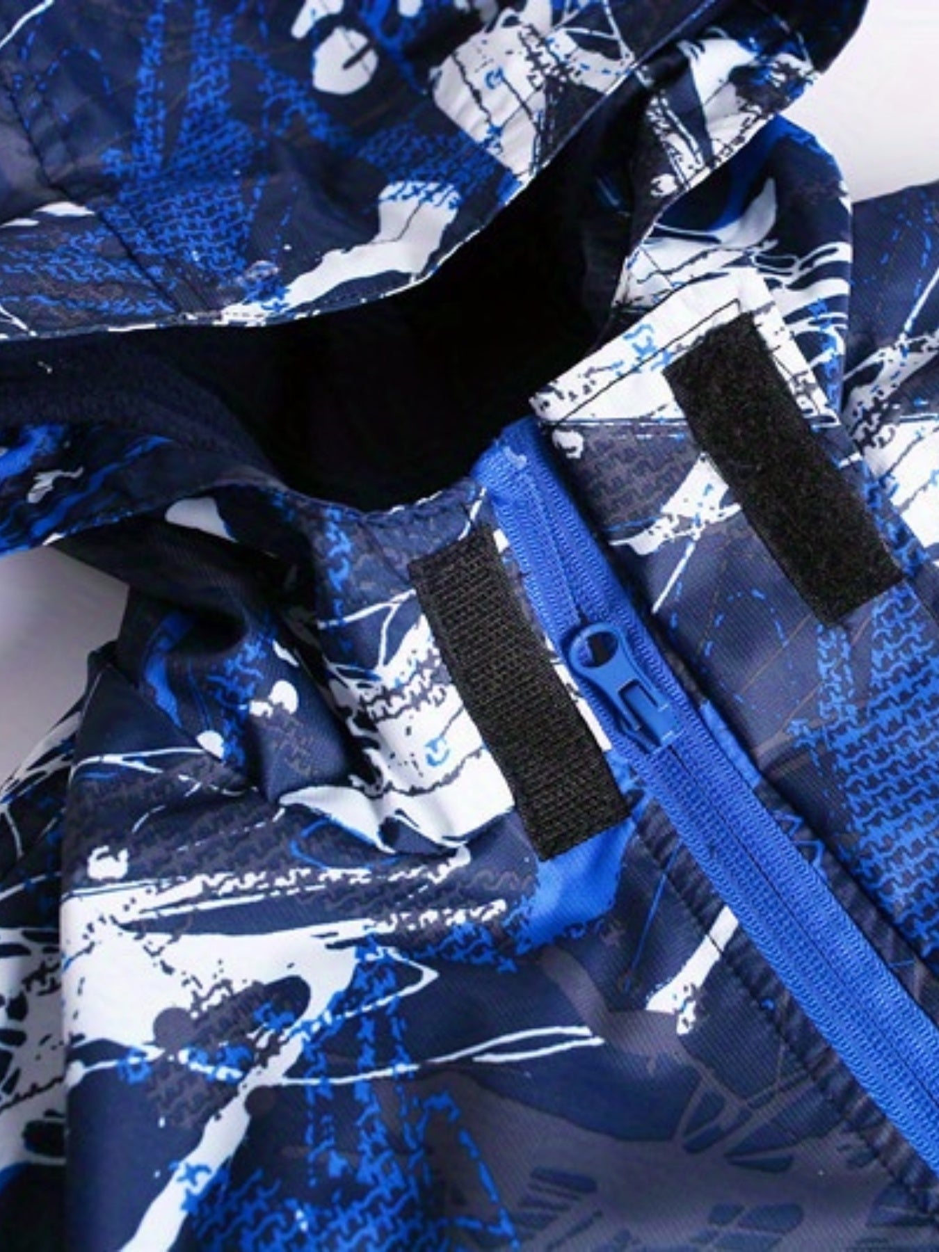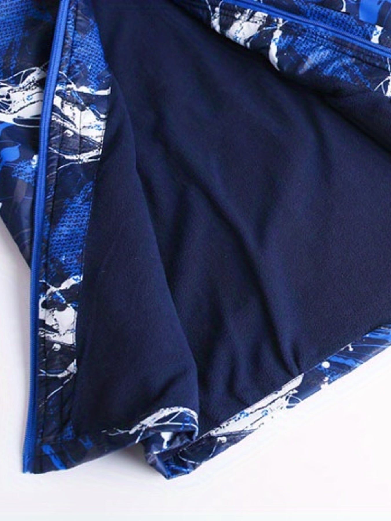 Boys Fashion Windbreaker Fleece Lining Hooded Jacket, Long Sleeve Zip Up Waterproof Jacket, Kids Clothing