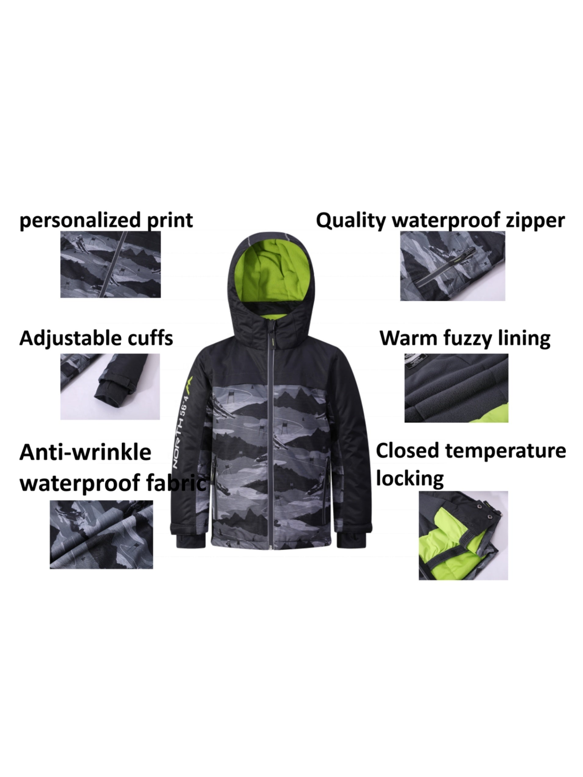 Boys' Stylish Snow Mountain Windbreaker Jacket - Snow Suits for Kids with Fleece Lining, Hood, Long Sleeve, Zip-Up, Waterproof, and Professional Ski Features - Perfect for Winter Outdoor Activities