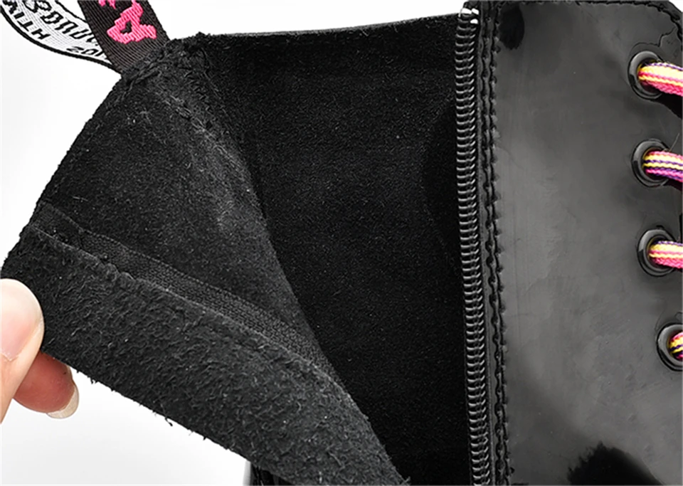 Amozae Bright Genuine Leather Boots Women Platform Boots Lace-Up Zipper Female Combat Boot Increase Height Lady Shoes Black Botas Muje