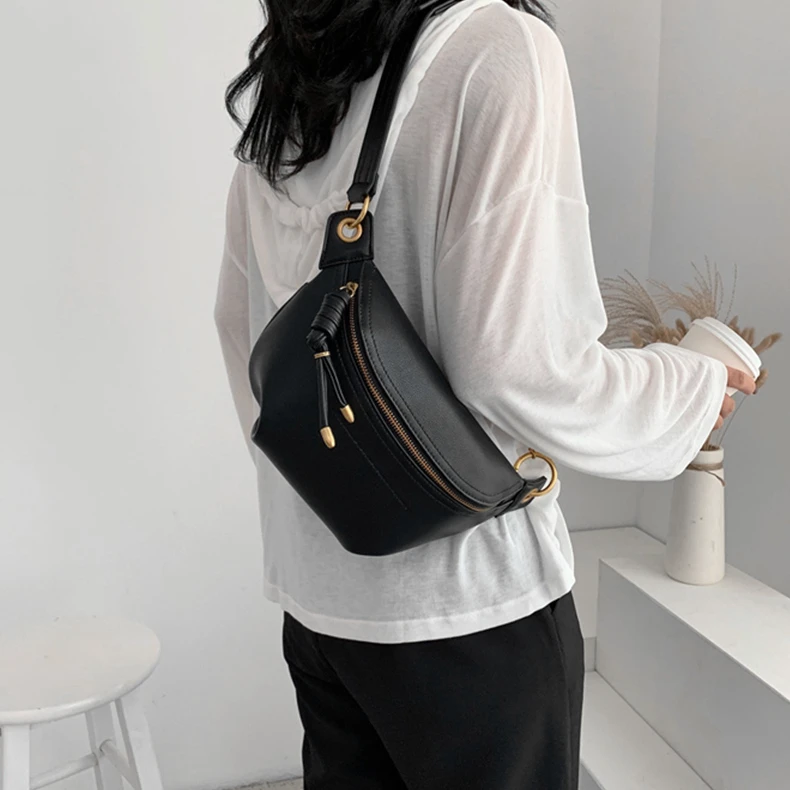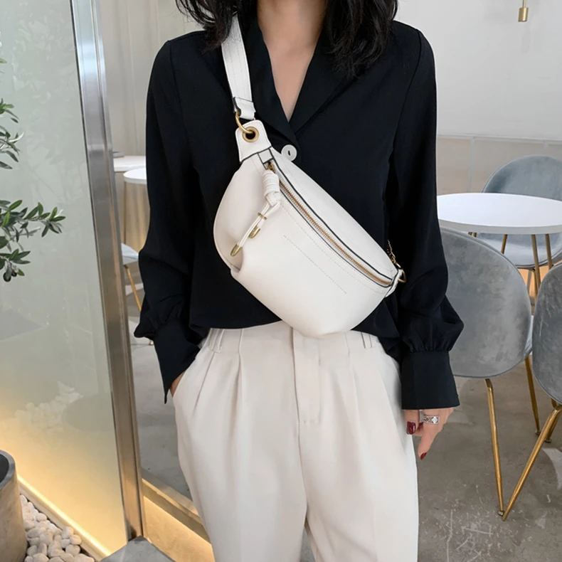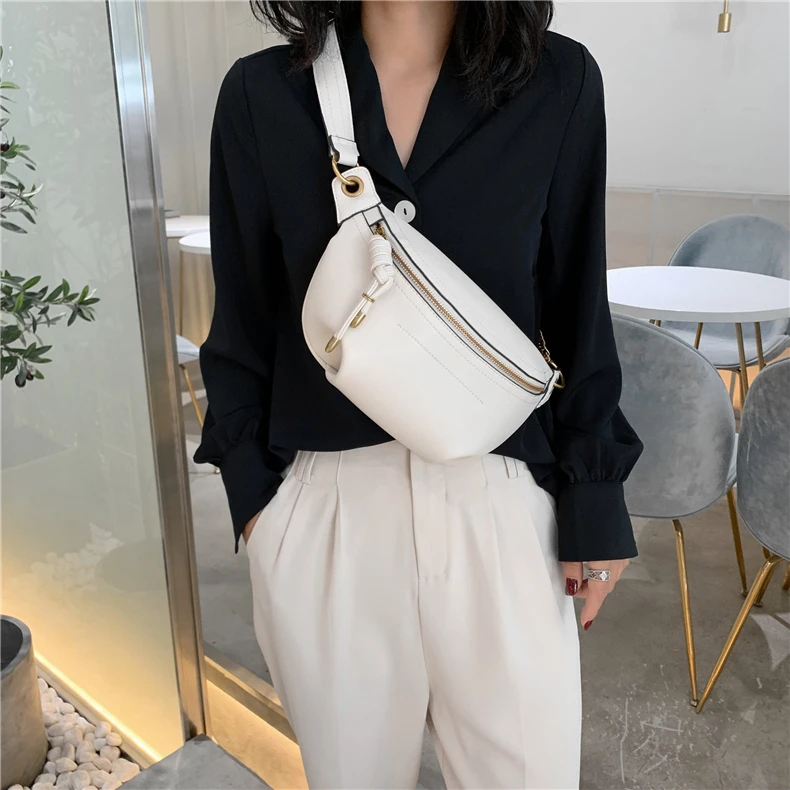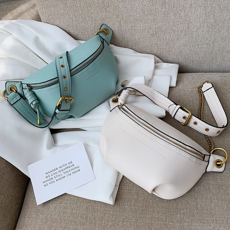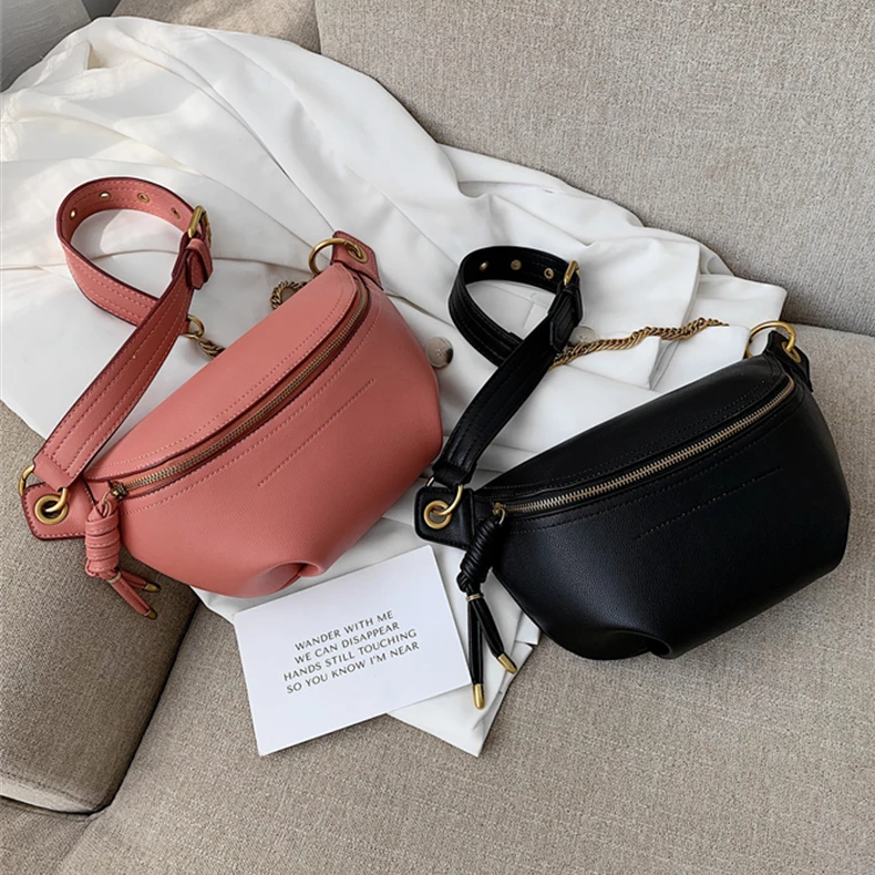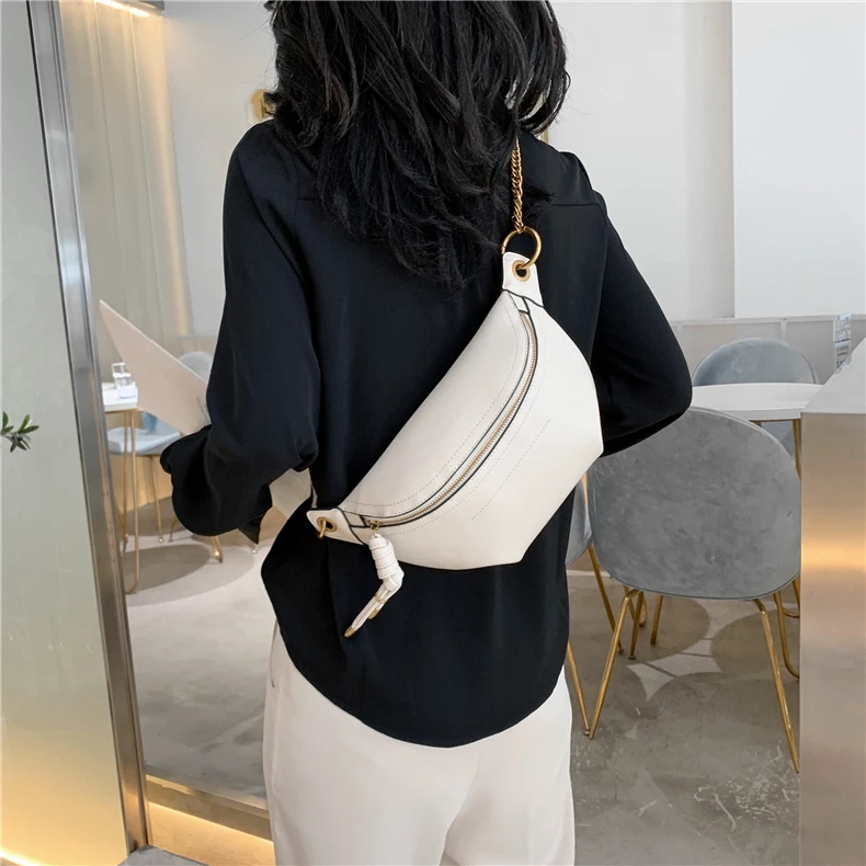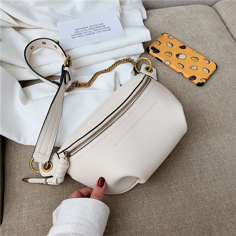 flowersverse Back to school Solid Color Chain Crossbody Chest Bags For Women Trend Beige Black Waist Fanny Pack Brand Designer Sling Handbags