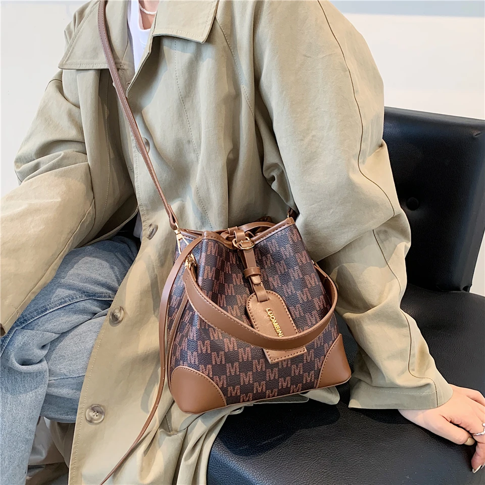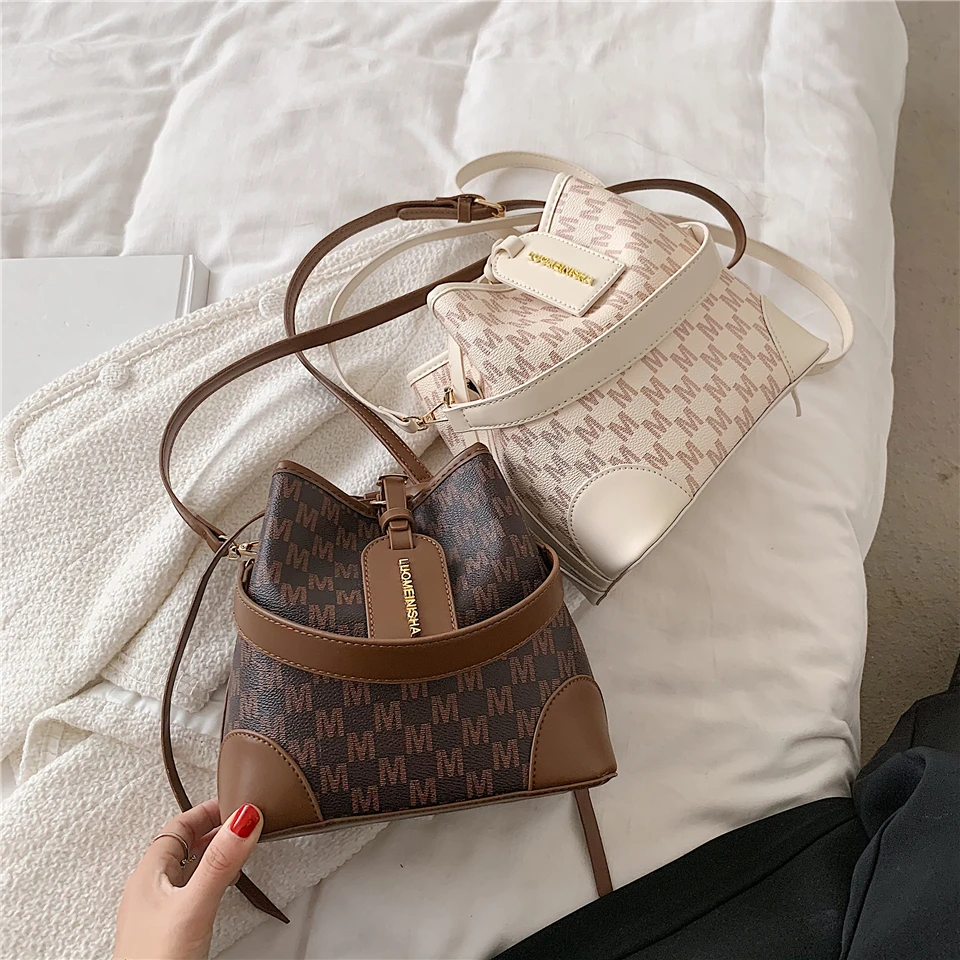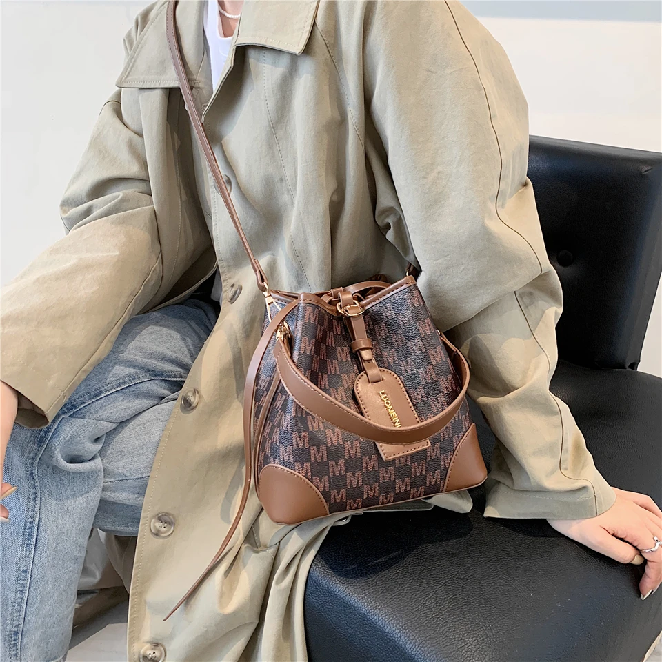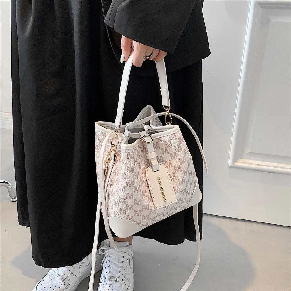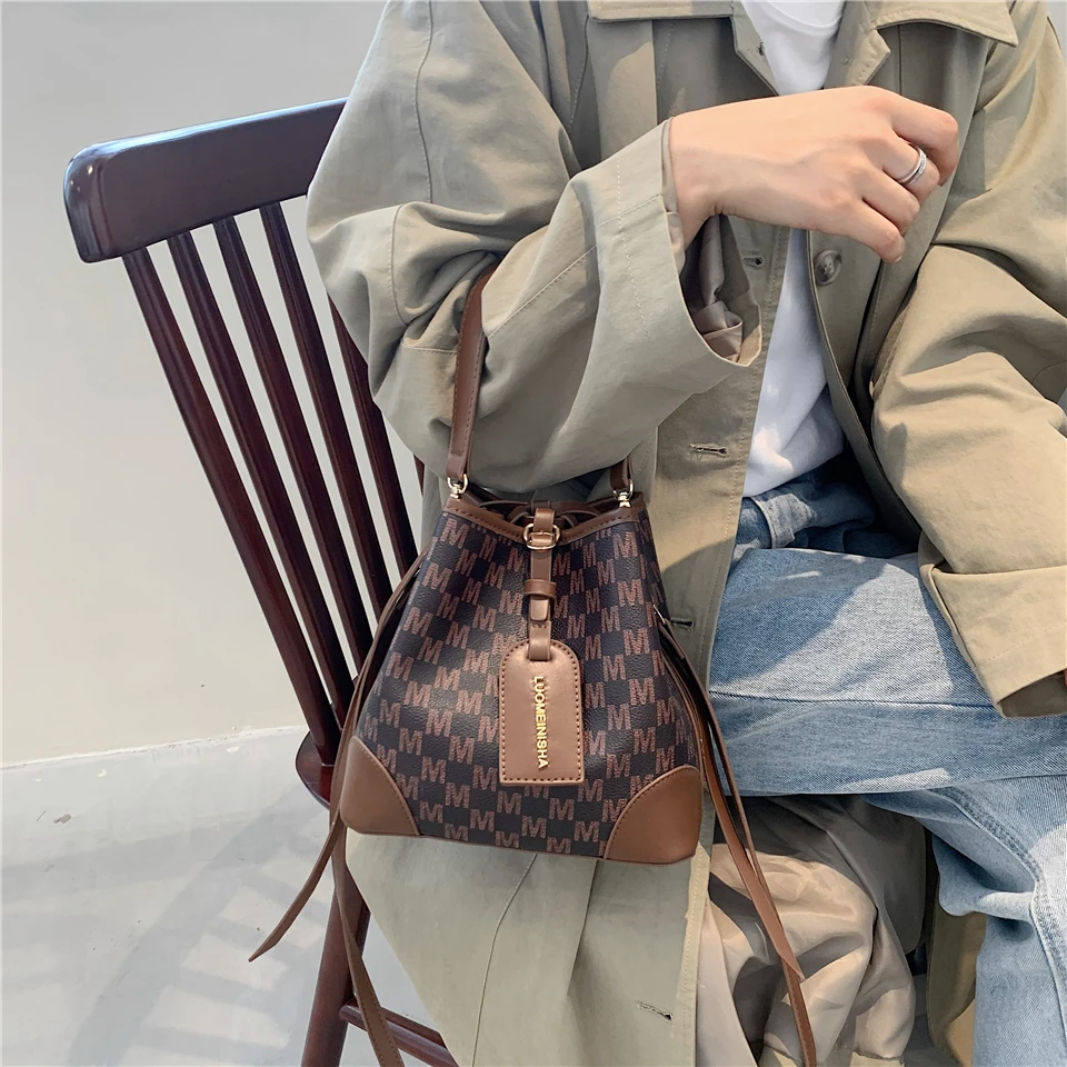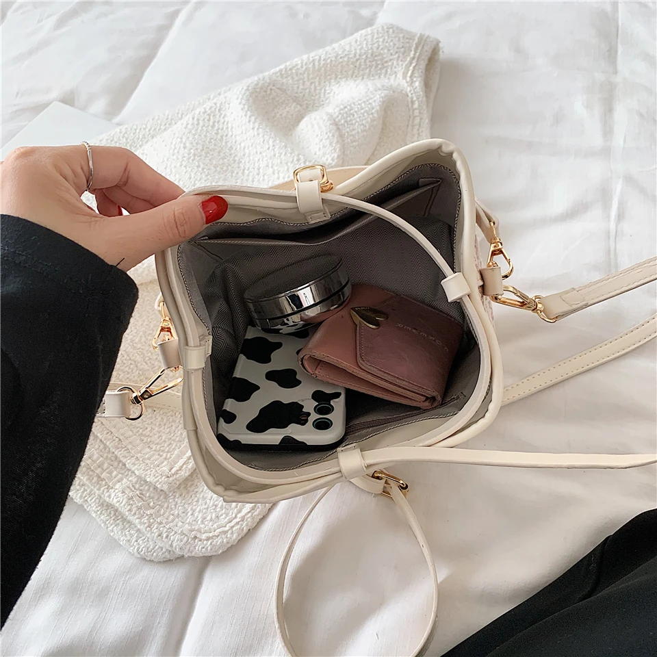 flowersverse Back to school Letters Drawstring Bucket Small Women Handbags Trend Fashion Designer Ladies Shoulder Crossbody Bags Pink Beige