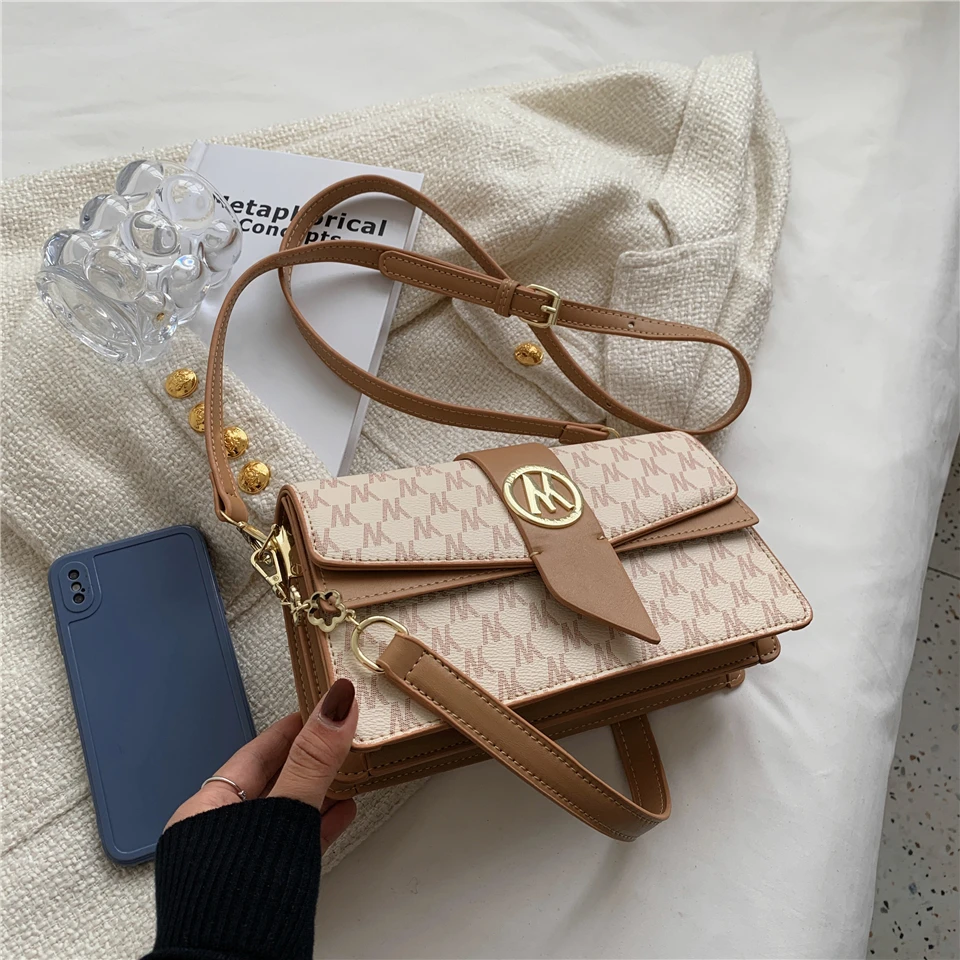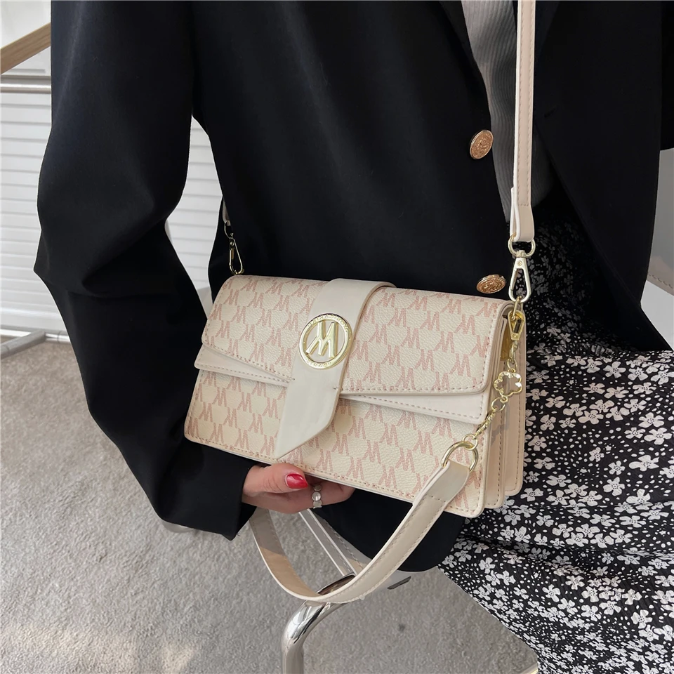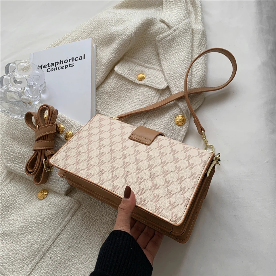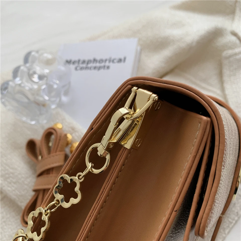 flowersverse Back to school Letters Print Luxury Designer Small Handbags For Women Trends Fashion Ladies Shoulder Crossbody Bags White Khaki