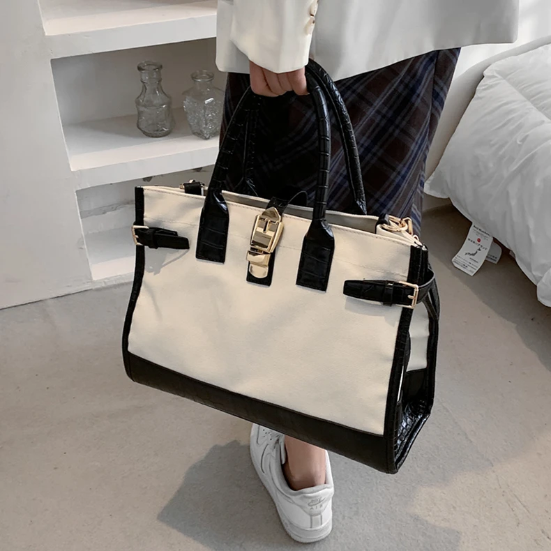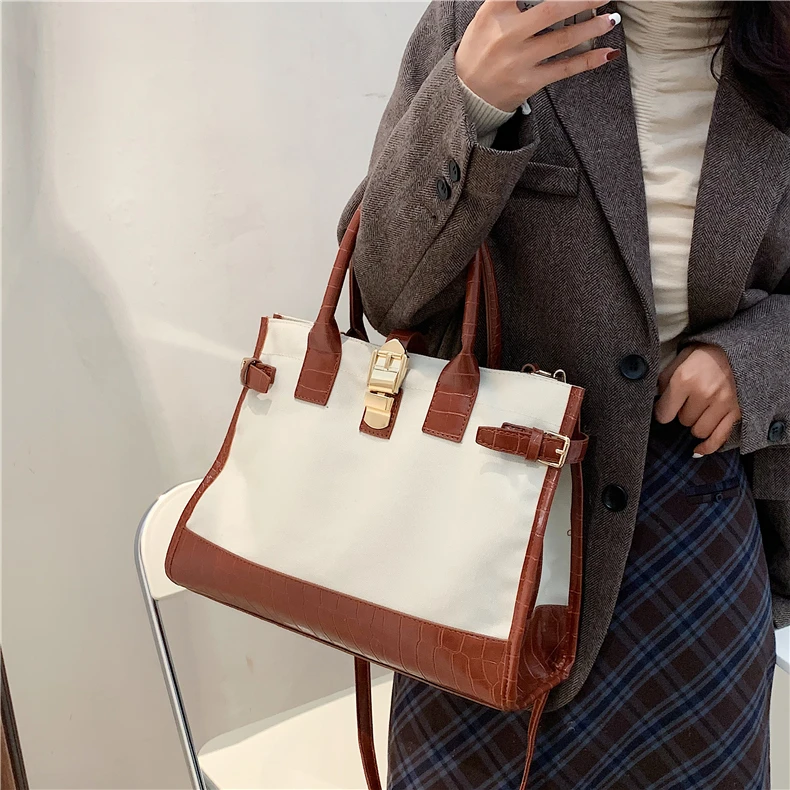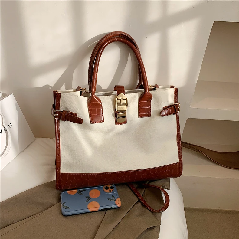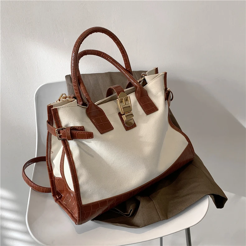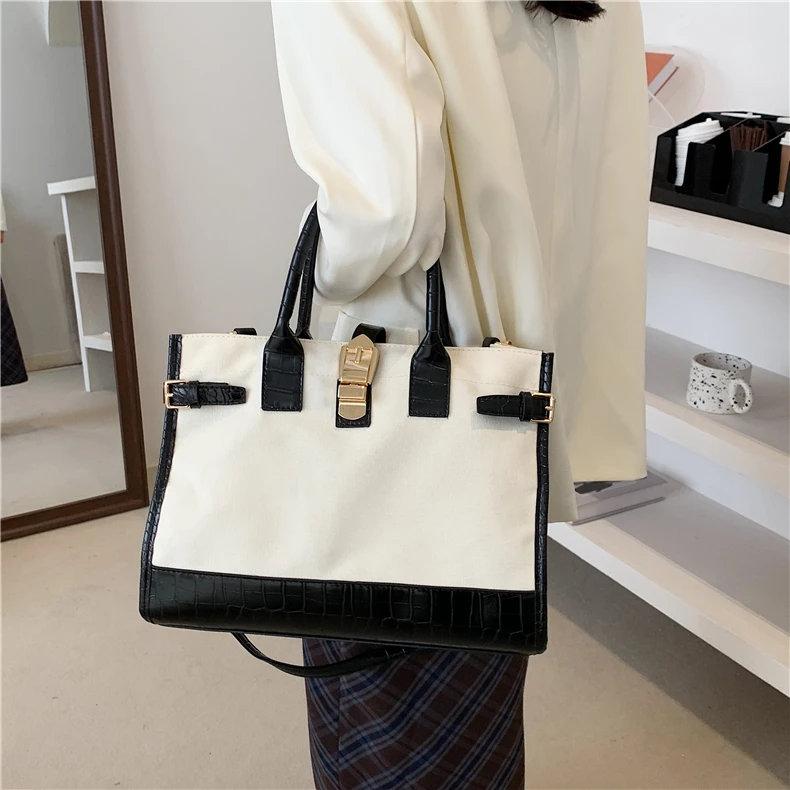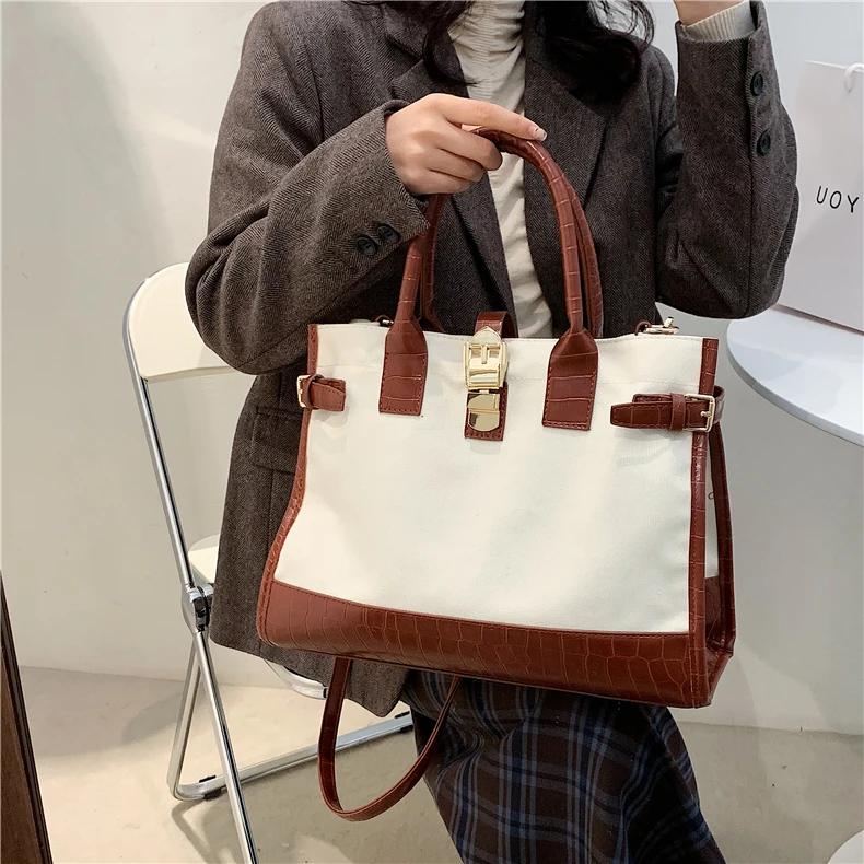 flowersverse Back to school Patchwork Canvas Large Tote Handbags For Women Trend Fashion Work Briefcase Retro Ladies Shoulder Crossbody Bags