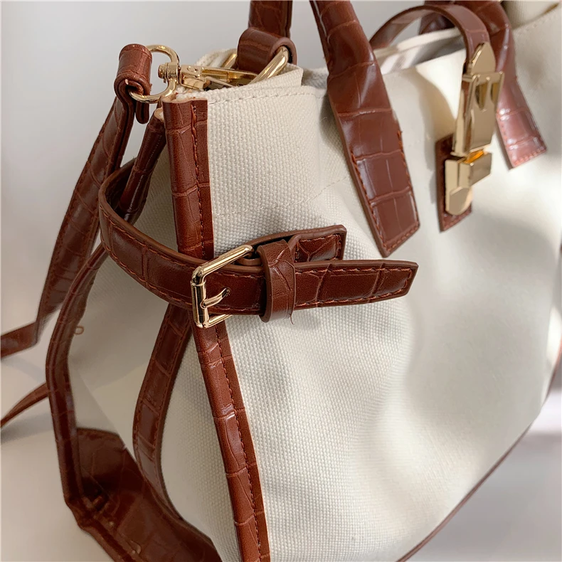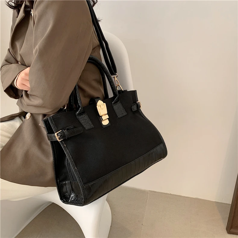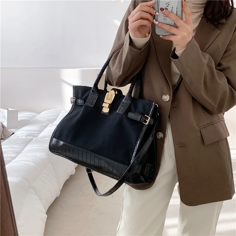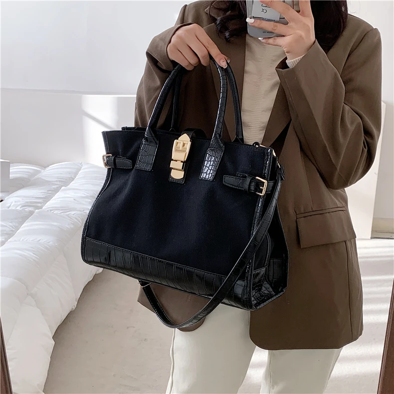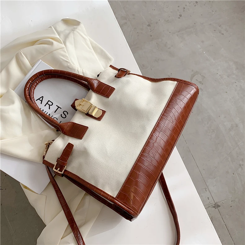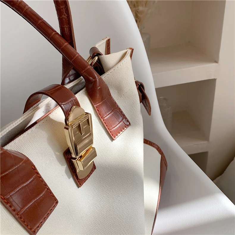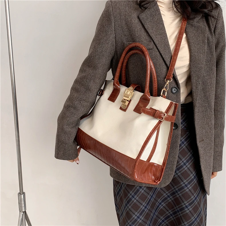 flowersverse Back to school Patchwork Canvas Large Tote Handbags For Women Trend Fashion Work Briefcase Retro Ladies Shoulder Crossbody Bags