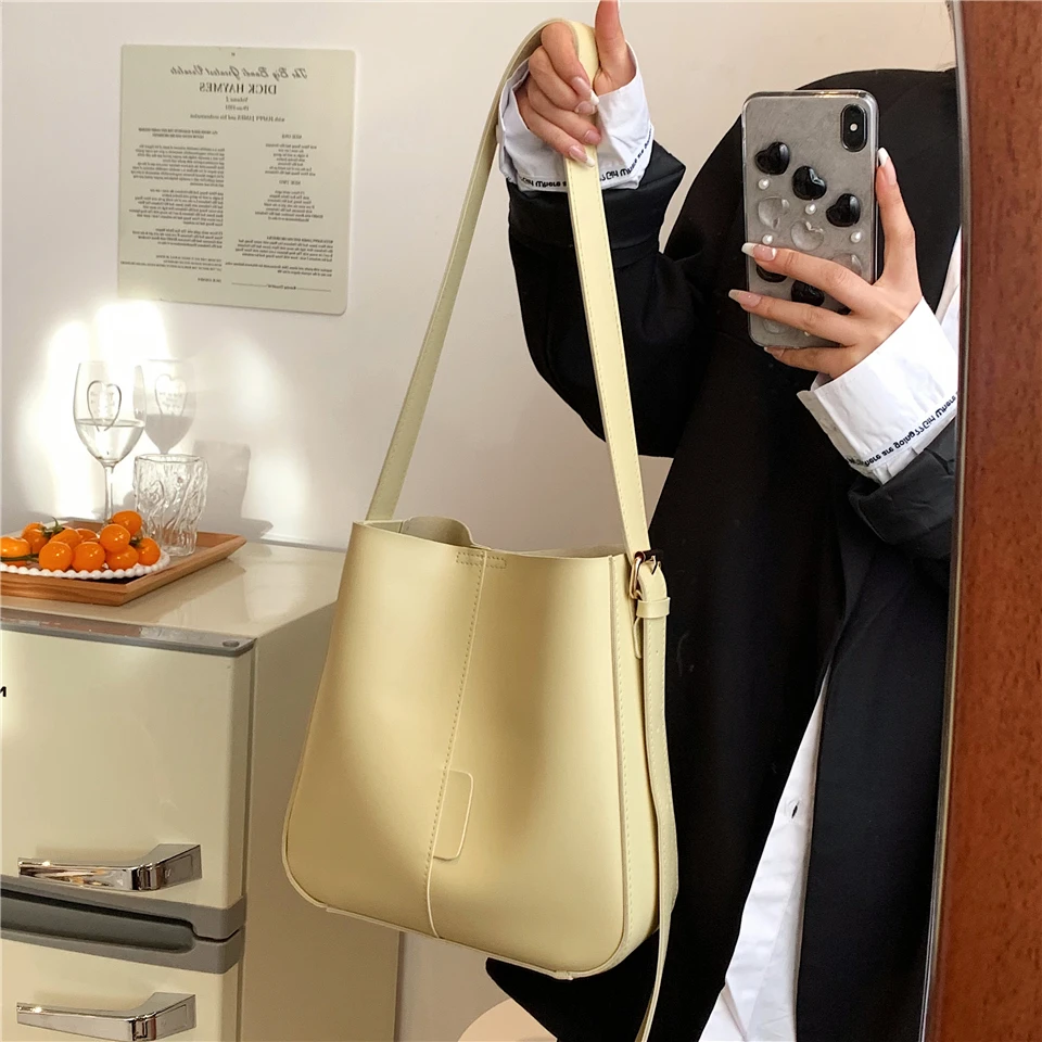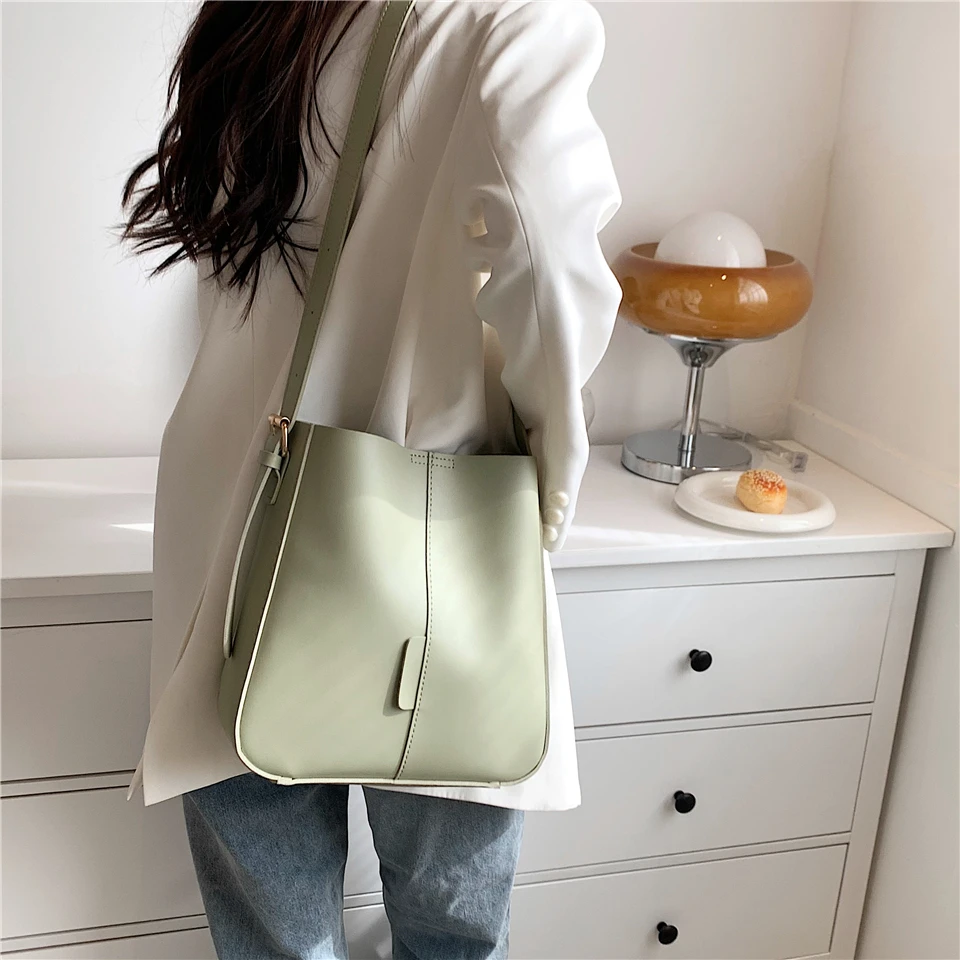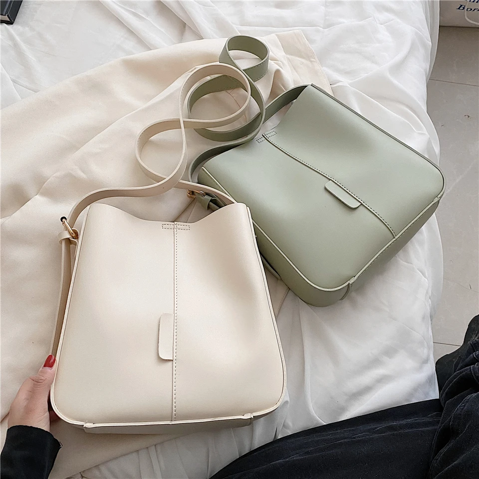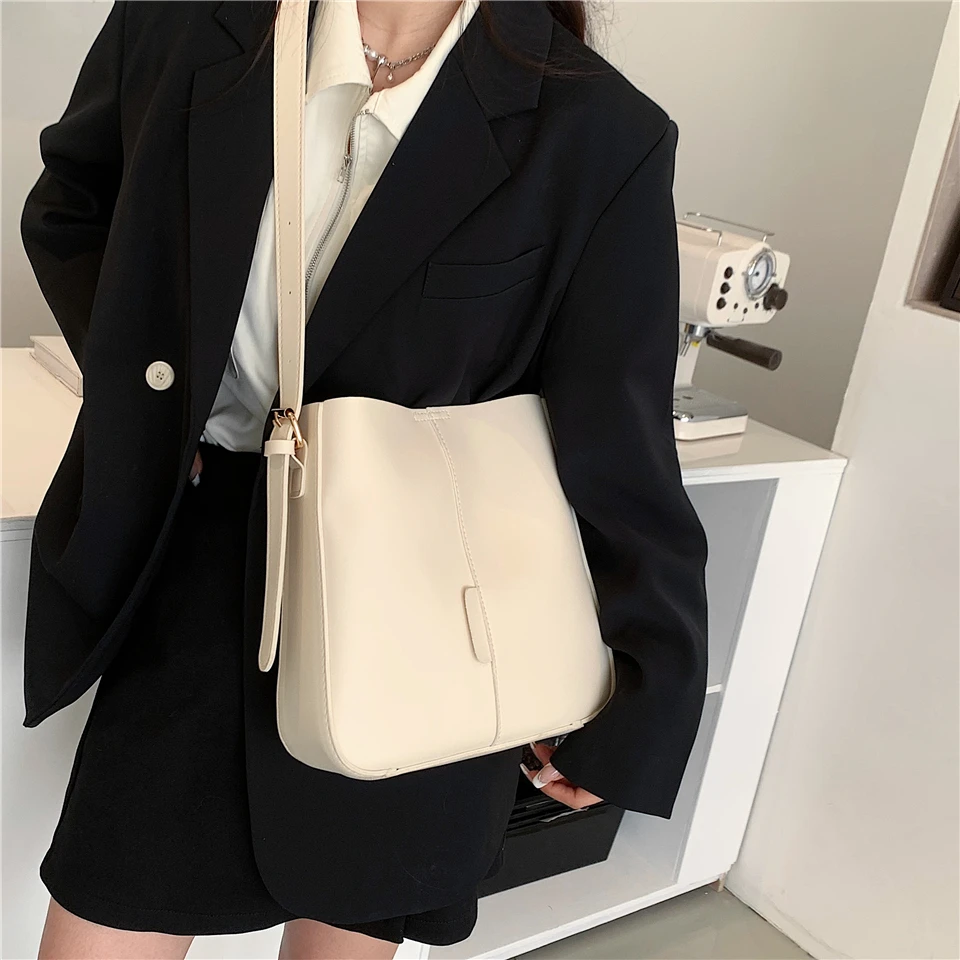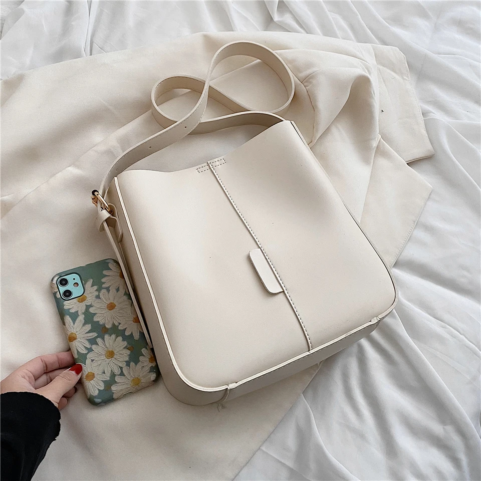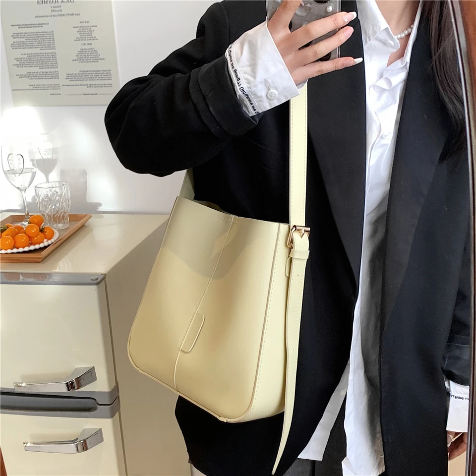 flowersverse Back to school Wide Strap Bucket Large Shoulder Bags For Women Trend Fashion Simple Solid Color Design Crossbody Ladies Handbags
