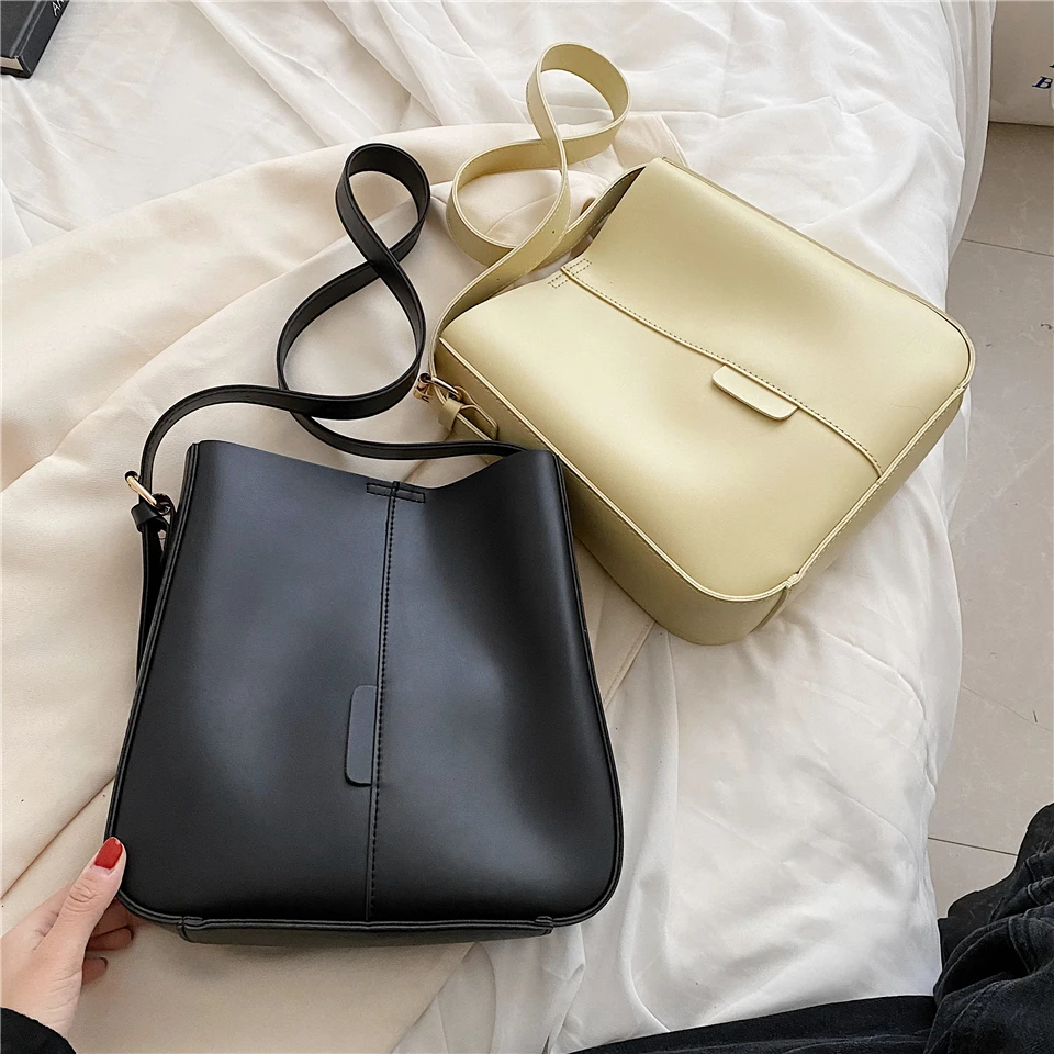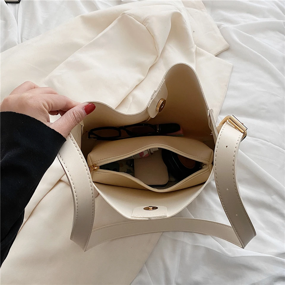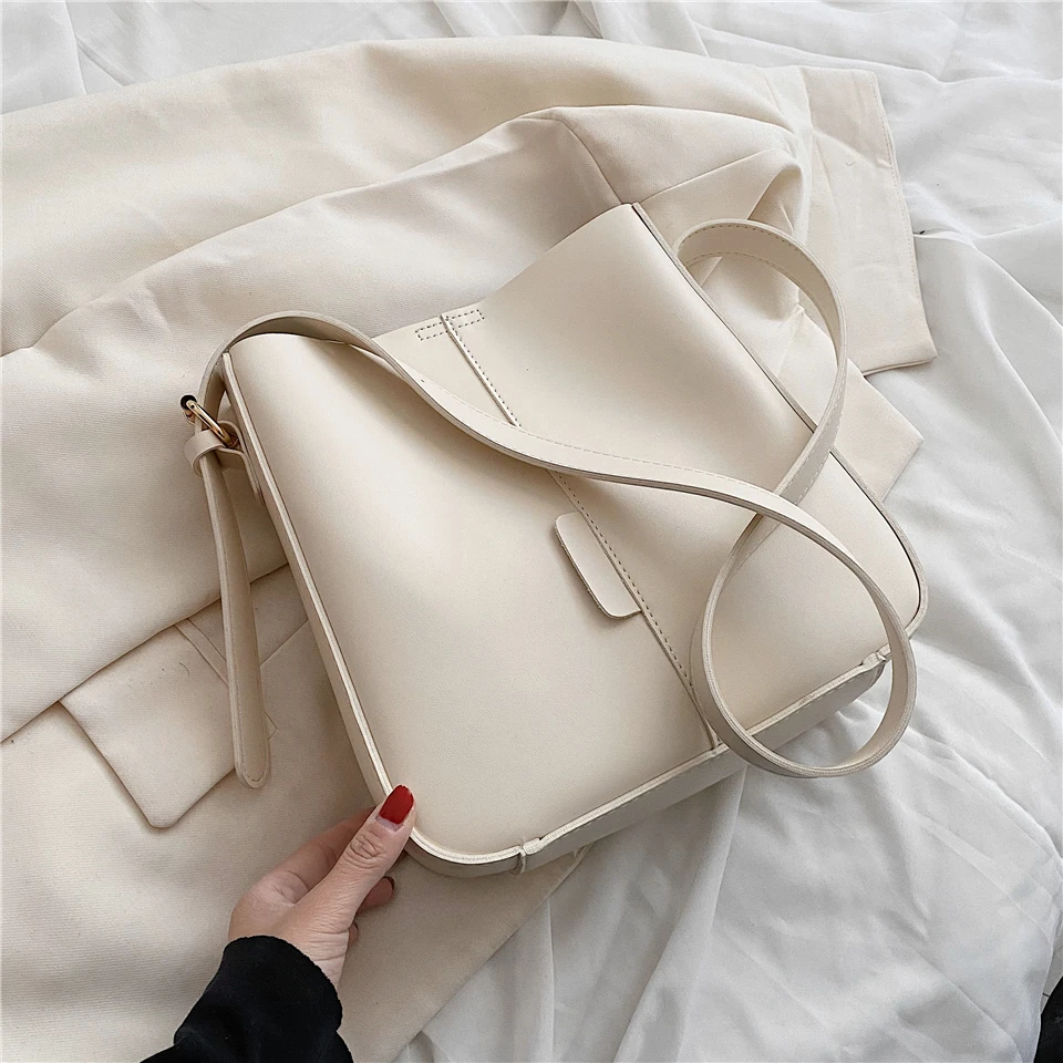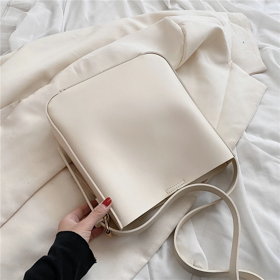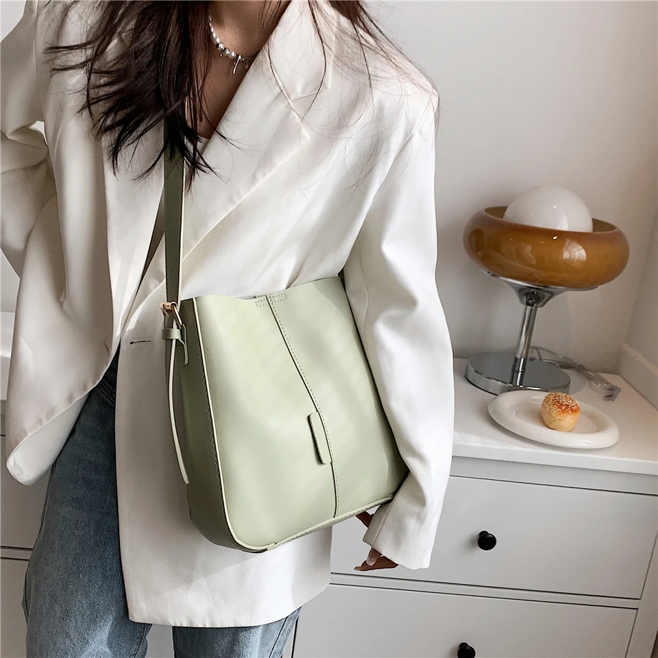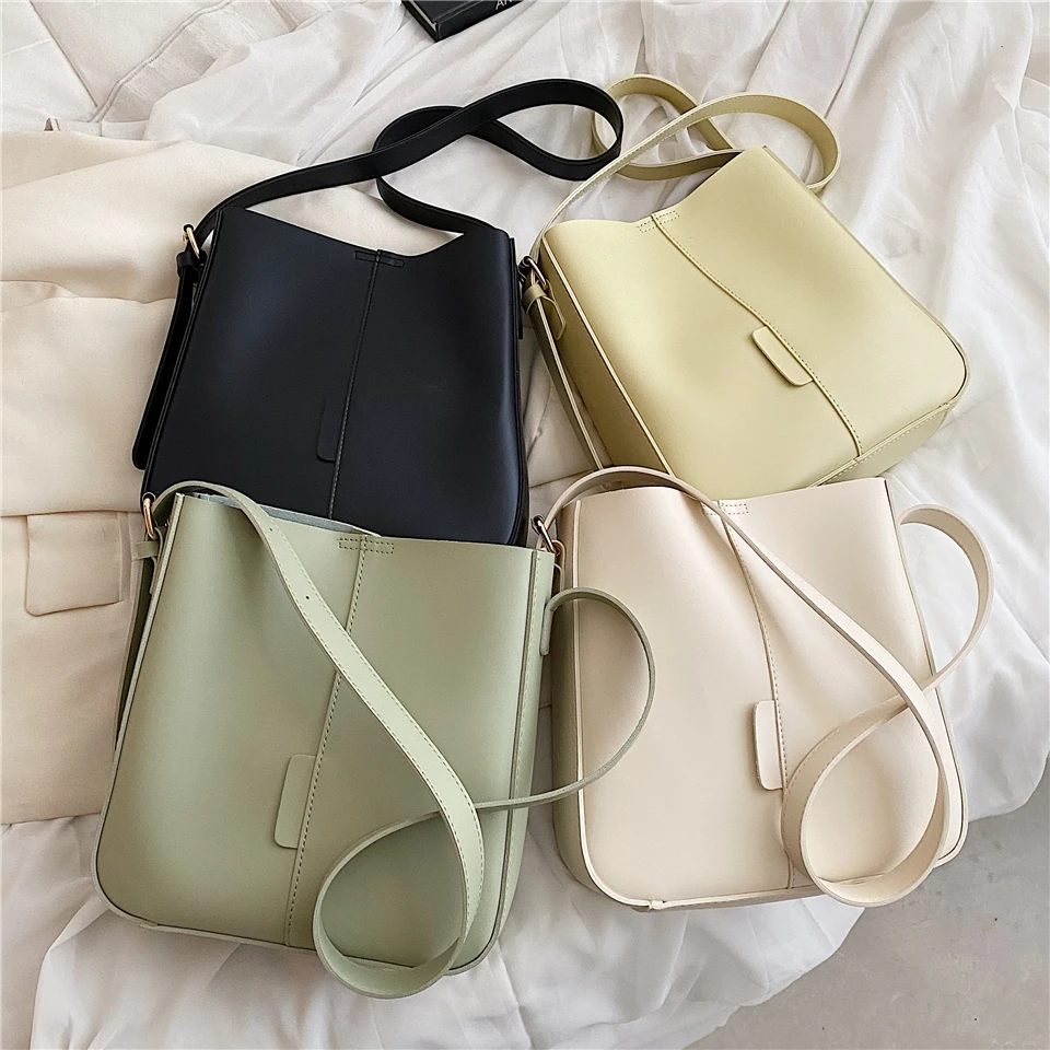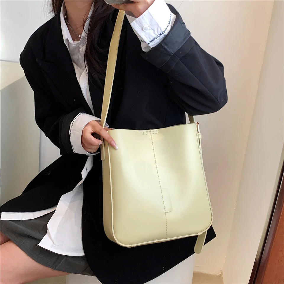 flowersverse Back to school Wide Strap Bucket Large Shoulder Bags For Women Trend Fashion Simple Solid Color Design Crossbody Ladies Handbags