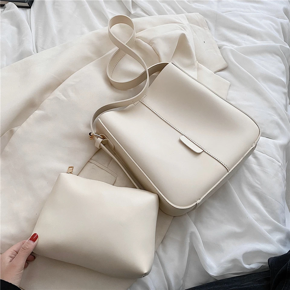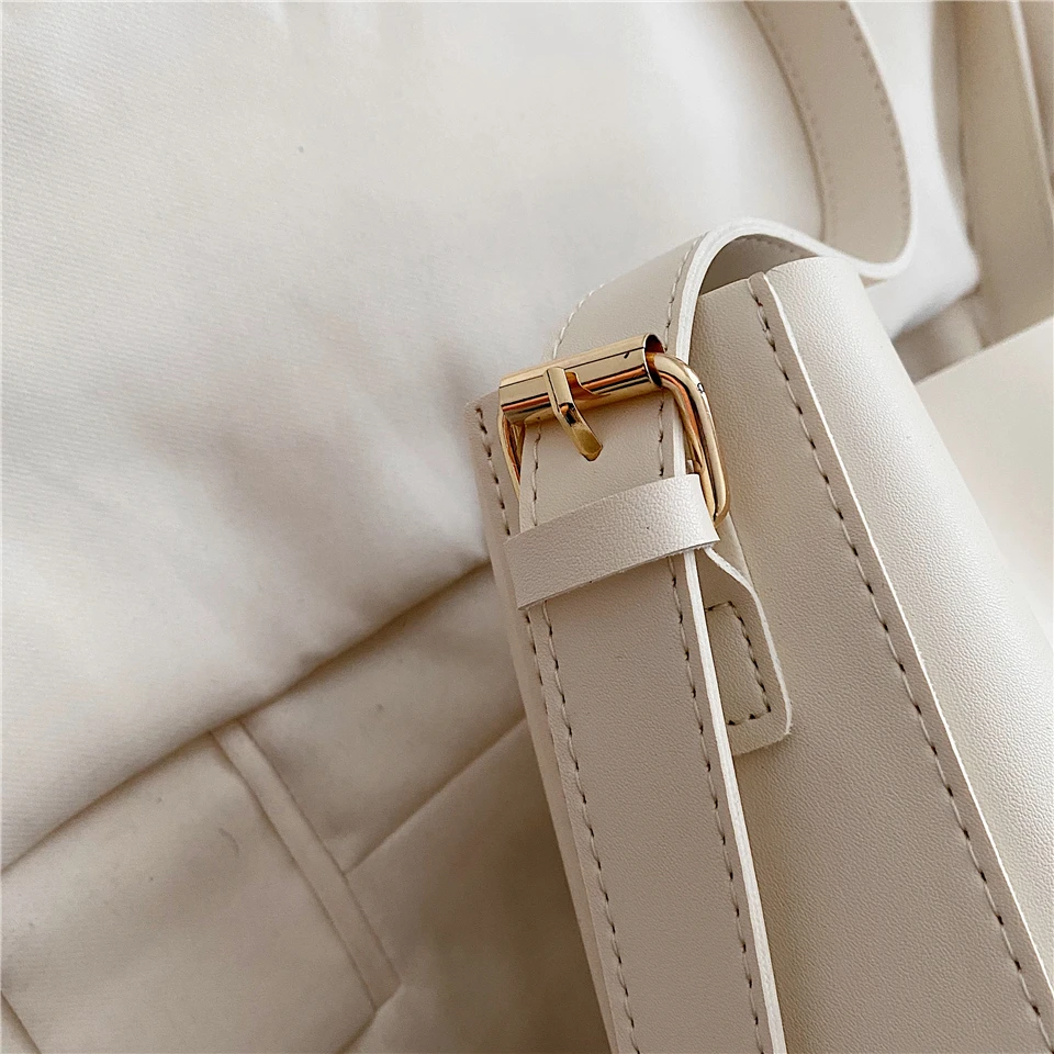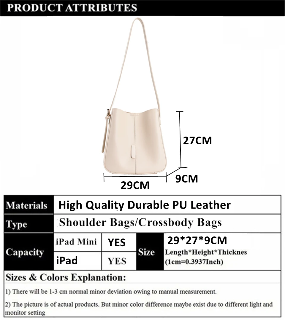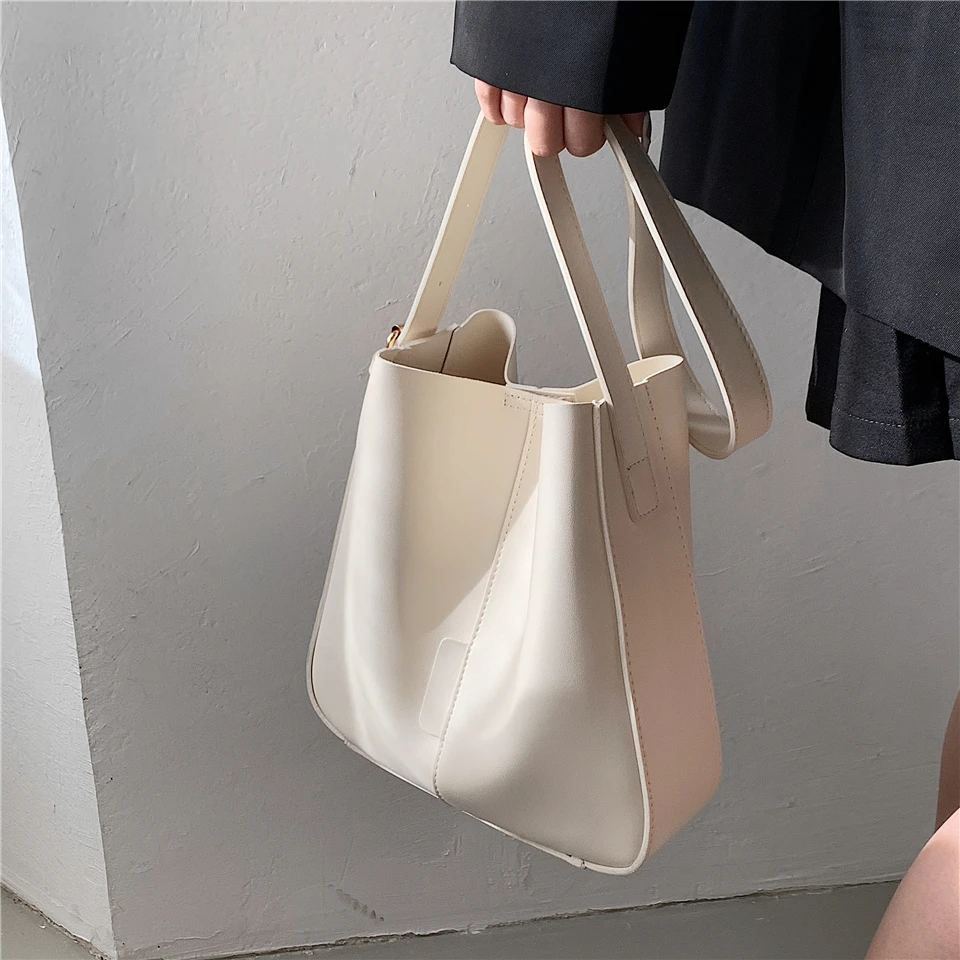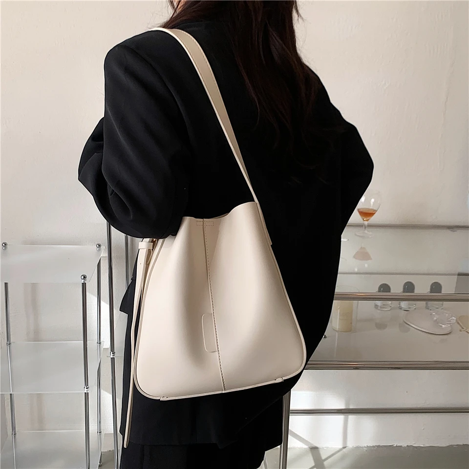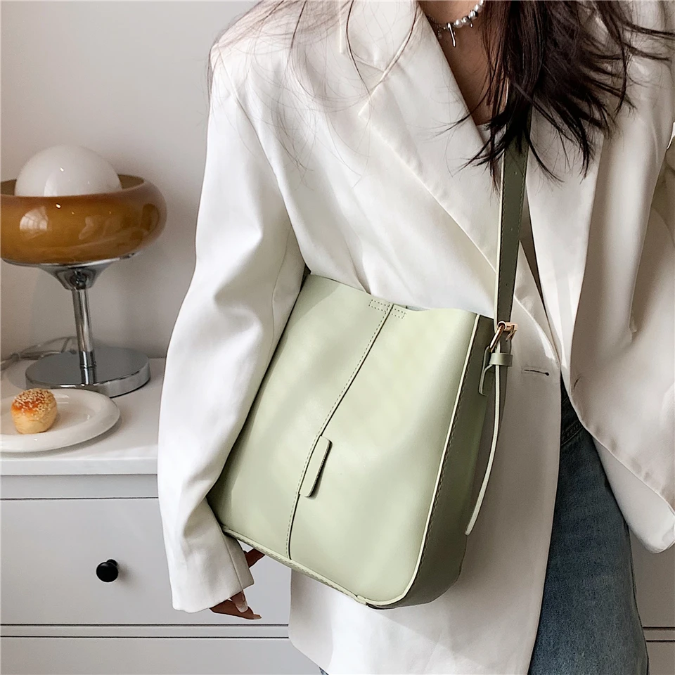 flowersverse Back to school Wide Strap Bucket Large Shoulder Bags For Women Trend Fashion Simple Solid Color Design Crossbody Ladies Handbags
