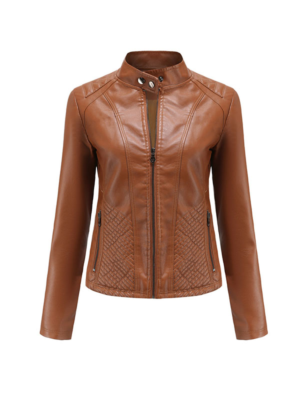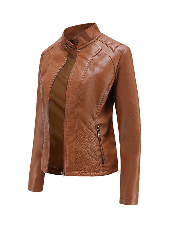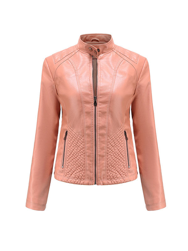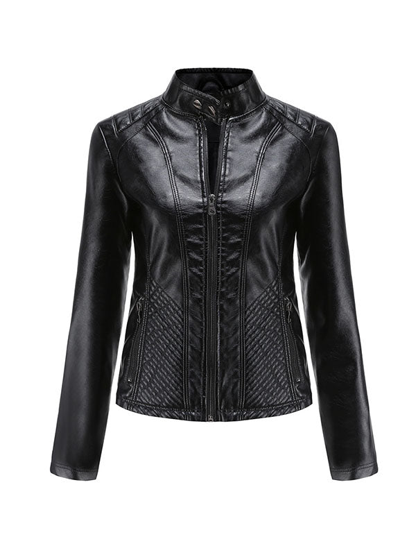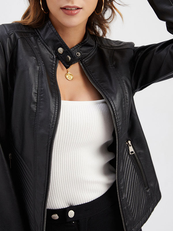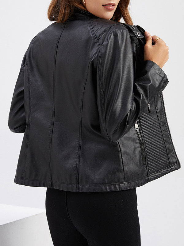 flowersverse Buttoned Pockets Split-Joint Zipper Long Sleeves Plus Size Stand Collar Outerwear Jackets