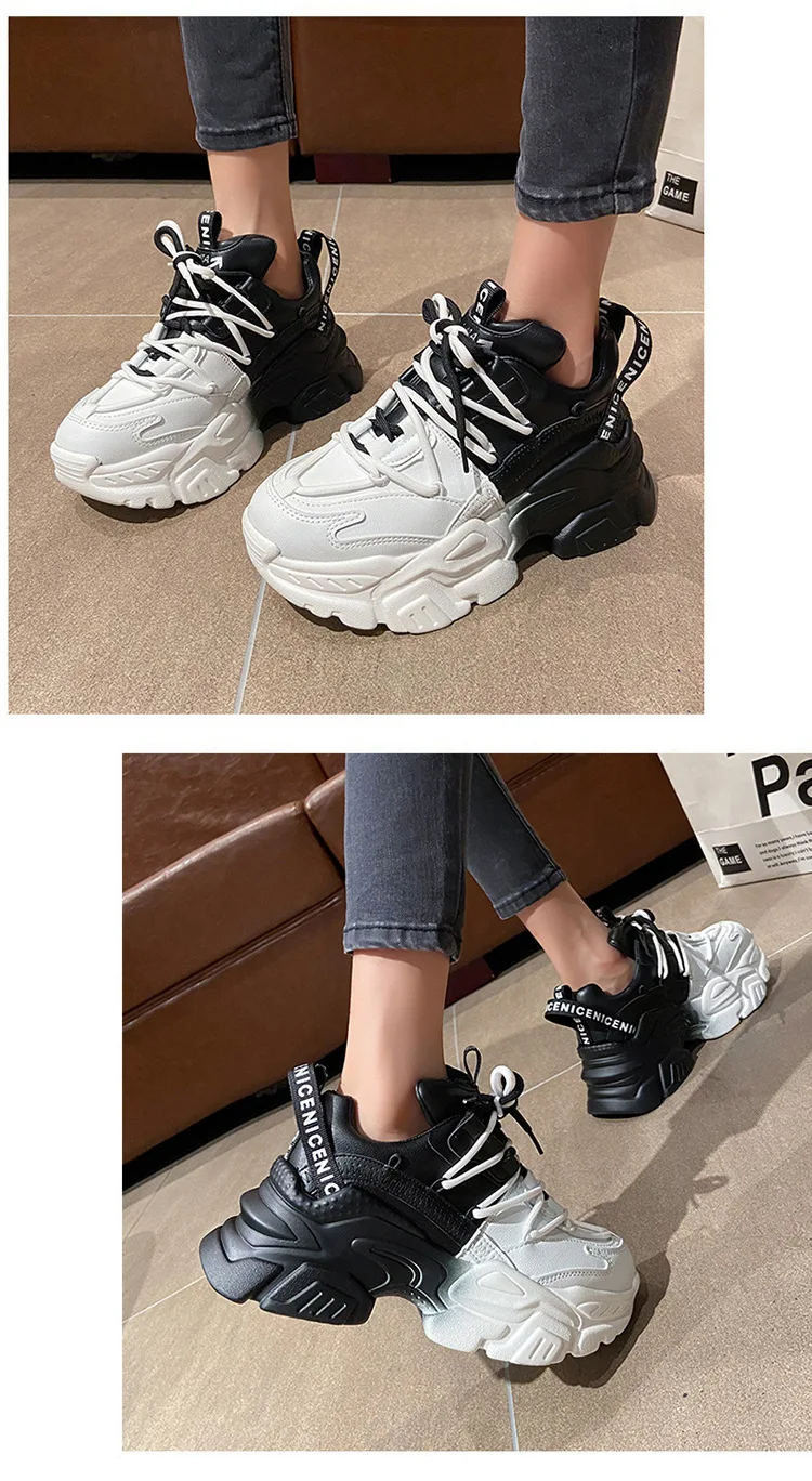 Black Friday Amozae Chunky Sneakers Women Fashion Platform Shoes Basket Femme Vulcanize Shoes Womens Casual Female Trainers Dad Shoes Size 42