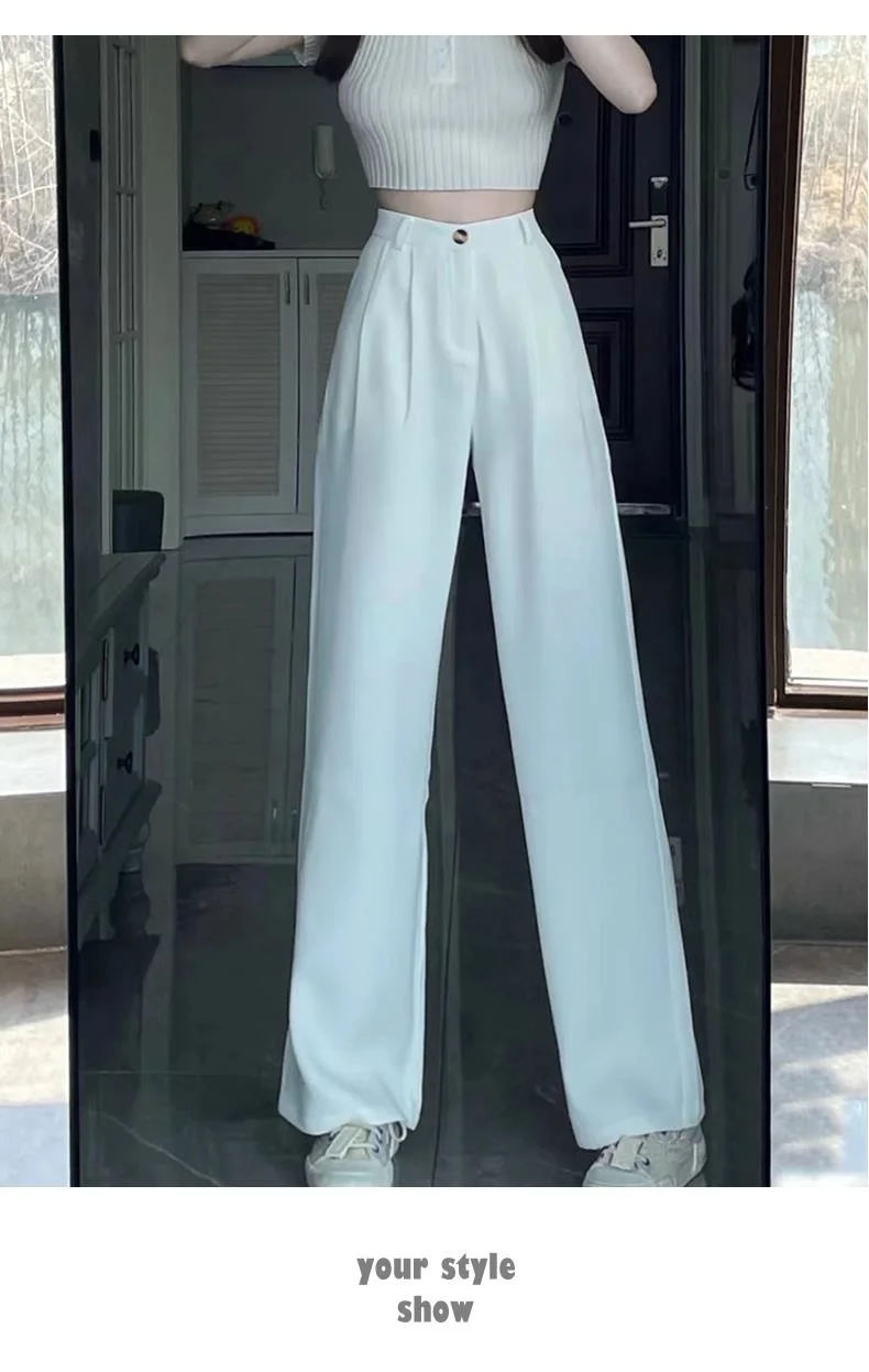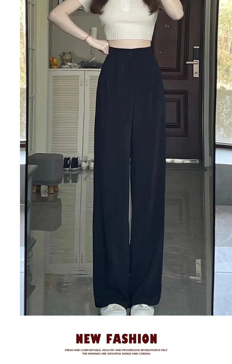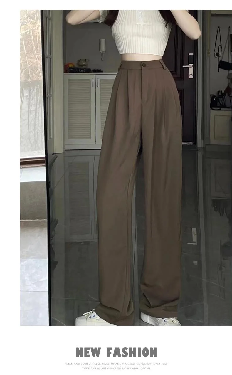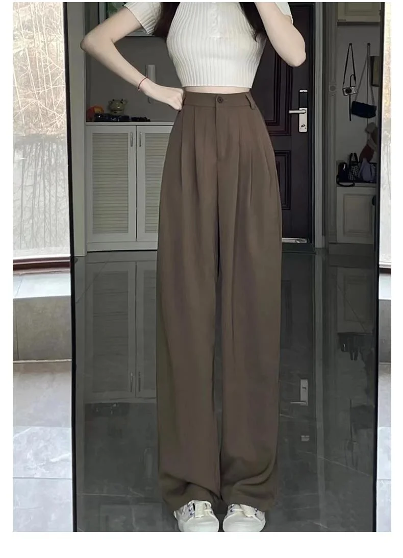 Coffee Colored Wide Leg Pants For Women's Spring And Autumn High Waisted Draped Straight Suit Pants Versatile