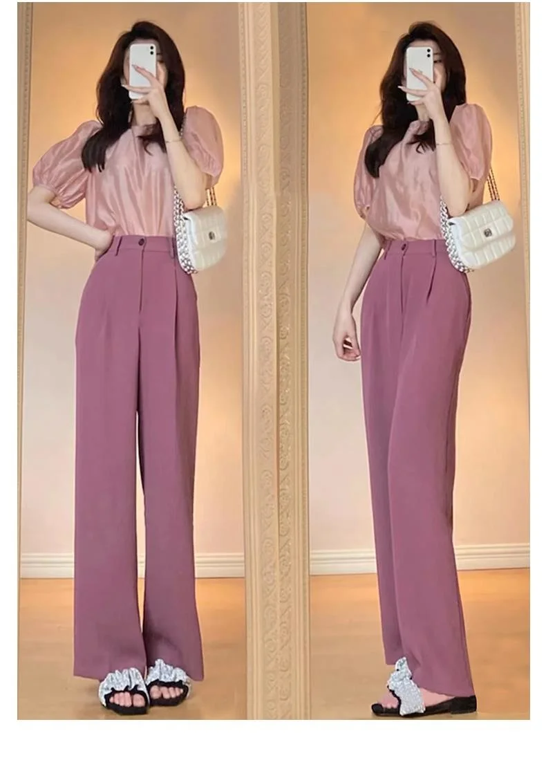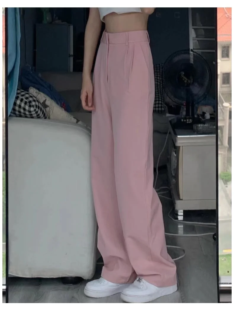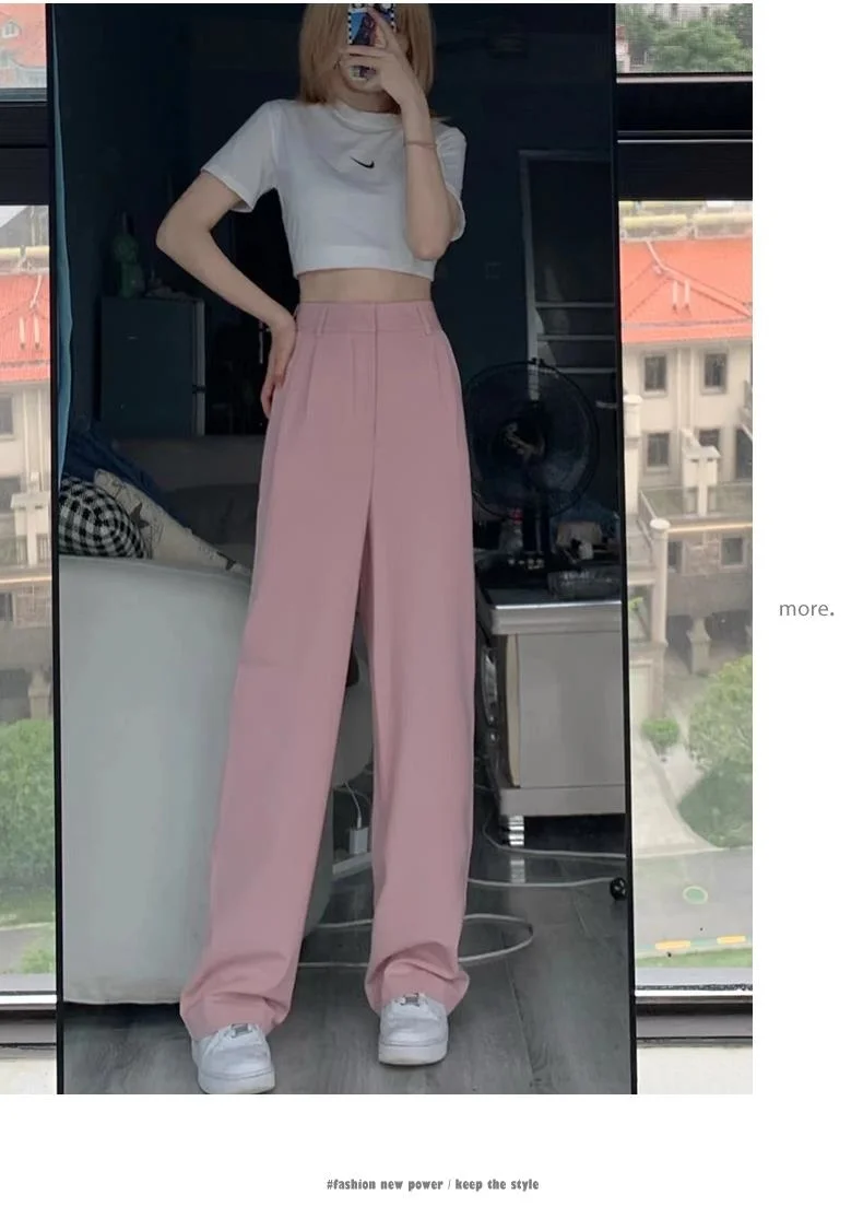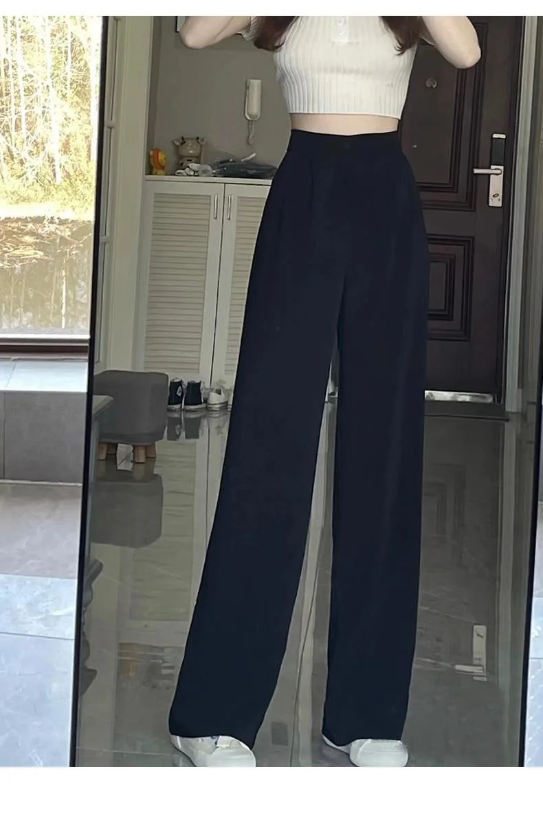 Coffee Colored Wide Leg Pants For Women's Spring And Autumn High Waisted Draped Straight Suit Pants Versatile
