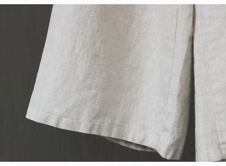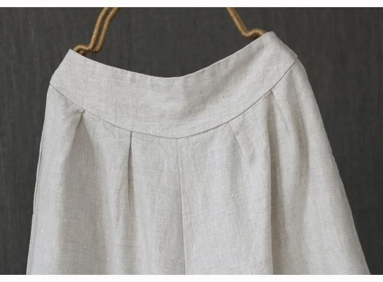 Cotton Linen Nine Capris Pants Women Elastic Waist Wide Leg Pants Casual Vintage Linen Straight Wide Leg Trousers
