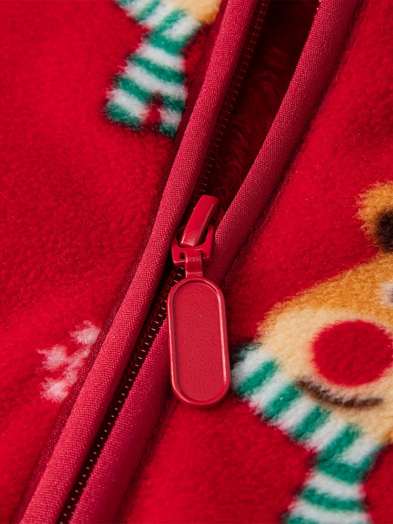 Cozy Boy's Reindeer Pattern Fleece Jacket, Warm Zip-Up Stand Collar Coat for Fall Winter Outdoor Adventures
