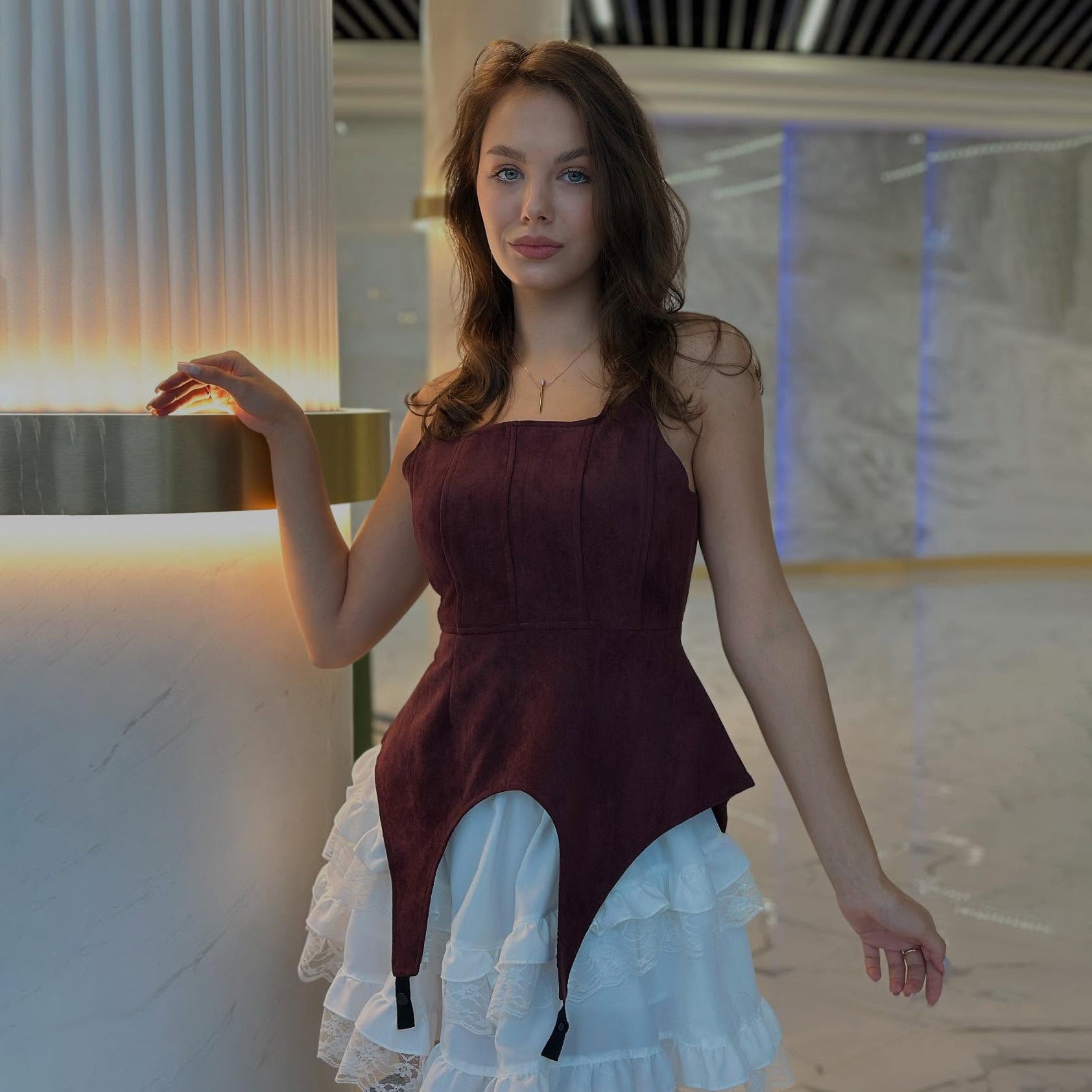 Cross-border independent station Spice Girls Suede Suspender Vest Sexy Small Vest Top Niche Trend Spice Girls